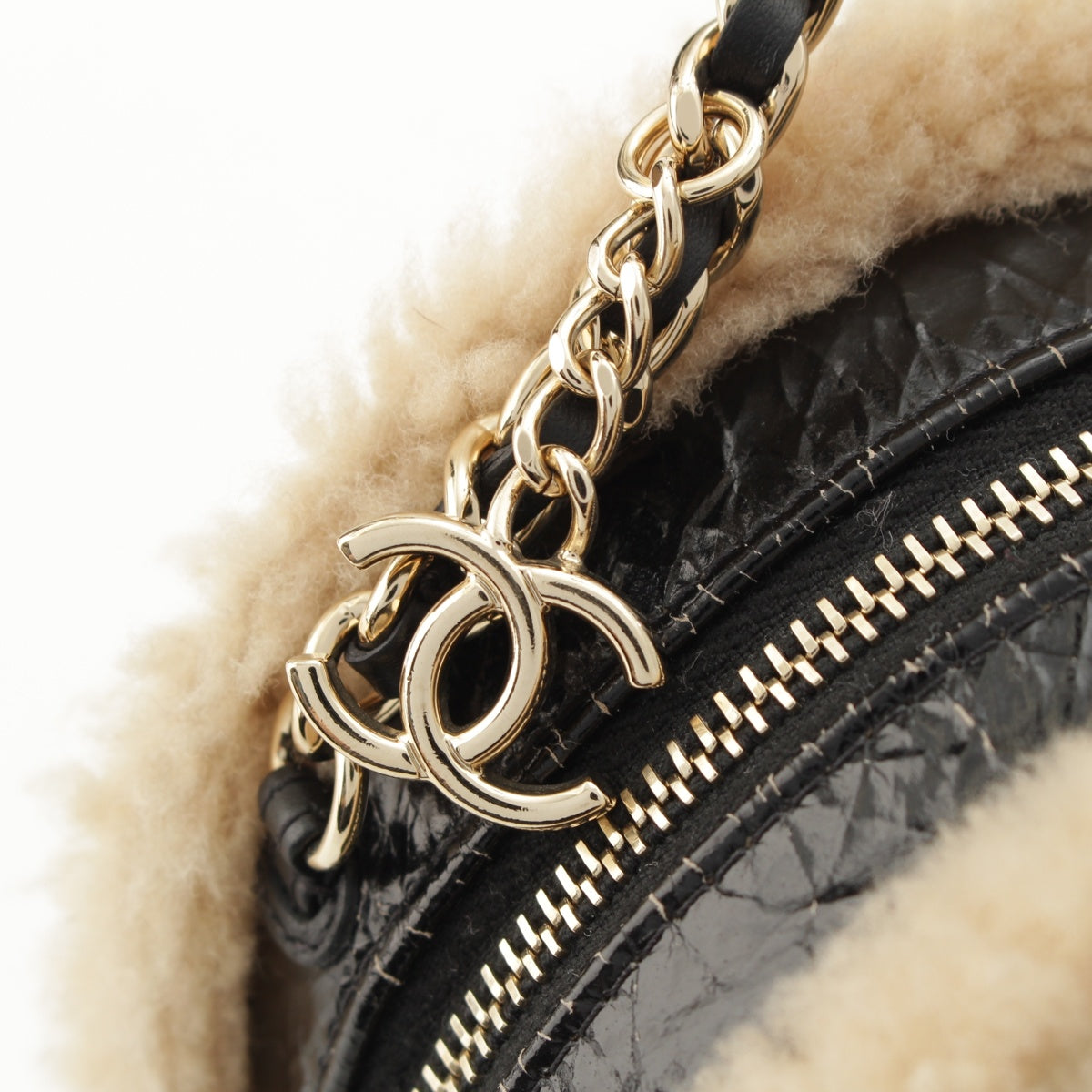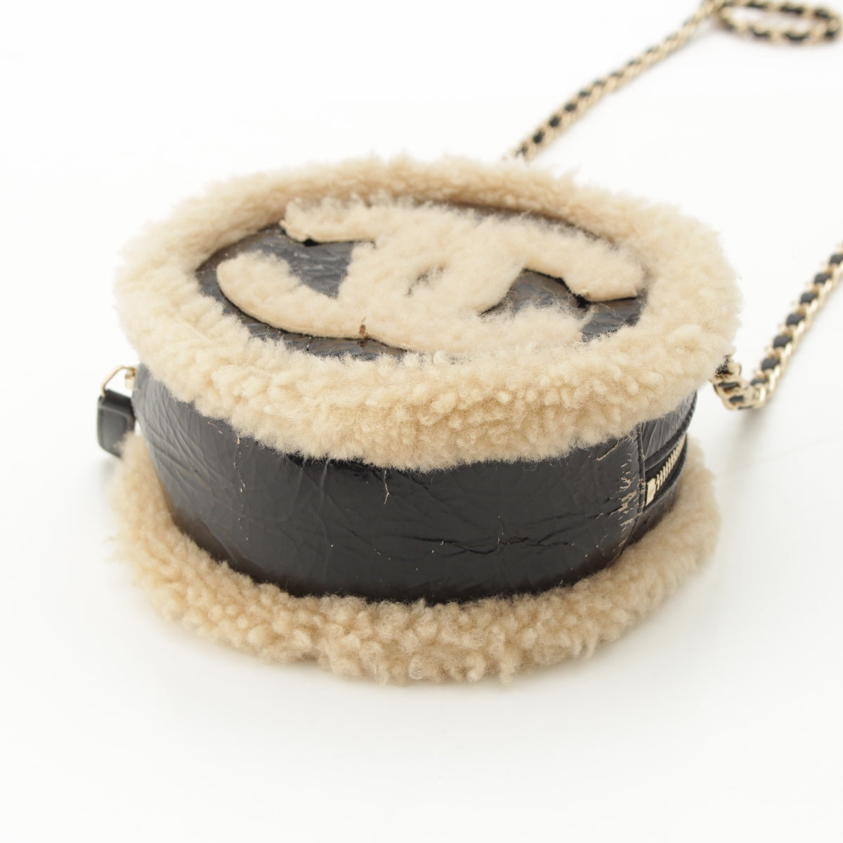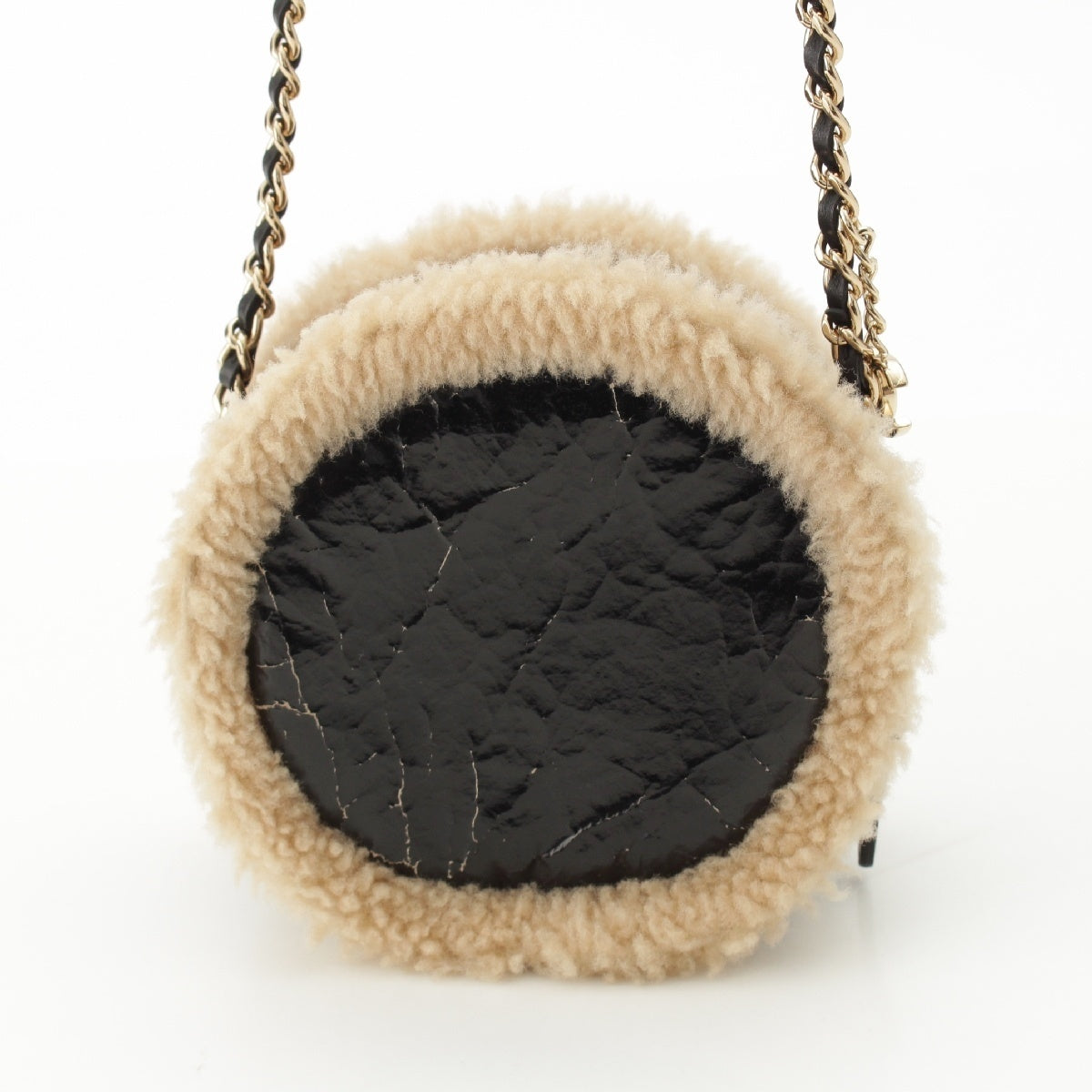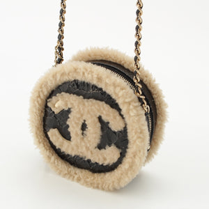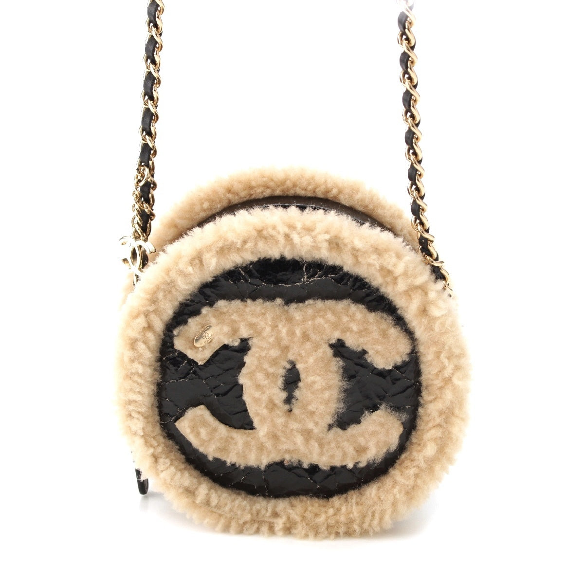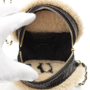 CHANEL Mouton COCO Mark Round Pouch Chain Shoulder Bag 28番台 black