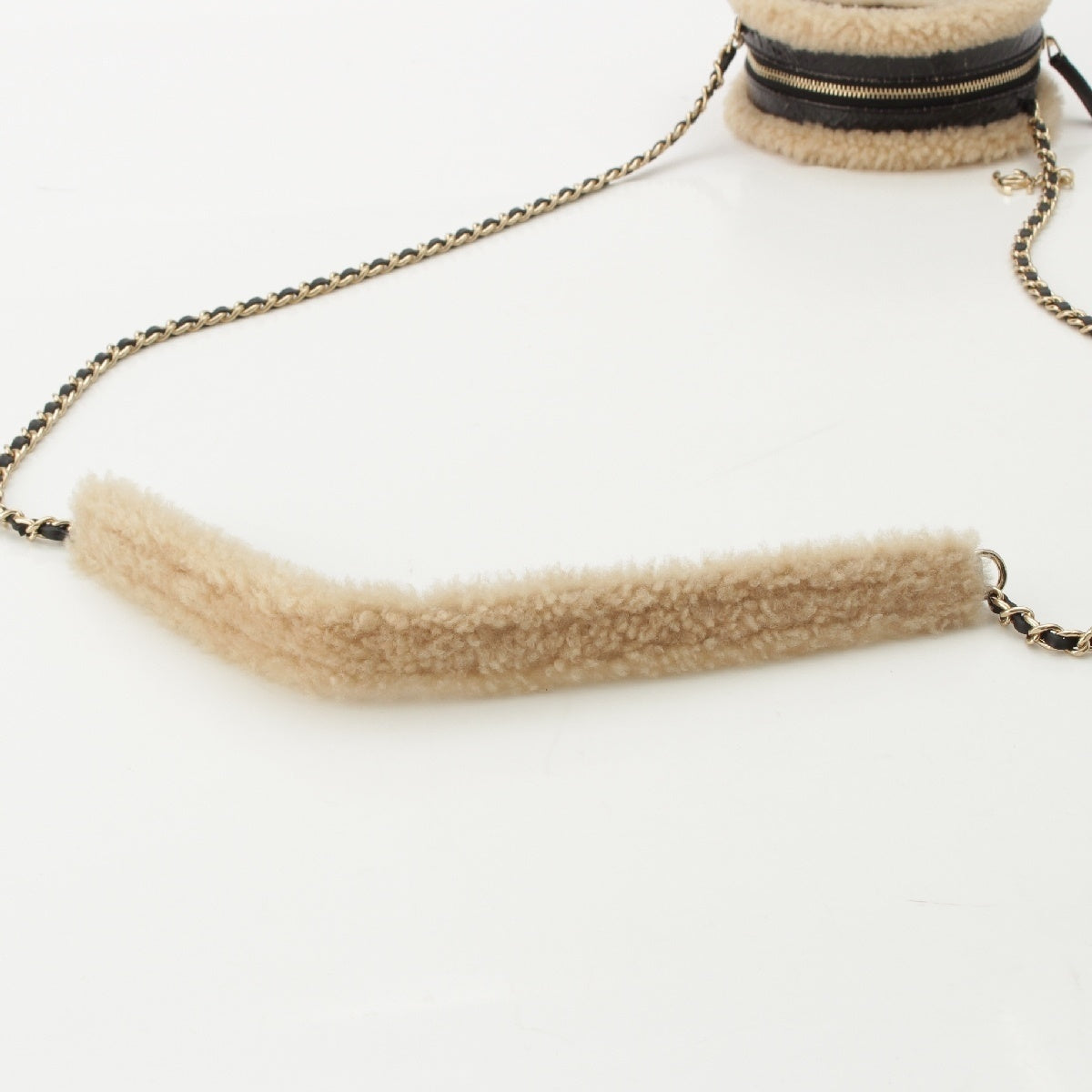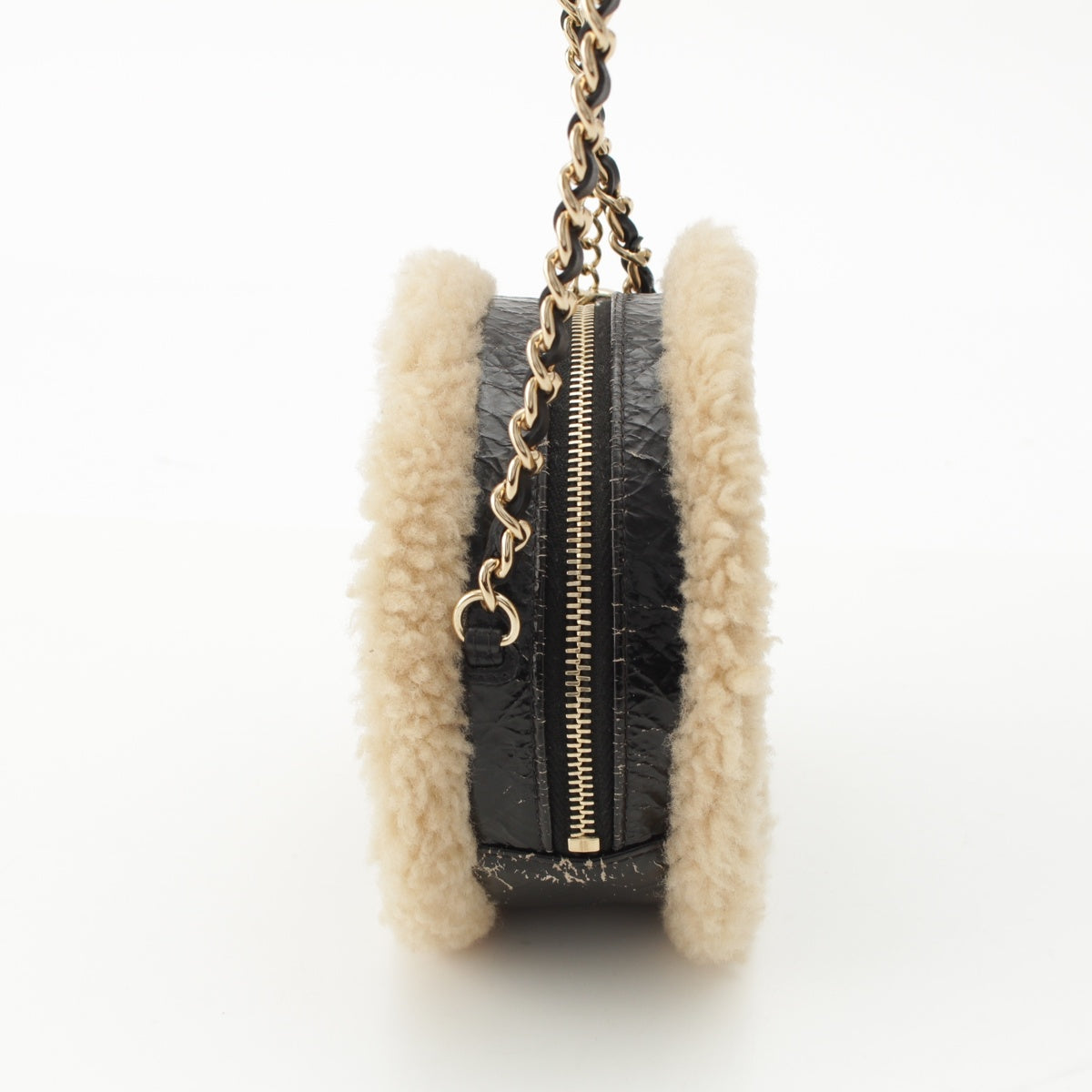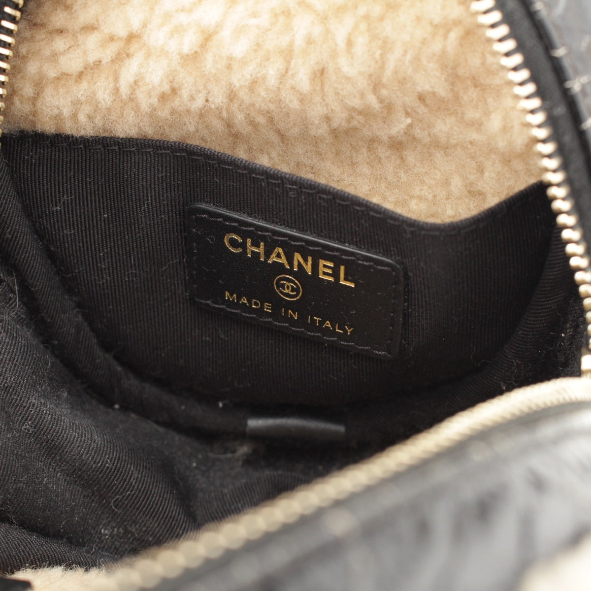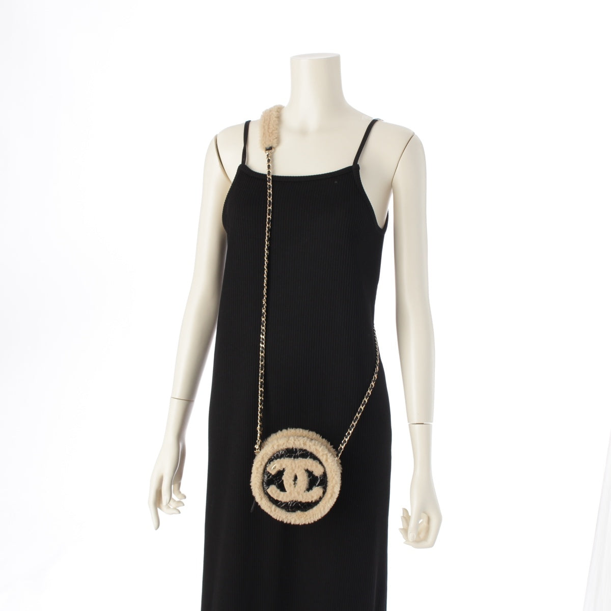 CHANEL Mouton COCO Mark Round Pouch Chain Shoulder Bag 28番台 black