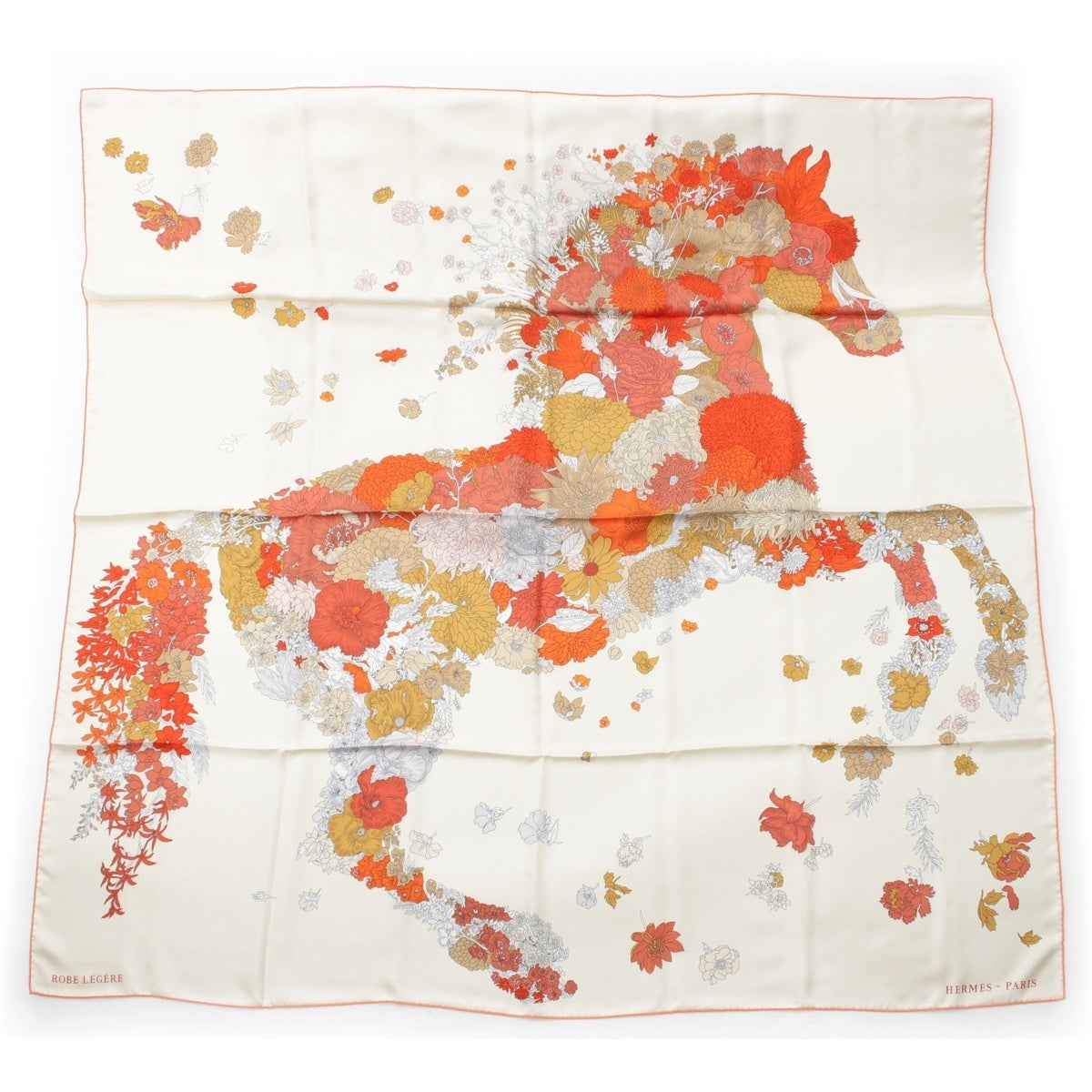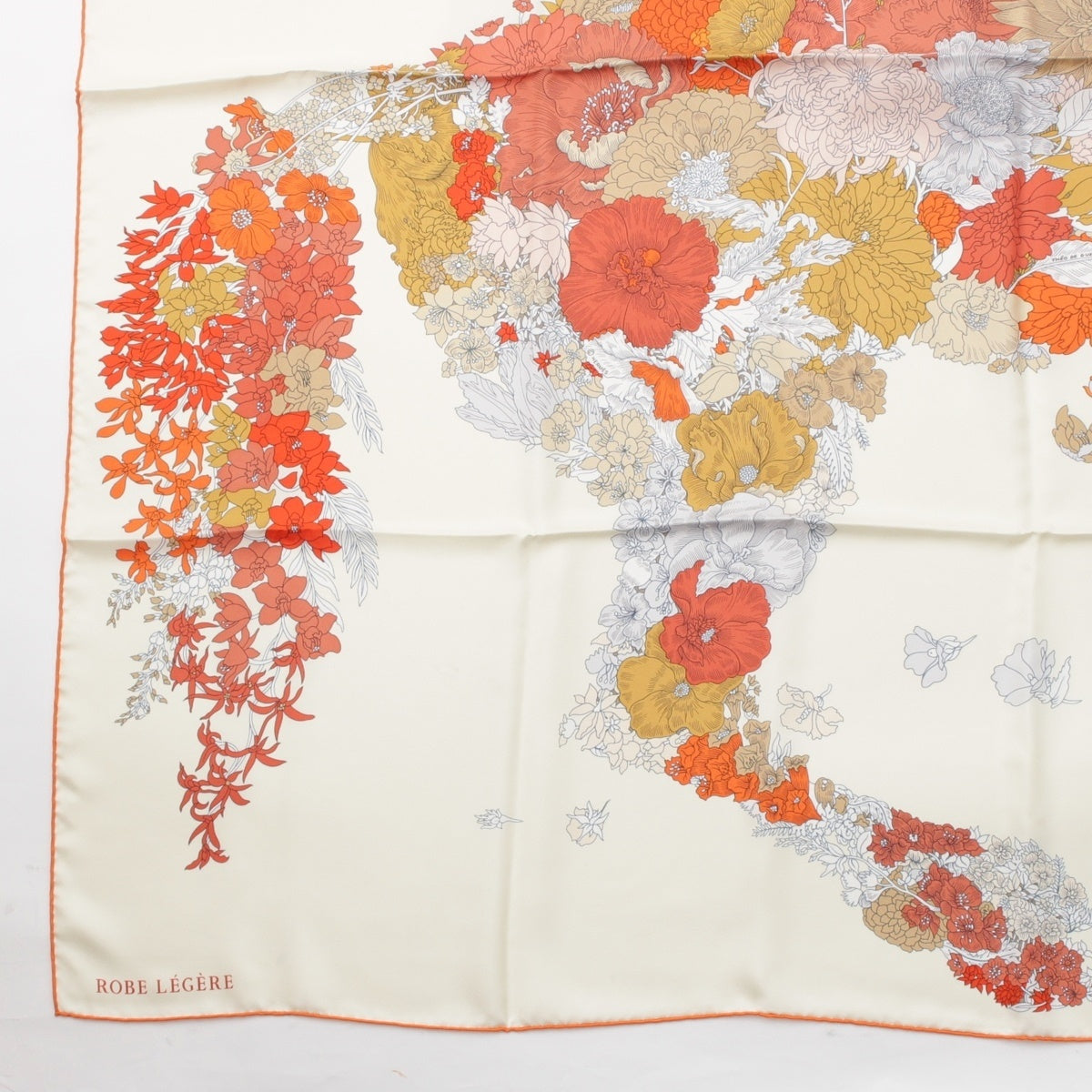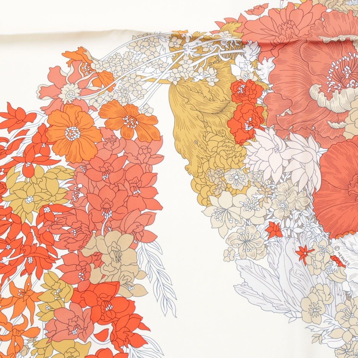 HERMES silk Carré 140 Robe Legere Large size scarf Creme/Vermilion/Beige