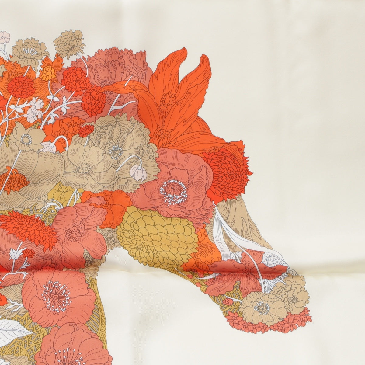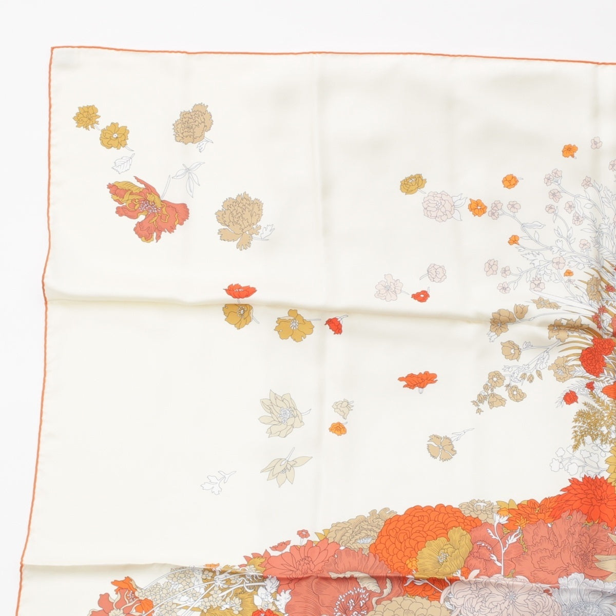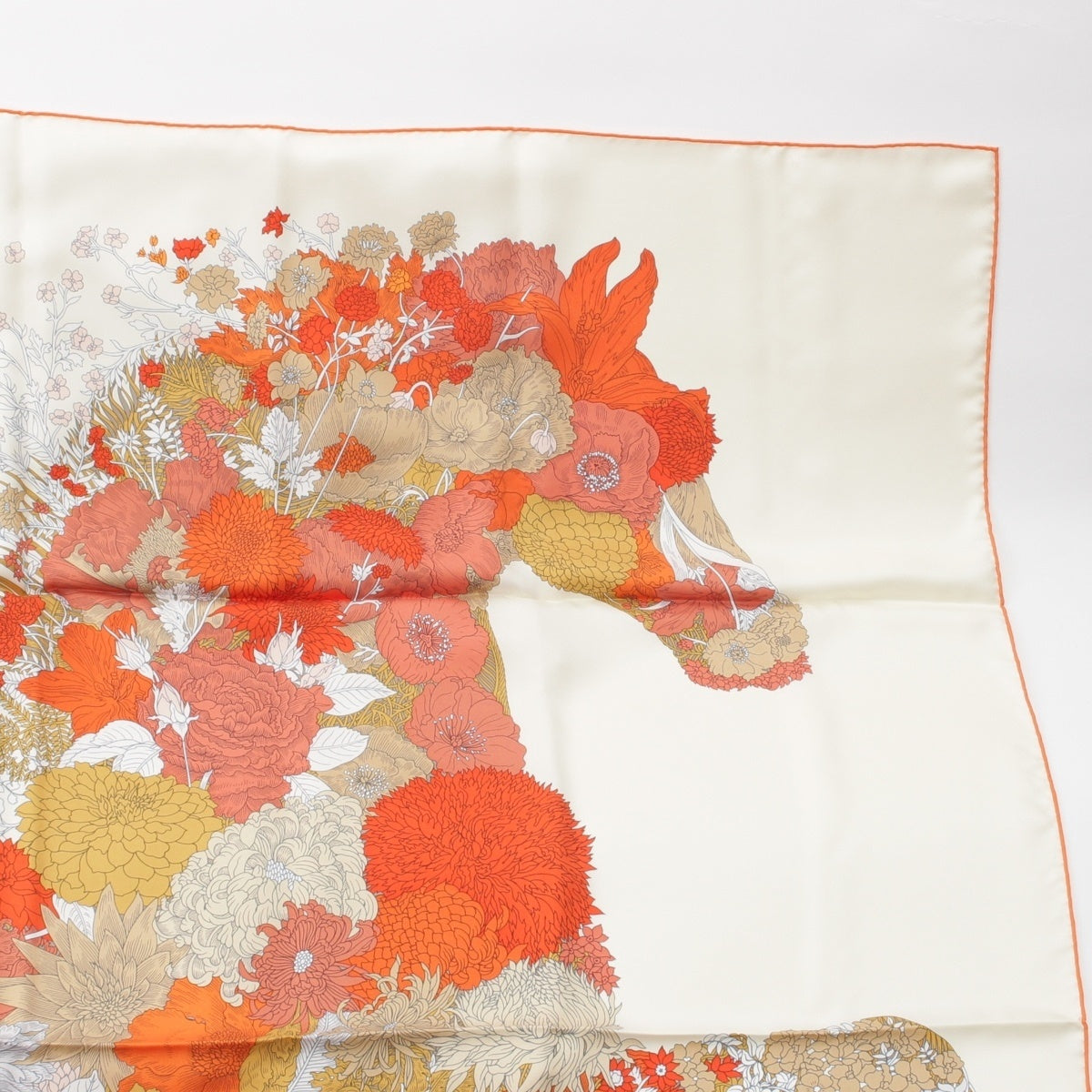 HERMES silk Carré 140 Robe Legere Large size scarf Creme/Vermilion/Beige