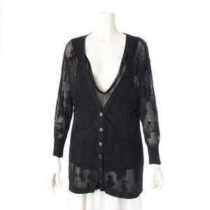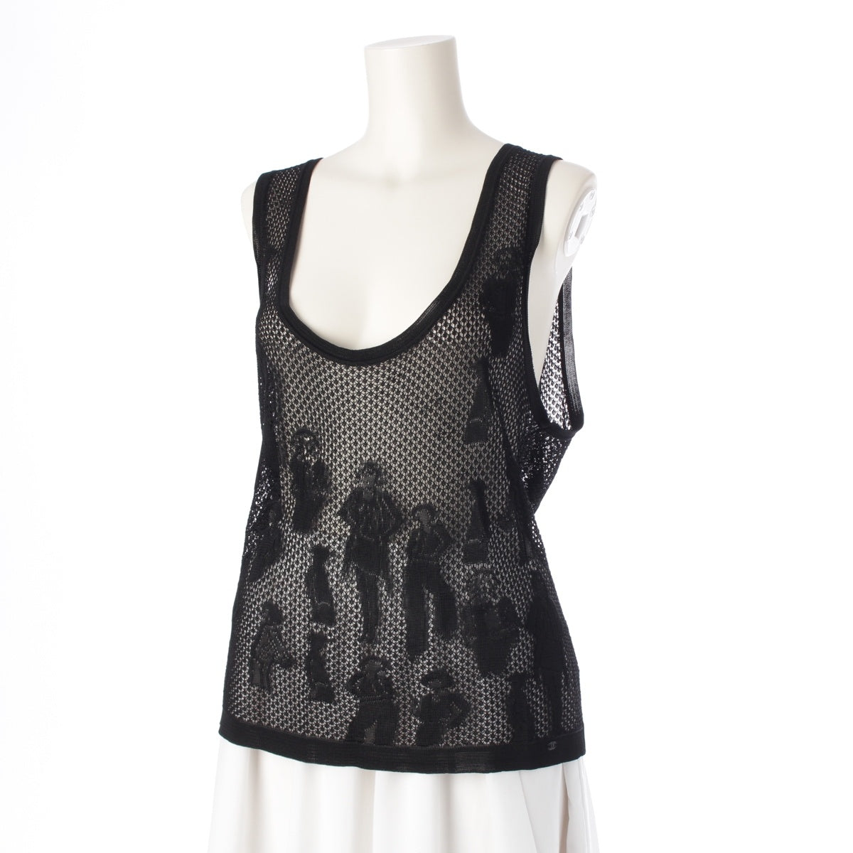CHANEL Mademoiselle Rayon lace cardigan tank top ensemble P21388 P21313 black 46