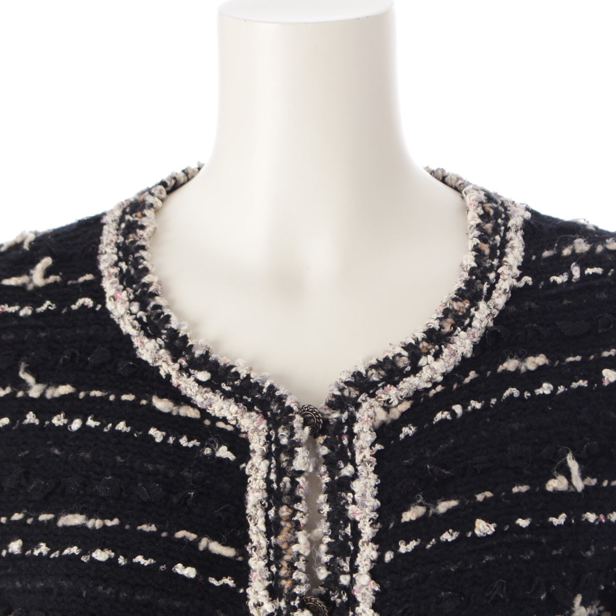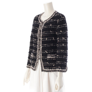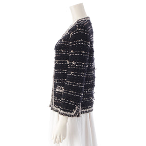 CHANEL Cashmere Tweed COCO Mark button No color jacket P26658 Black White 38