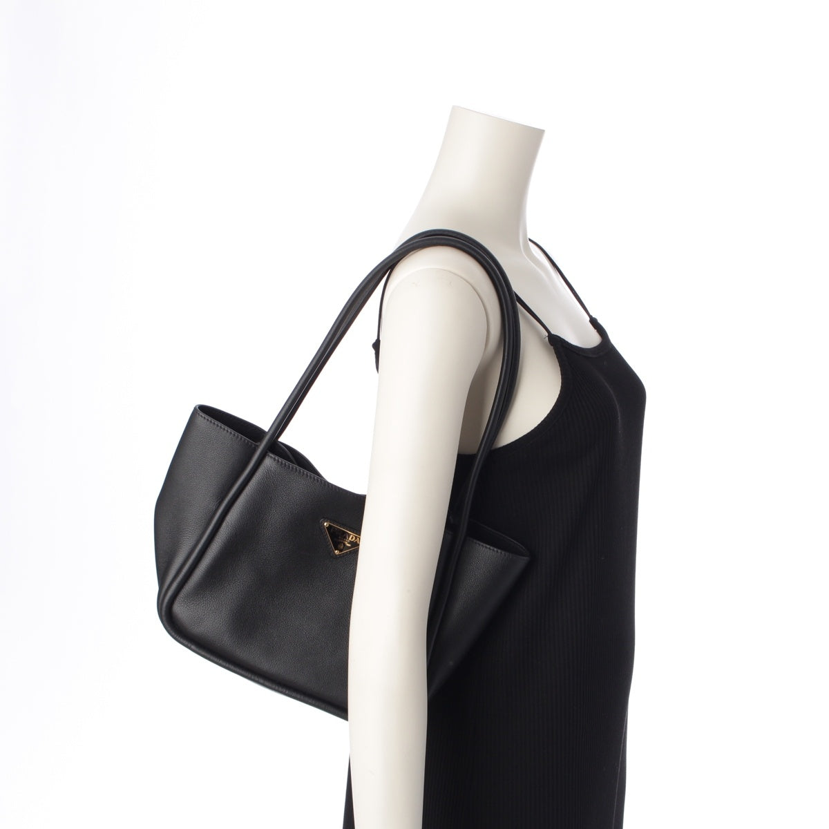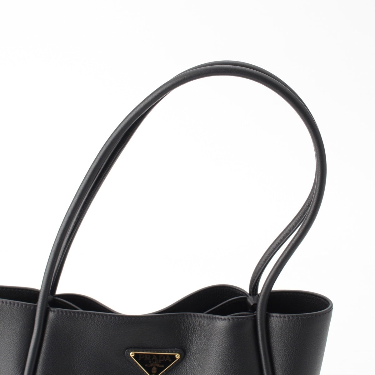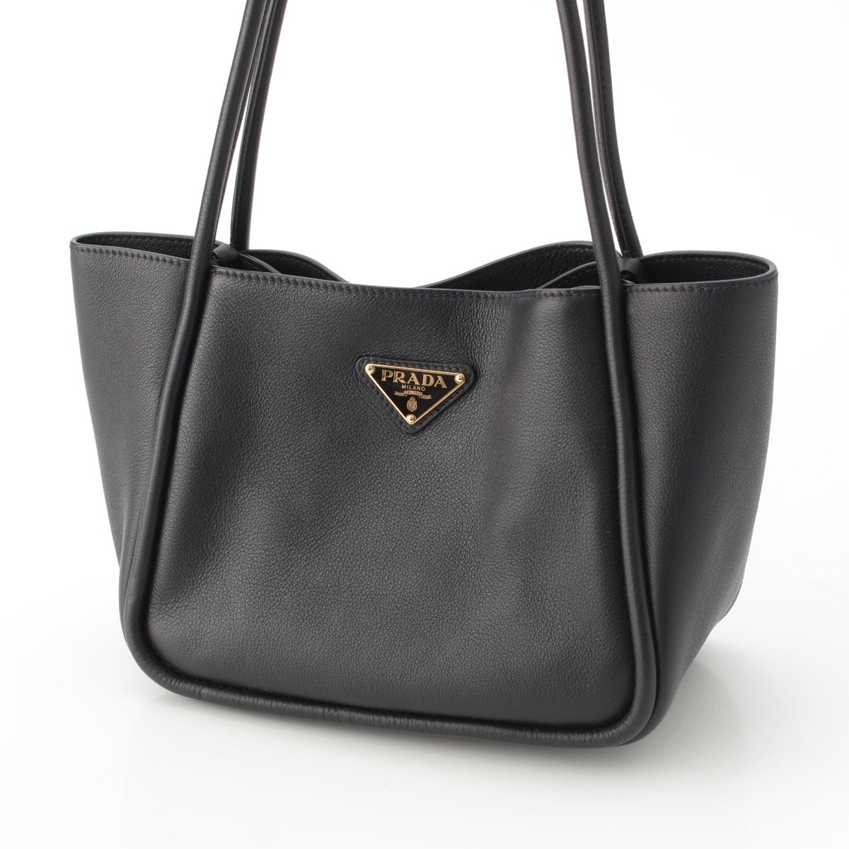 PRADA soft grain leather Triangle With logo Tote Bag 1BG539 black