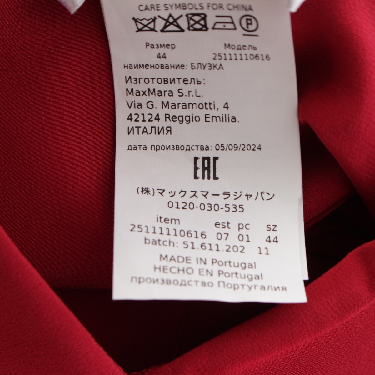 MAX MARA APOLLO Pure Silk Bow tie blouse shirt 25111110616 Red 44