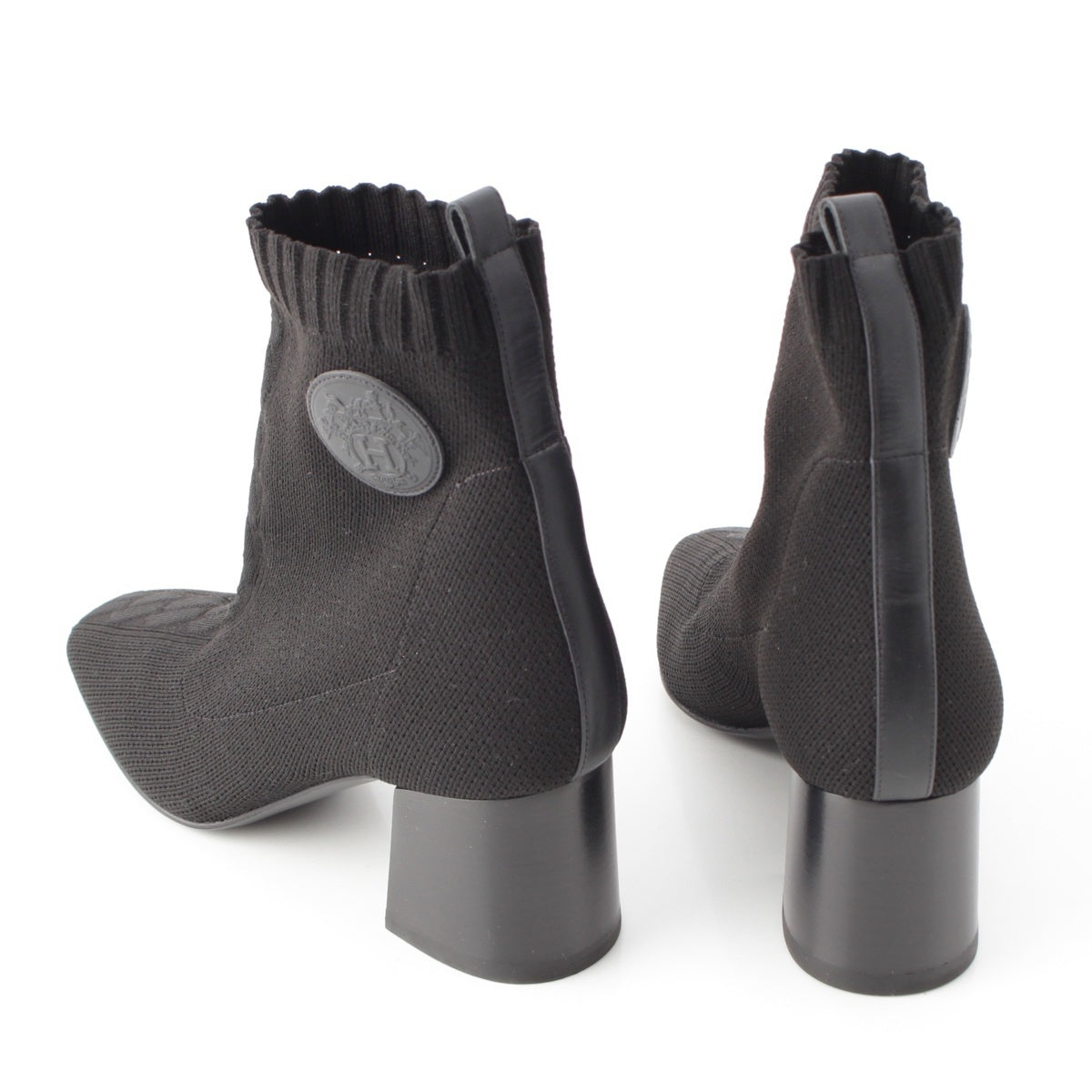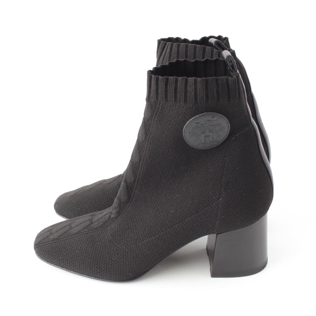 HERMES knit Volver Short boots shoes black 38