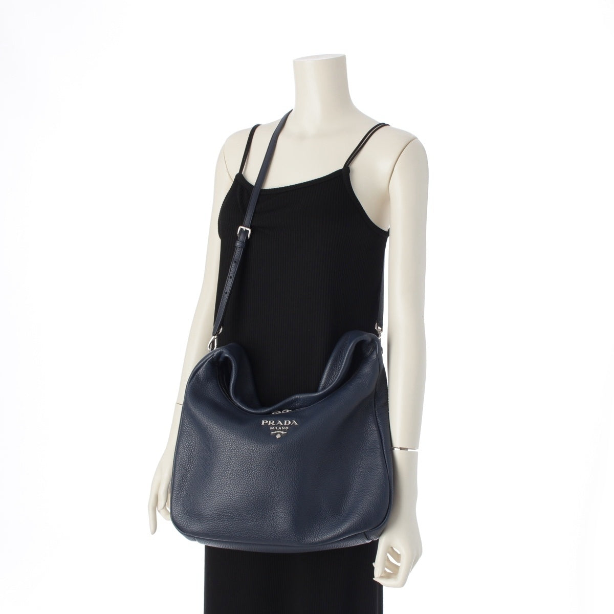 PRADA Vitello Phoenix leather 2way Shoulder Handbag 1BC134 Navy