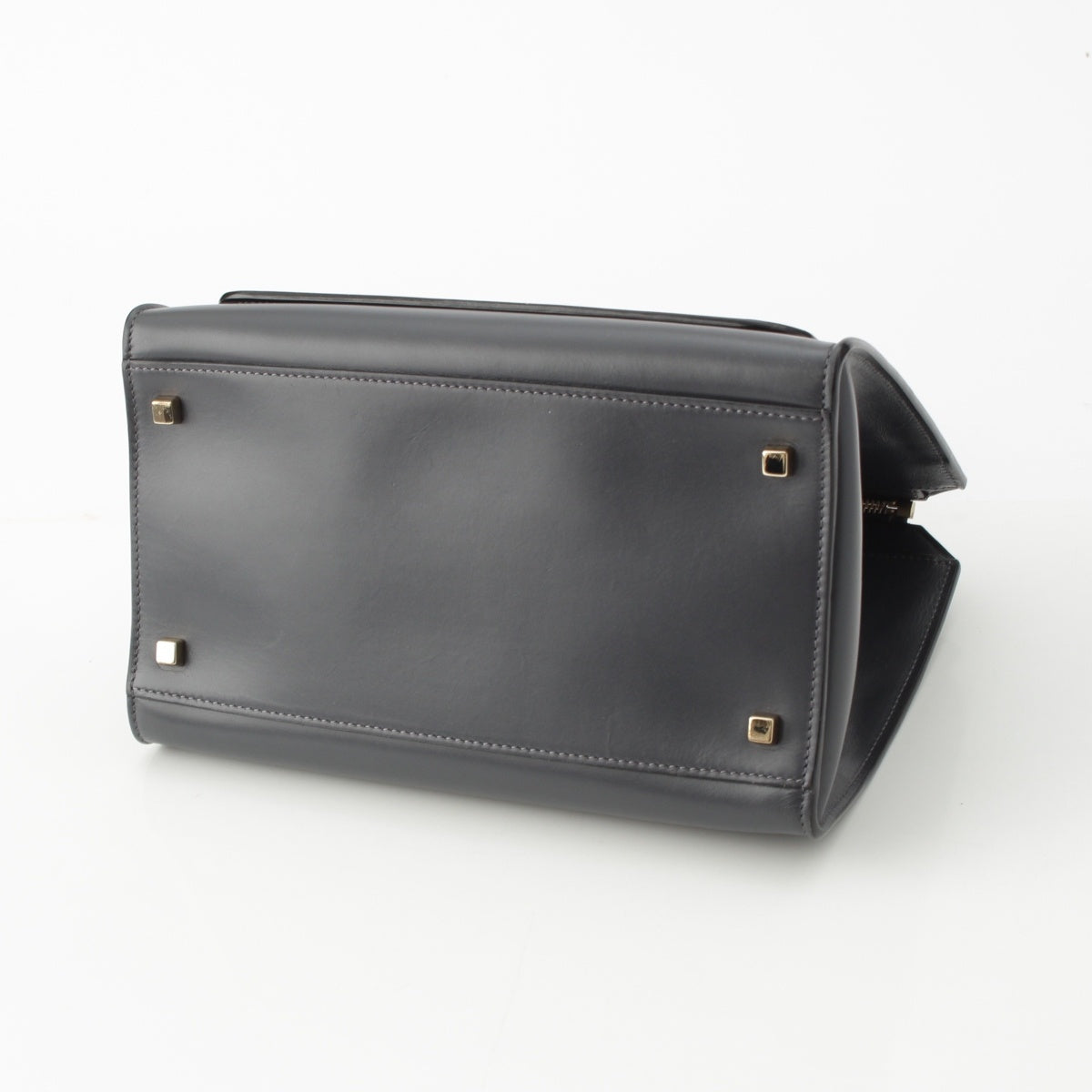 Valextra paspatato medium leather 2WAY Shoulder Handbag gray