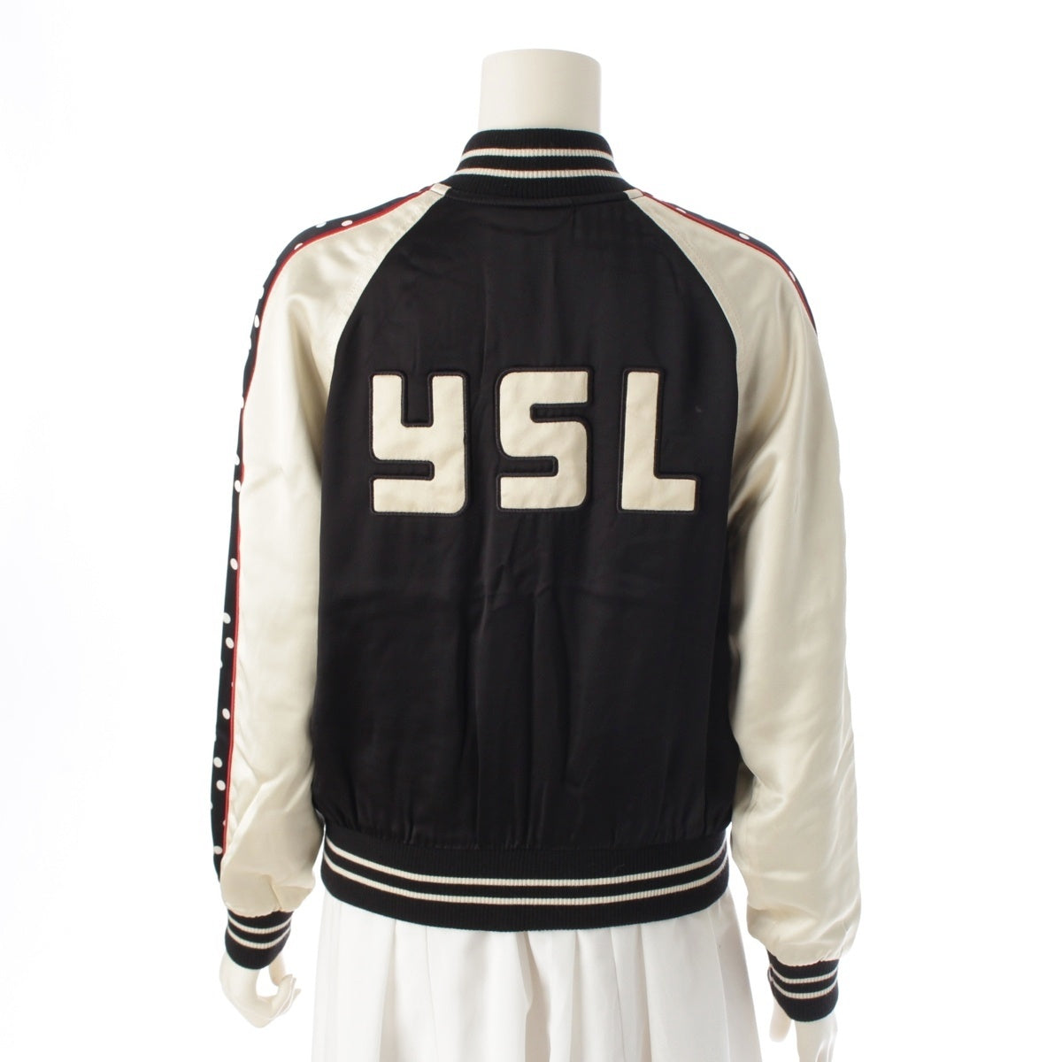 SAINT LAURENT Rayon YSL Back Logo Polka Dot Satin Teddy Jacket outer black 36