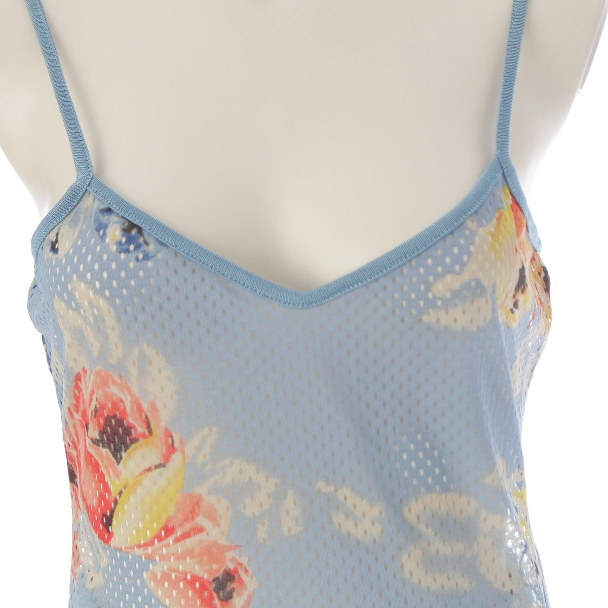 Dior Nylon Archive Galliano-era BLUE FLOWER mesh tank top camisole tops Blue multicolor F38