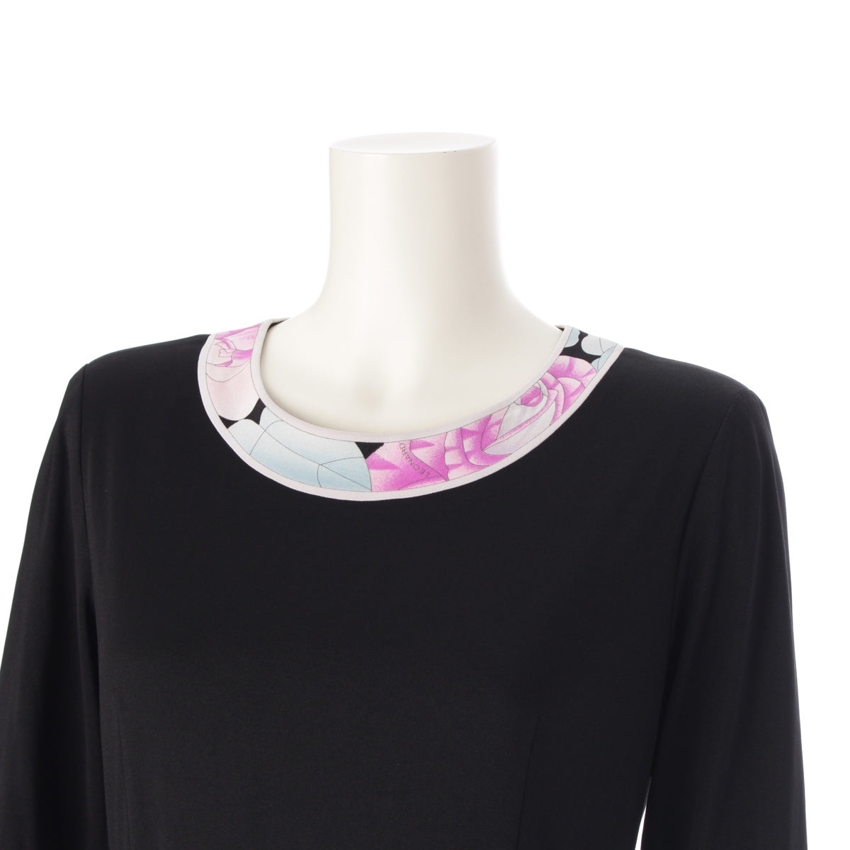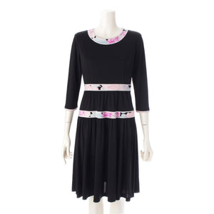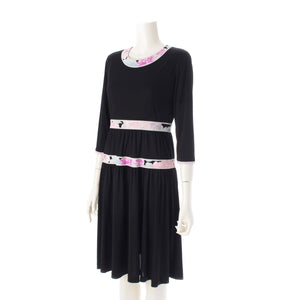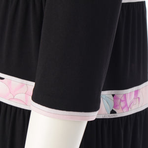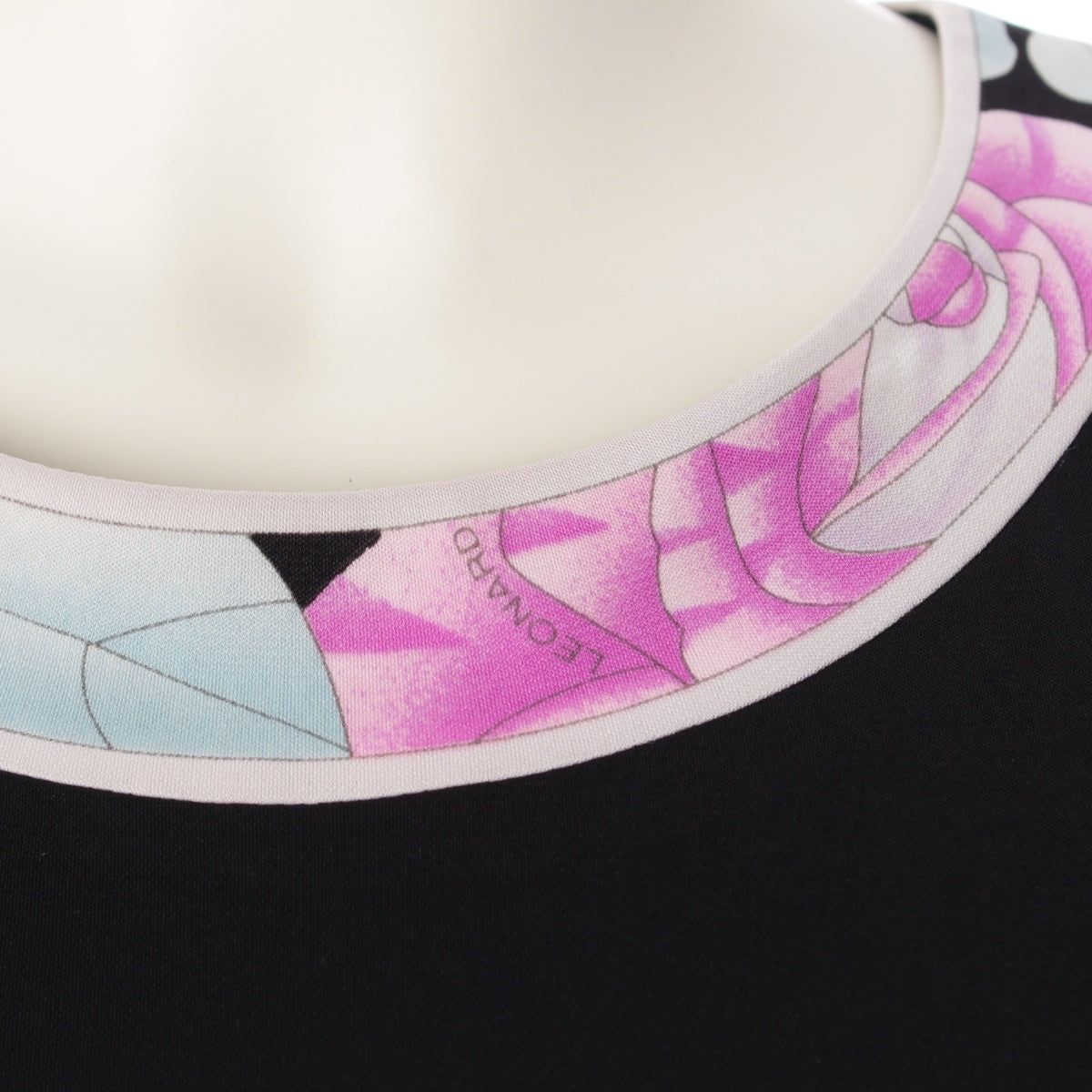 LEONARD Cancan material Round neck 3/4 length tunic one piece 0340352 Black x pink grey 36