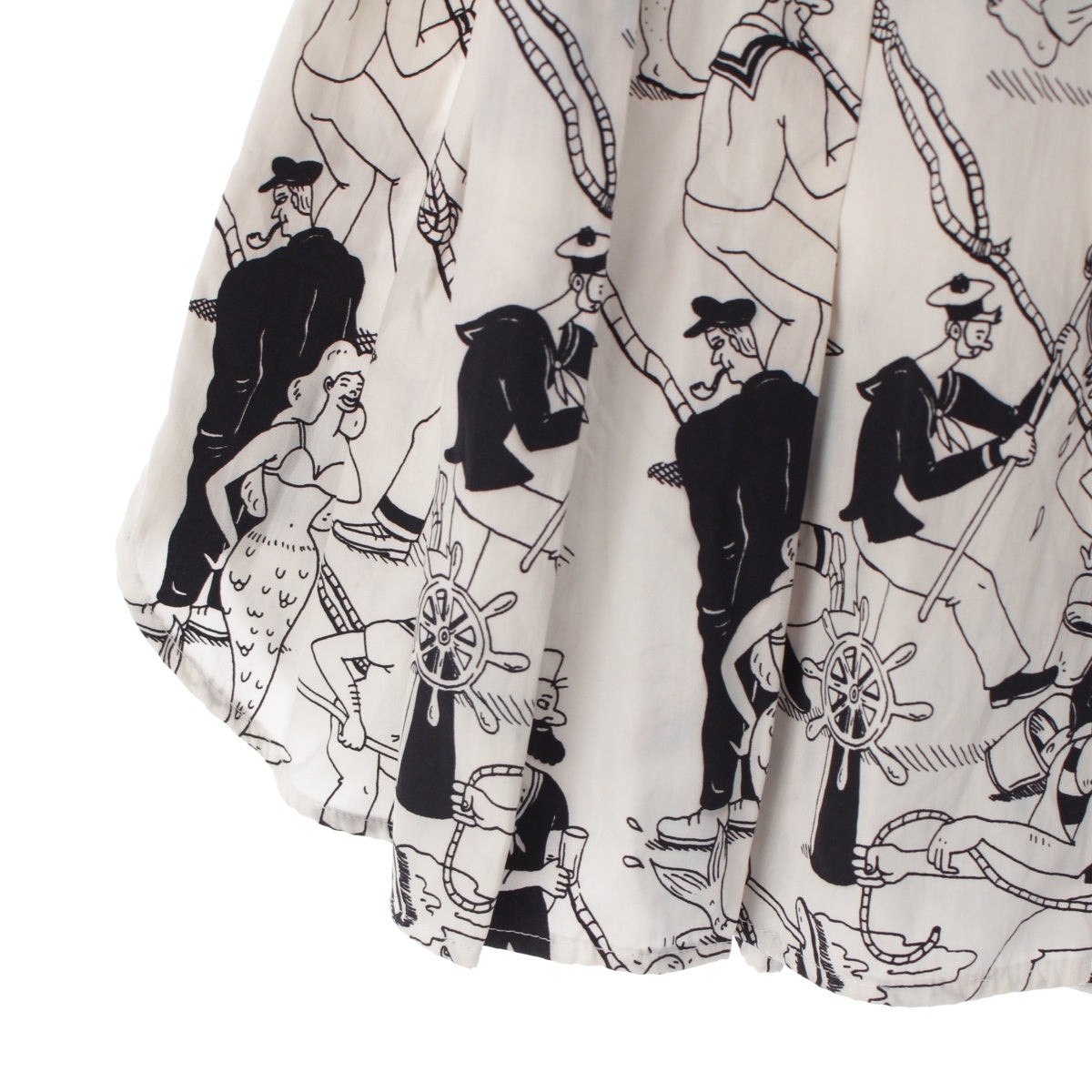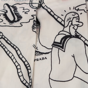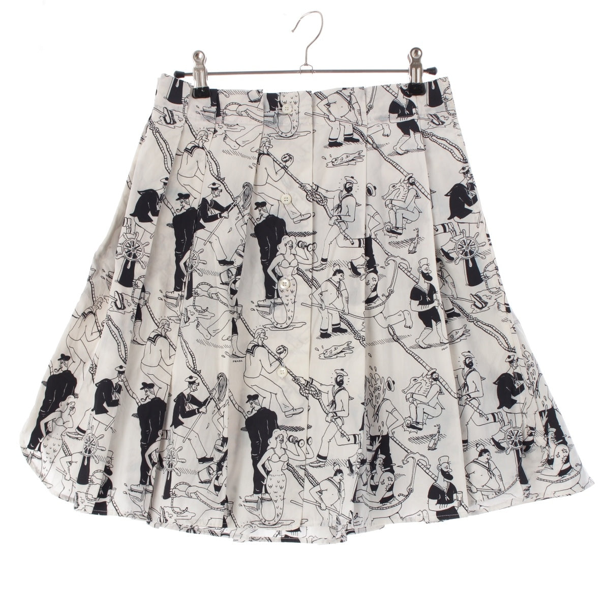 PRADA cotton All-over Pleated Mini skirt Bottoms Black White 38