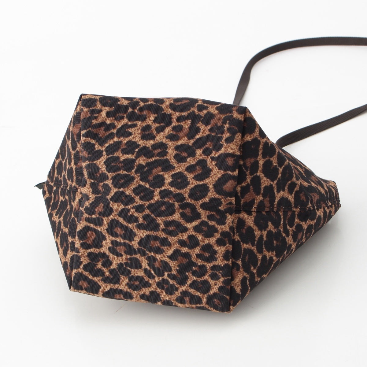 Herve Chapelier Nylon Leopard Pattern Leopard Mini Shoulder Bag 2885F Brown black