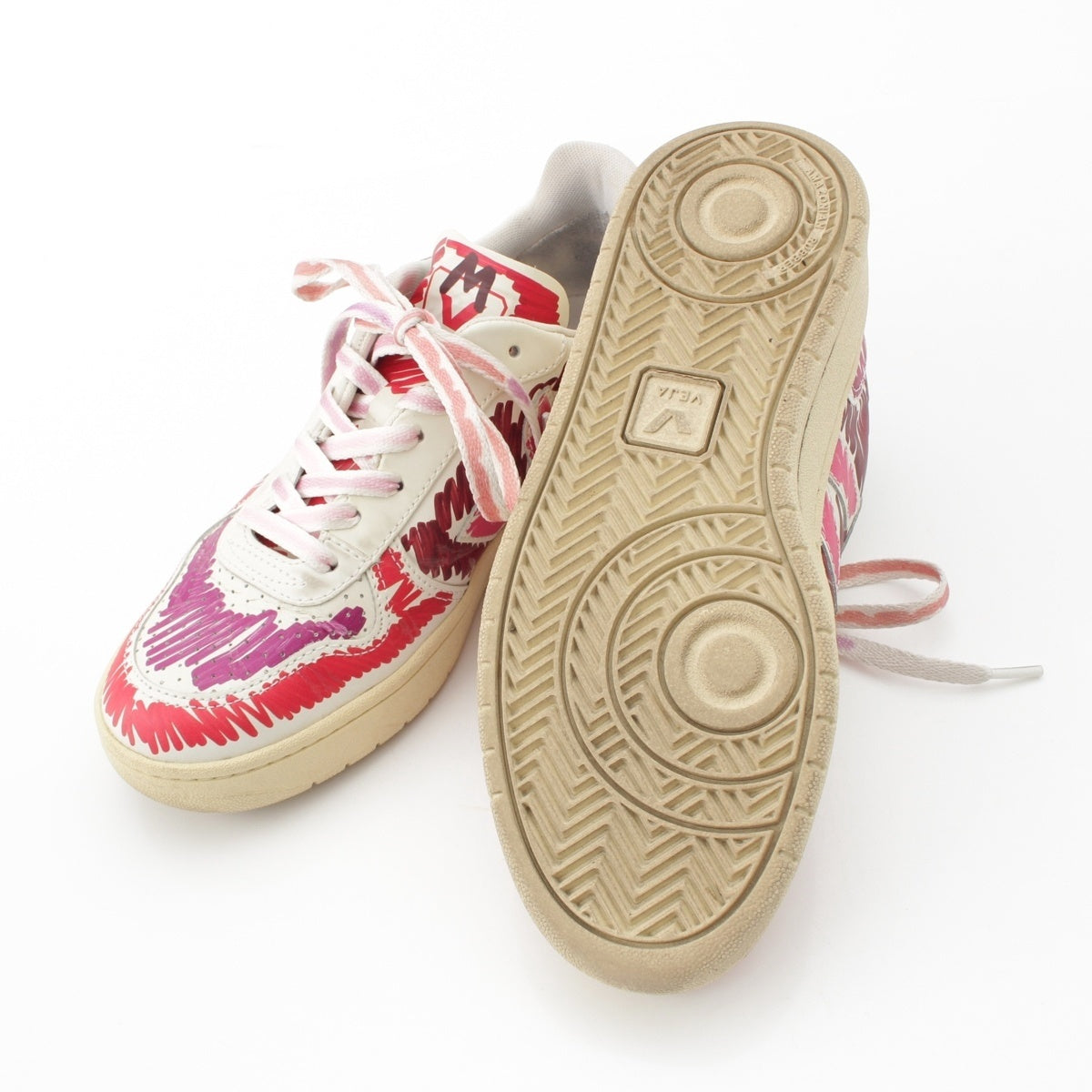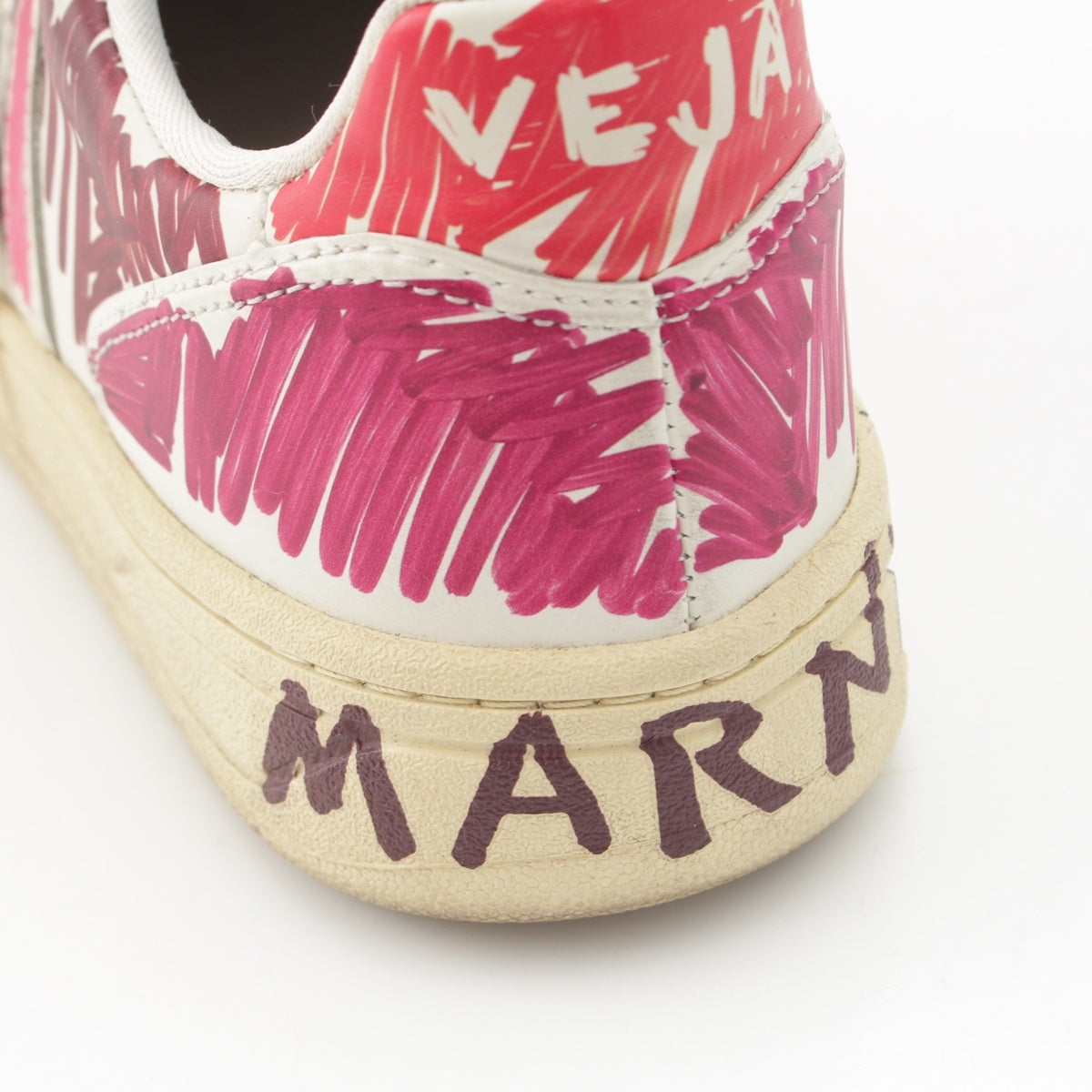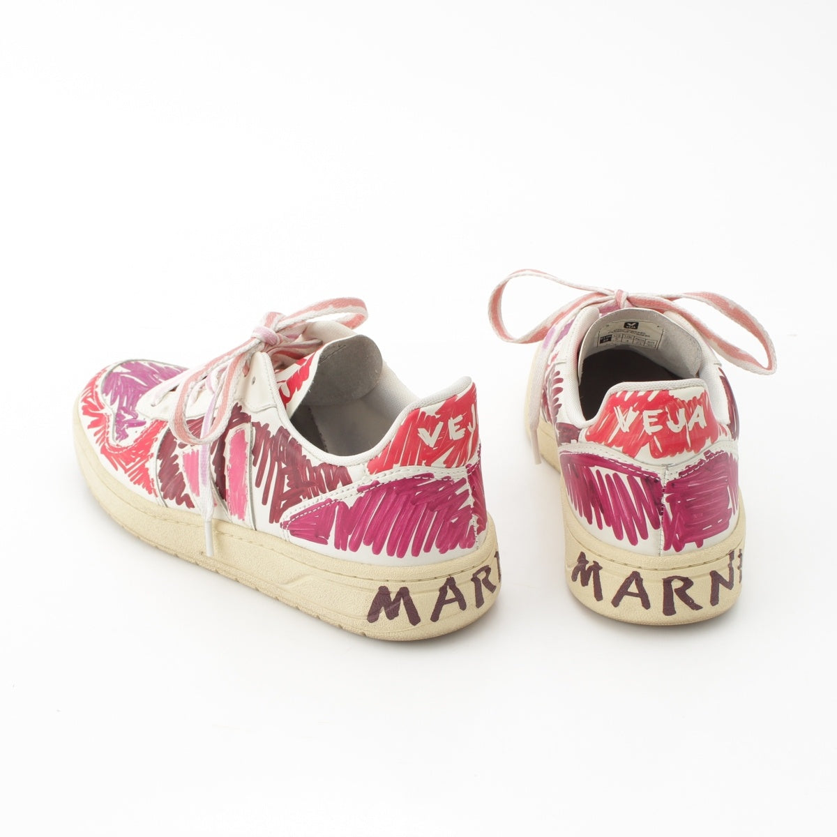 MARNI leather Logo Painted Low Cut sneakers shoes White x pink 9.1"