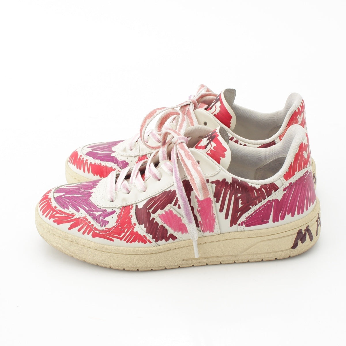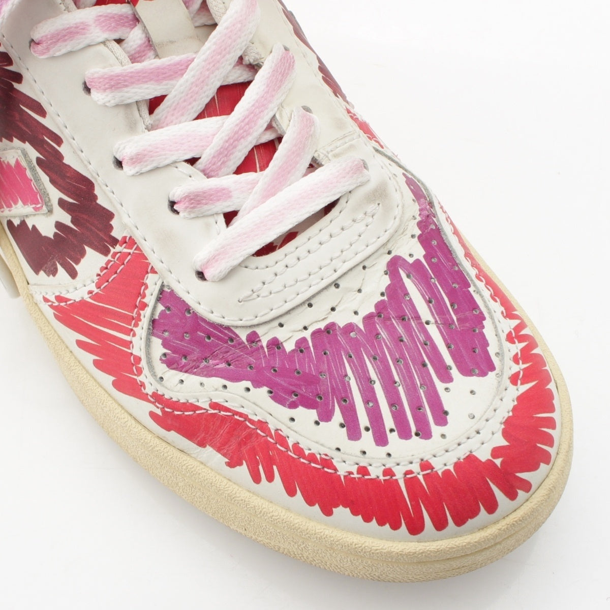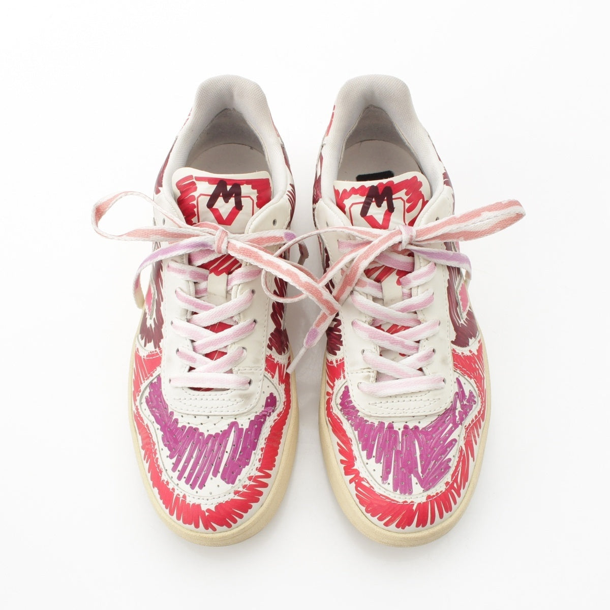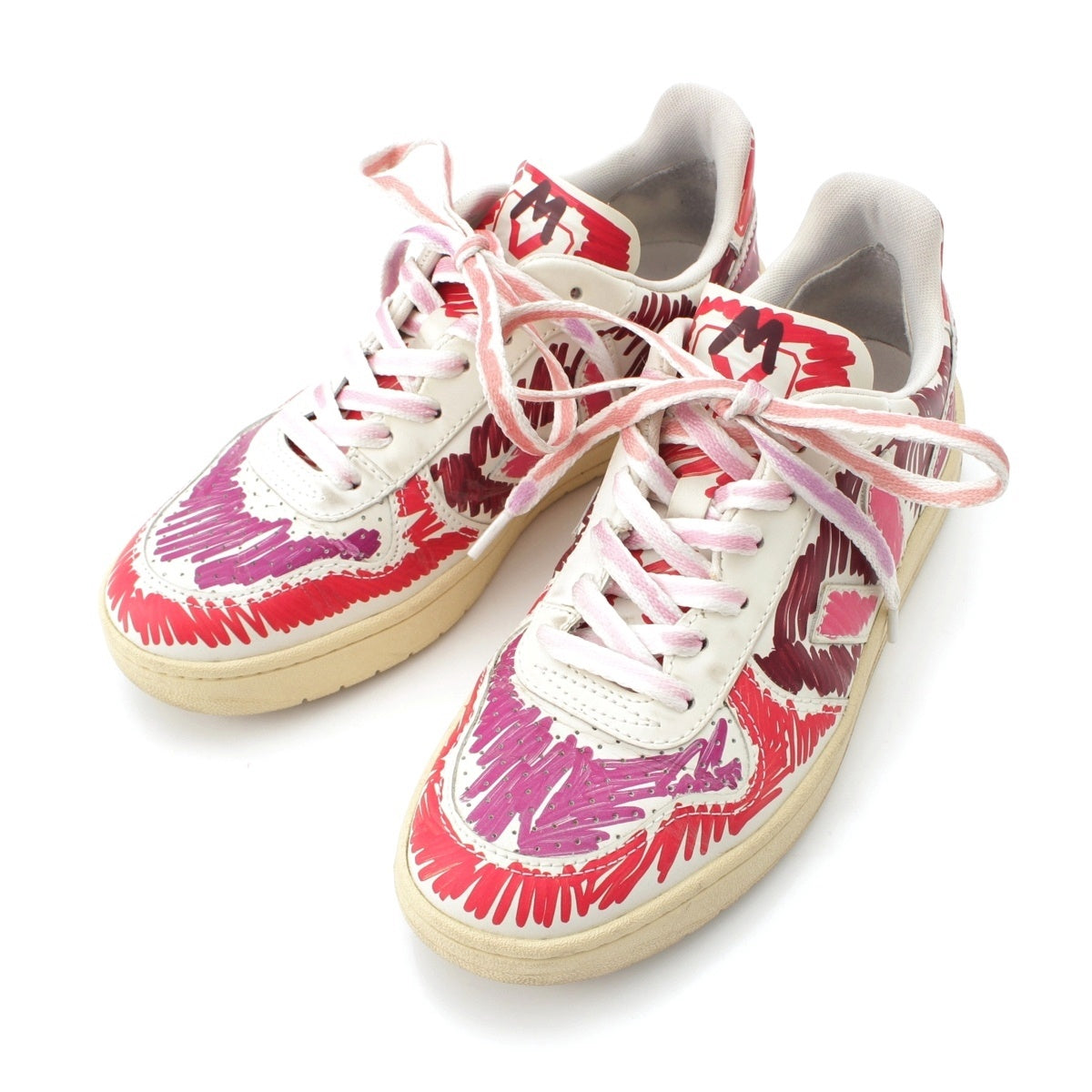 MARNI leather Logo Painted Low Cut sneakers shoes White x pink 9.1"