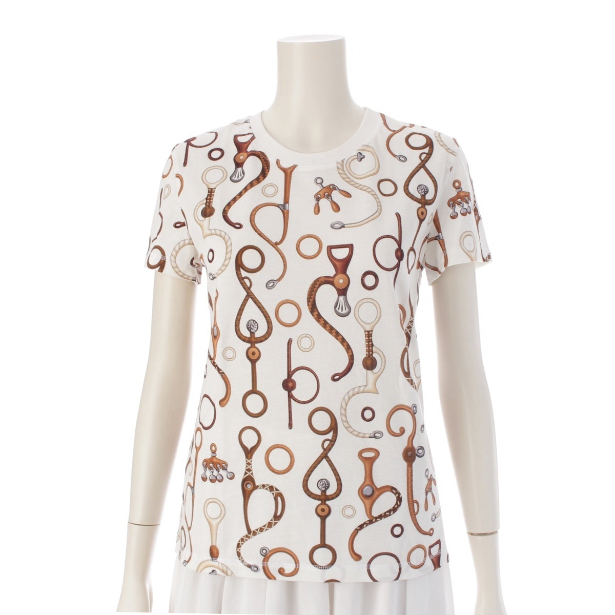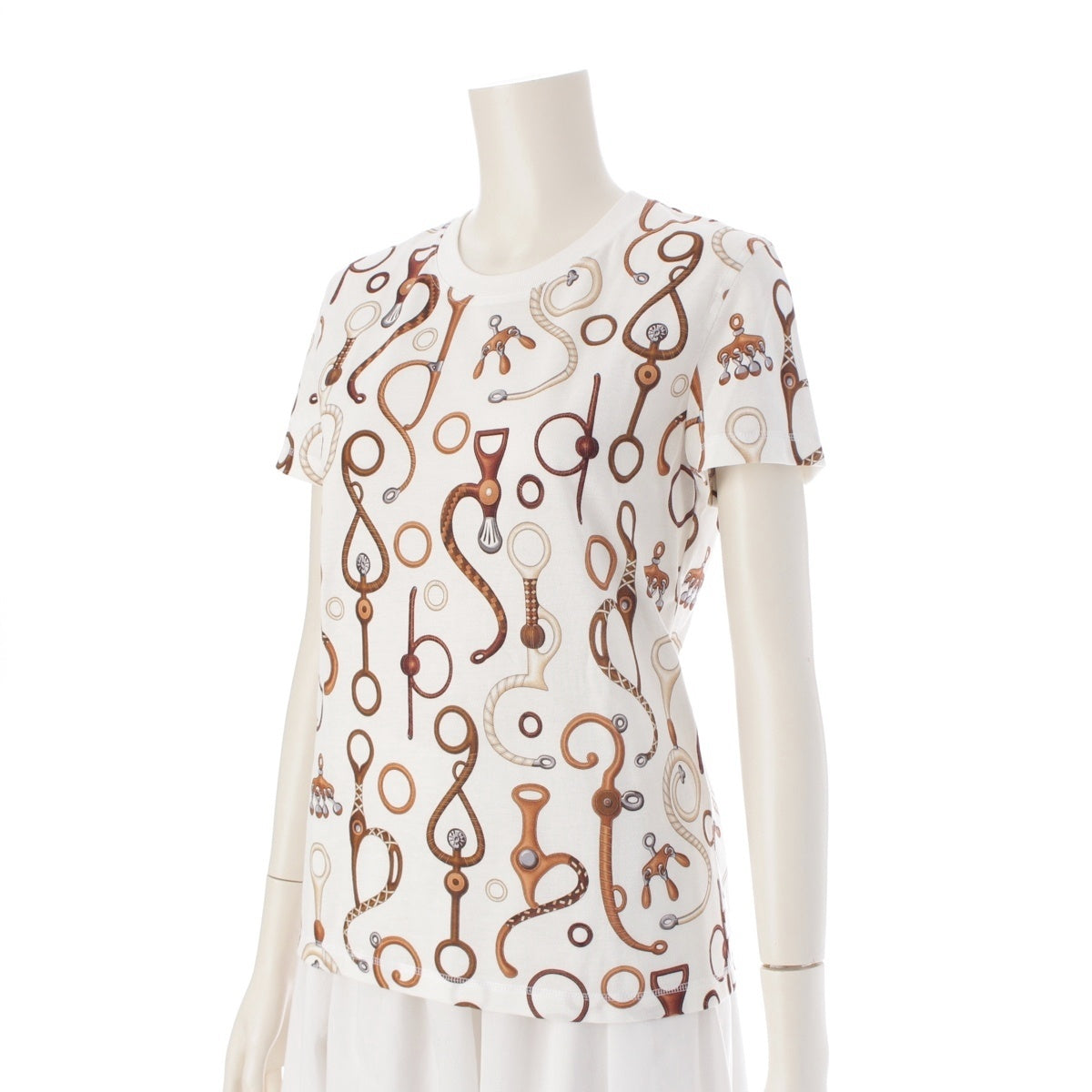 HERMES Panoplie Tout Cuir cotton Short sleeve t-shirt Cut tops 4E4632DN white 34