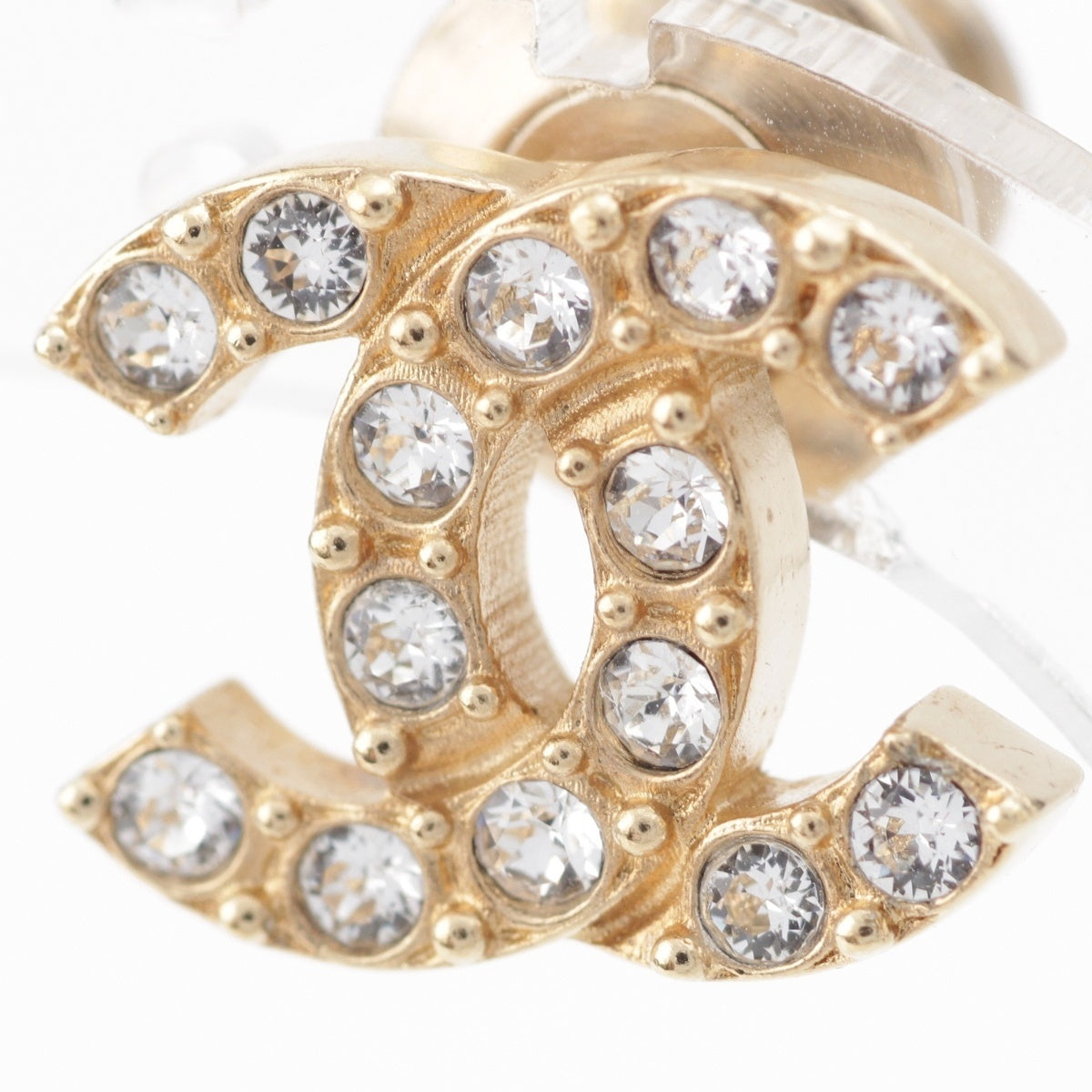 CHANEL Gold Plated L22P COCO Mark BOY Pin Stone 2-piece set Brooch Accessories gold