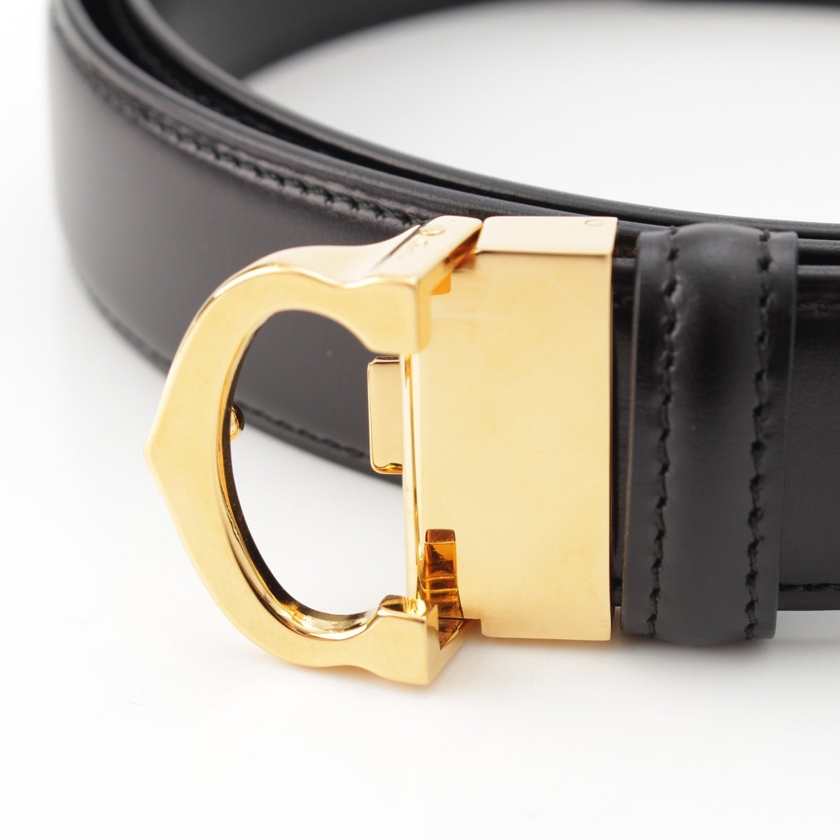 CARTIER leather Must de Cartier C Buckle belt Black x Gold 120