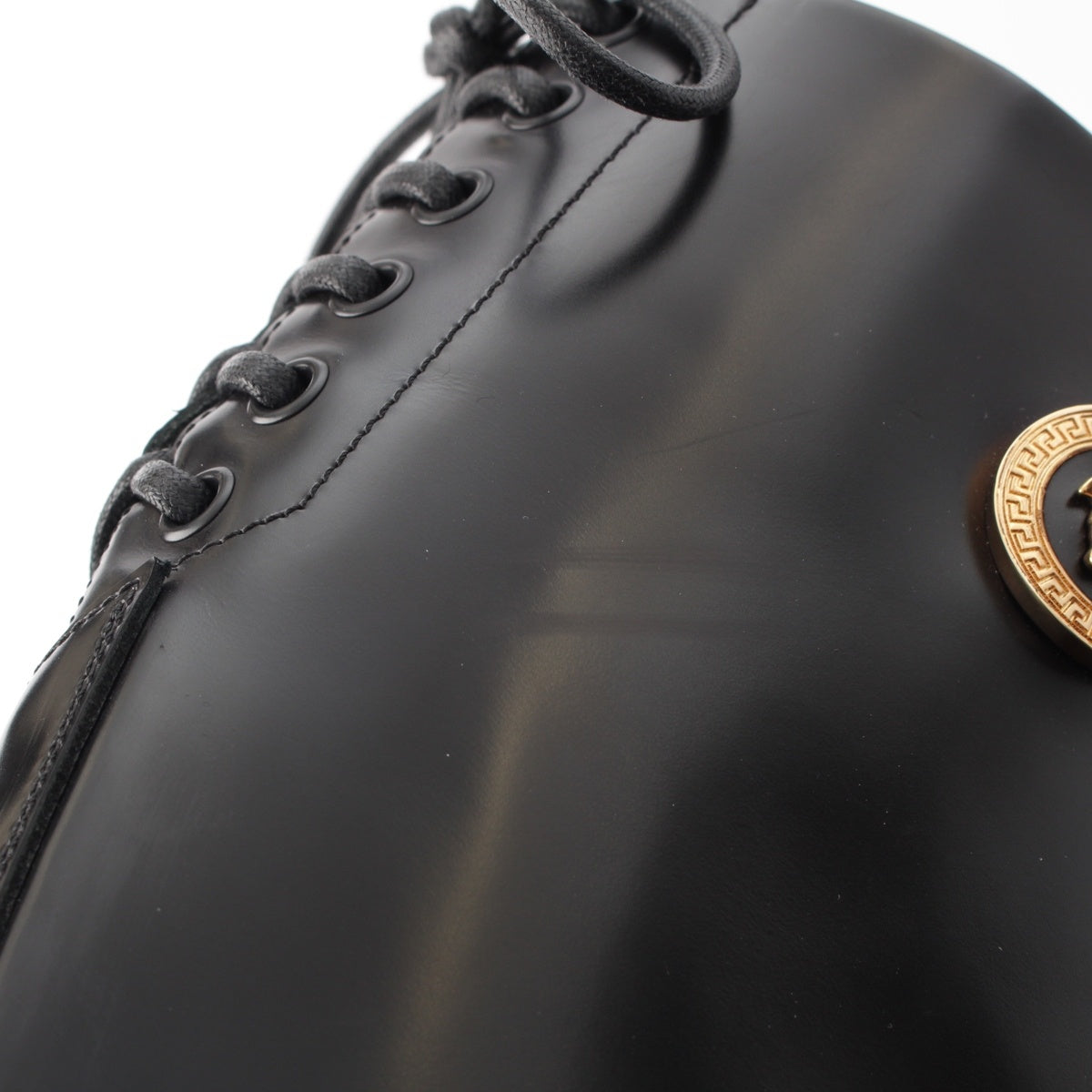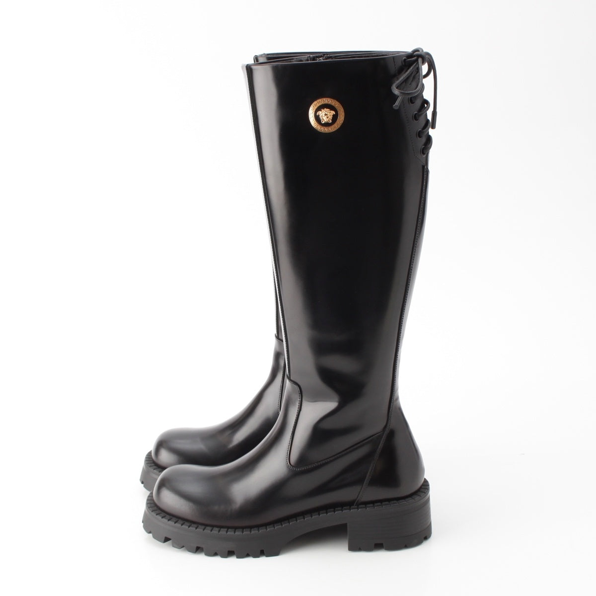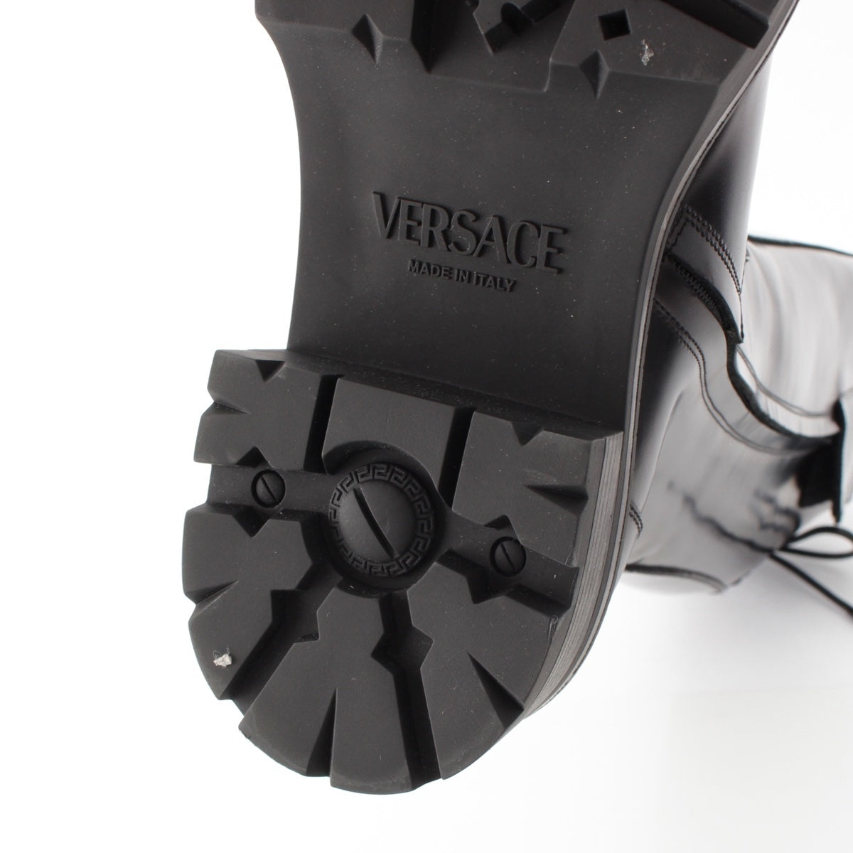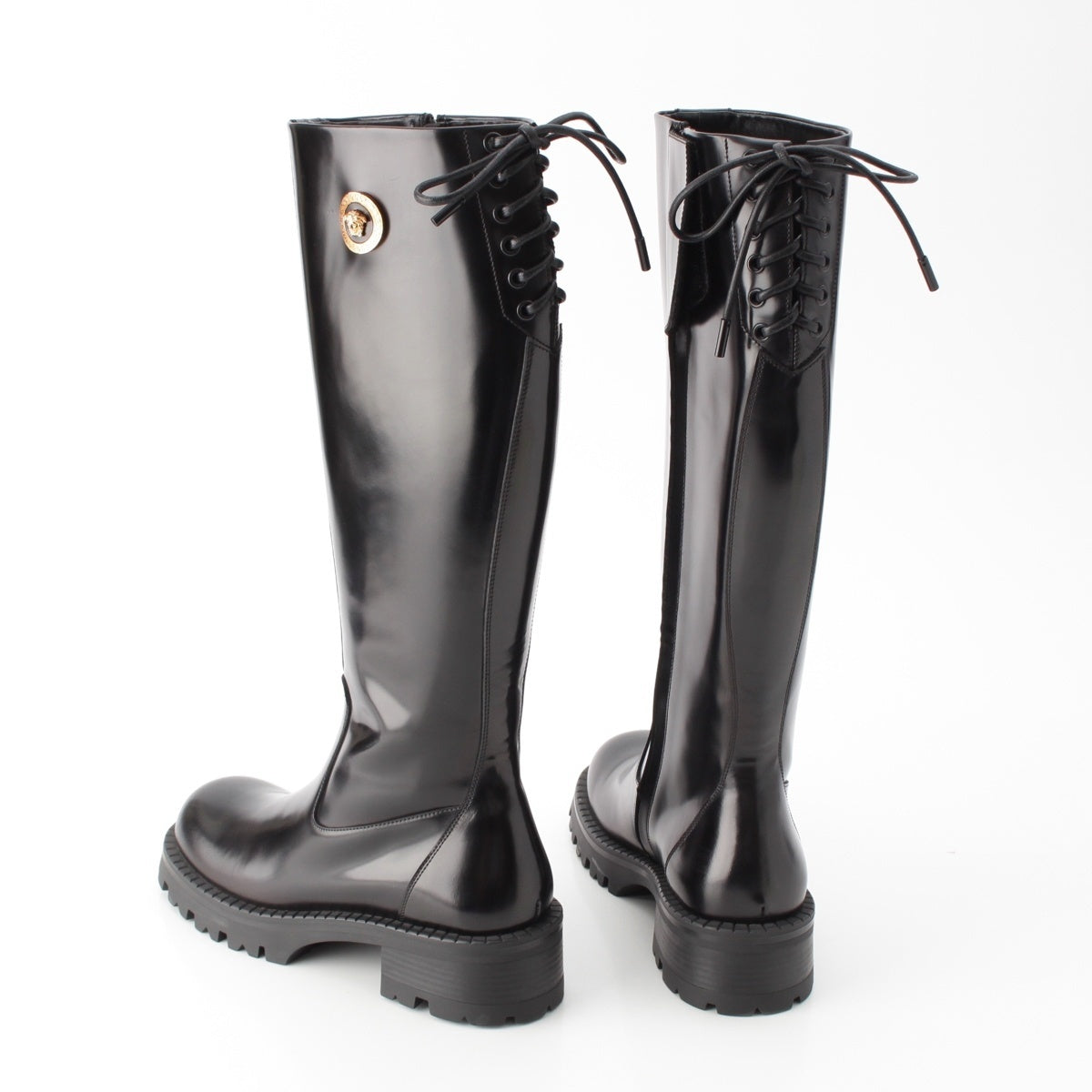 VERSACE leather Medusa Side Zipper Lace-up Long boots 2490 black 40