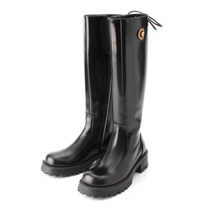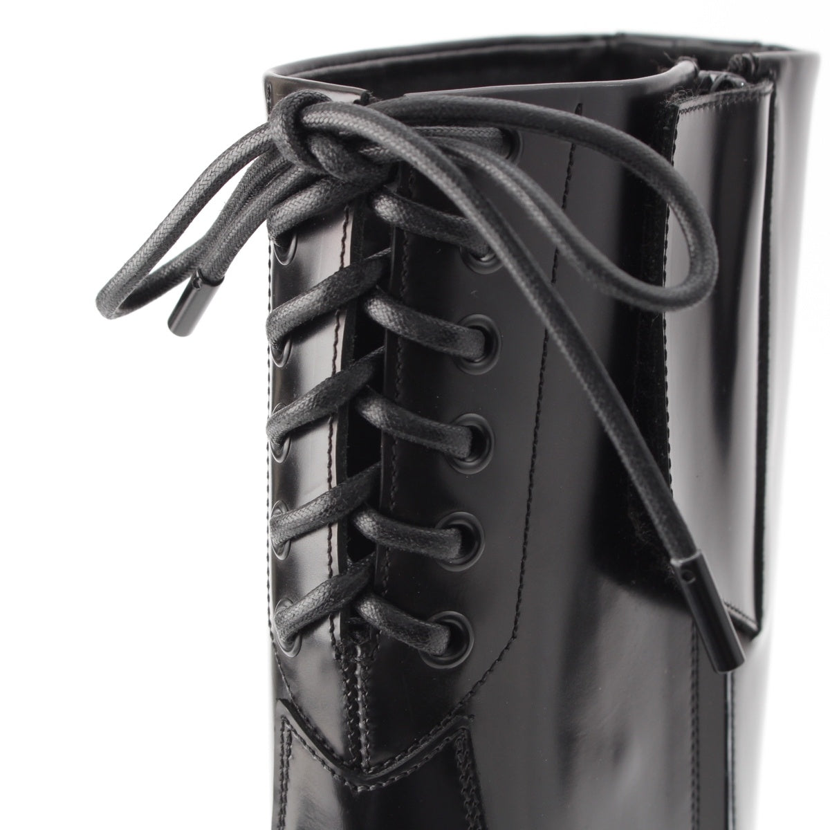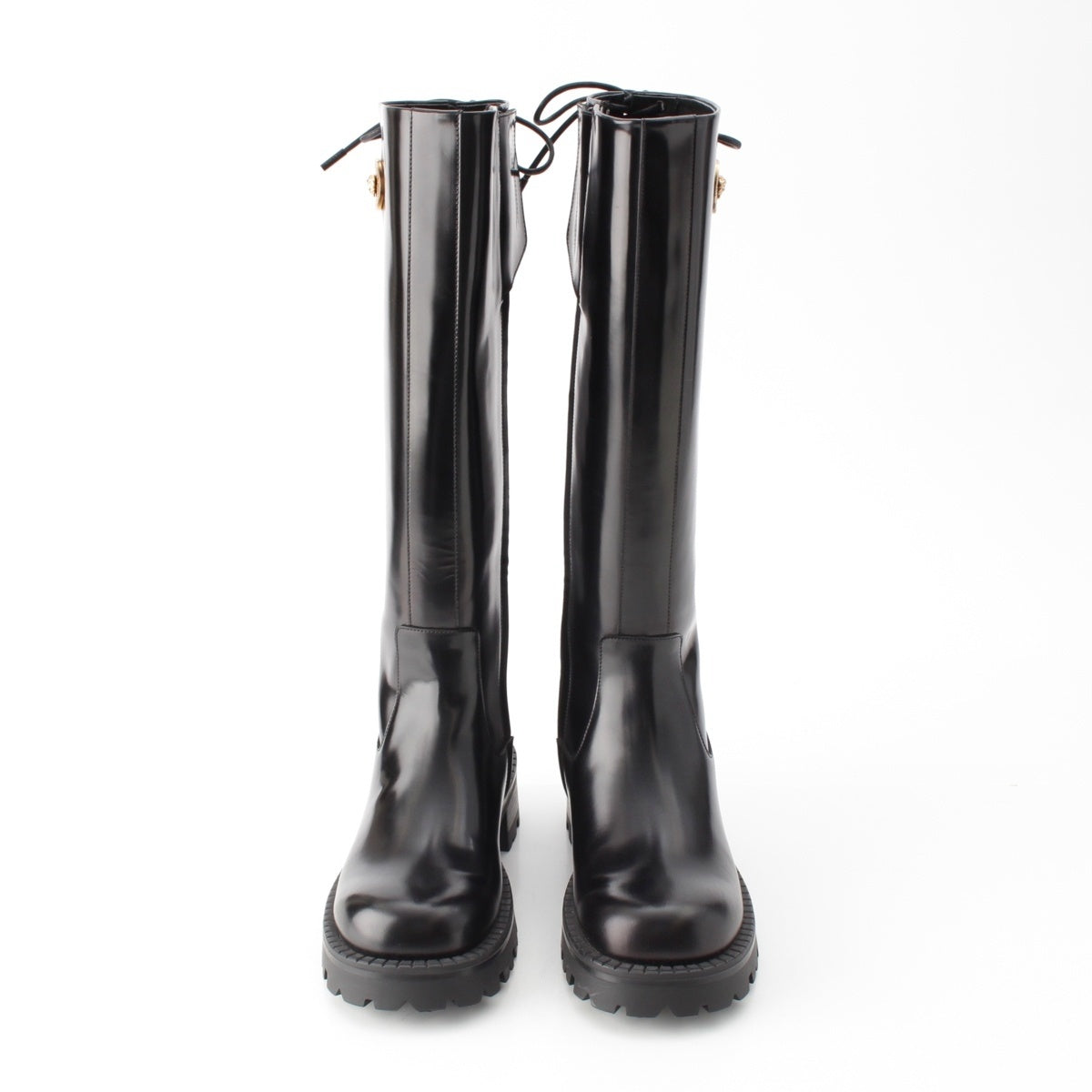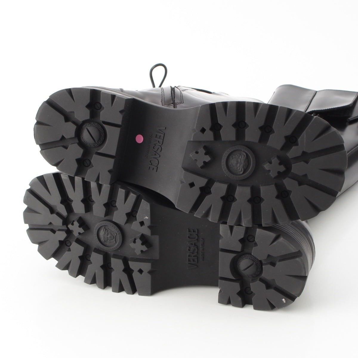 VERSACE leather Medusa Side Zipper Lace-up Long boots 2490 black 40
