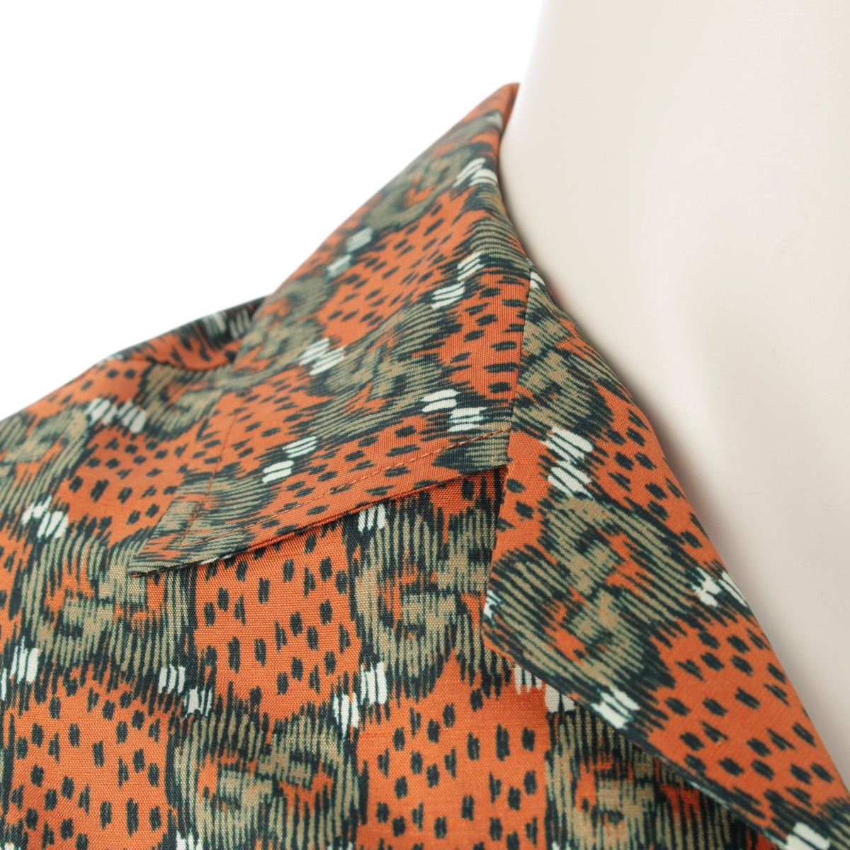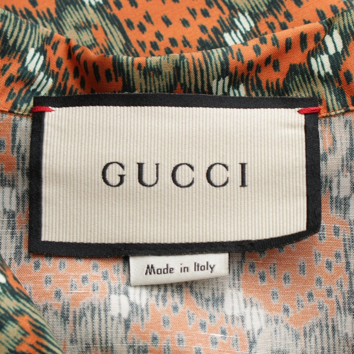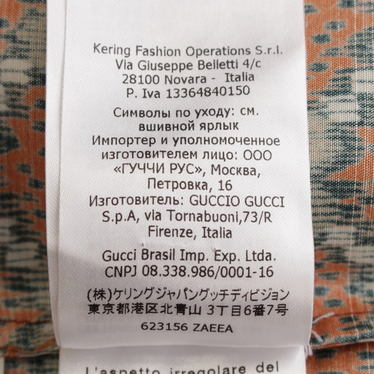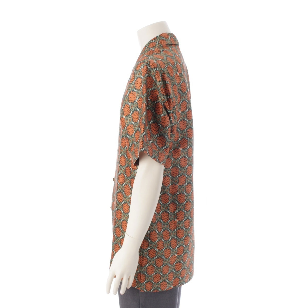 GUCCI silk GG logo open collar gold buttons Short sleeve shirt tops 623156 Orange Beige 42