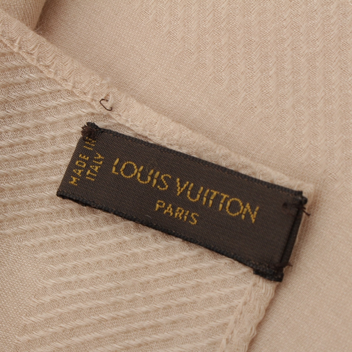 LOUIS VUITTON Cashmere Silk Monogram stall shawl beige
