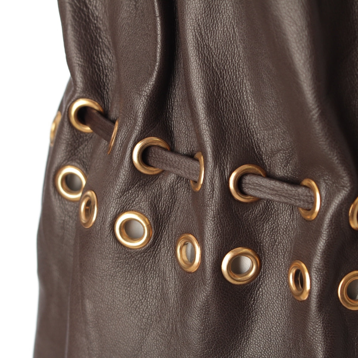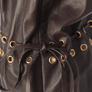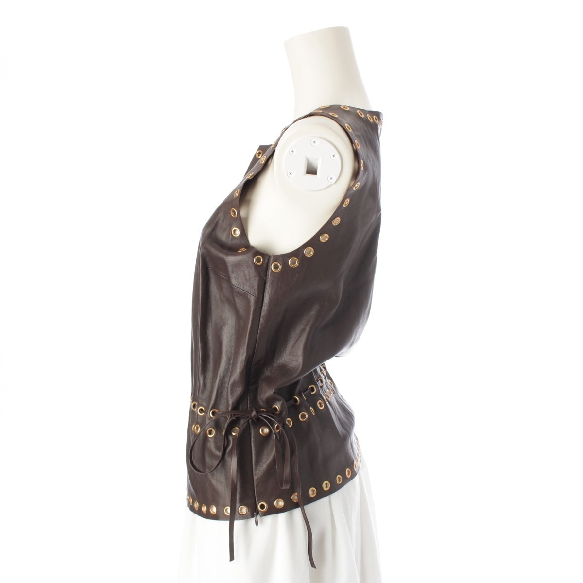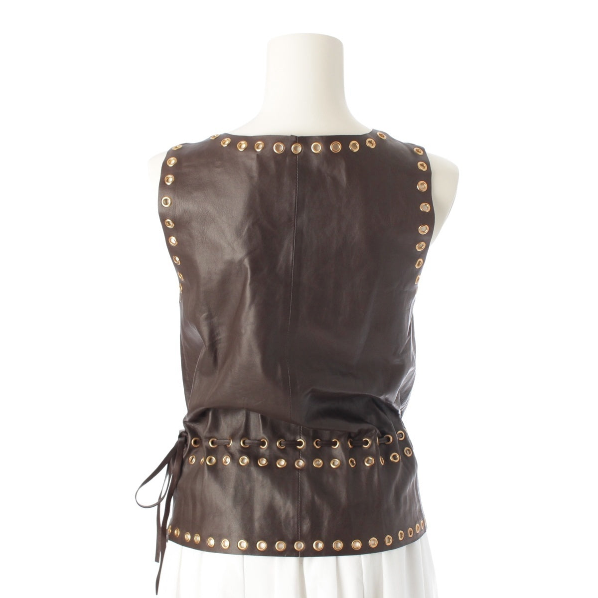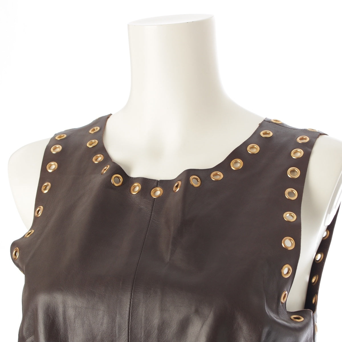 PRADA leather Archive Eyelet Ring Design Sleeveless tops Brown 40