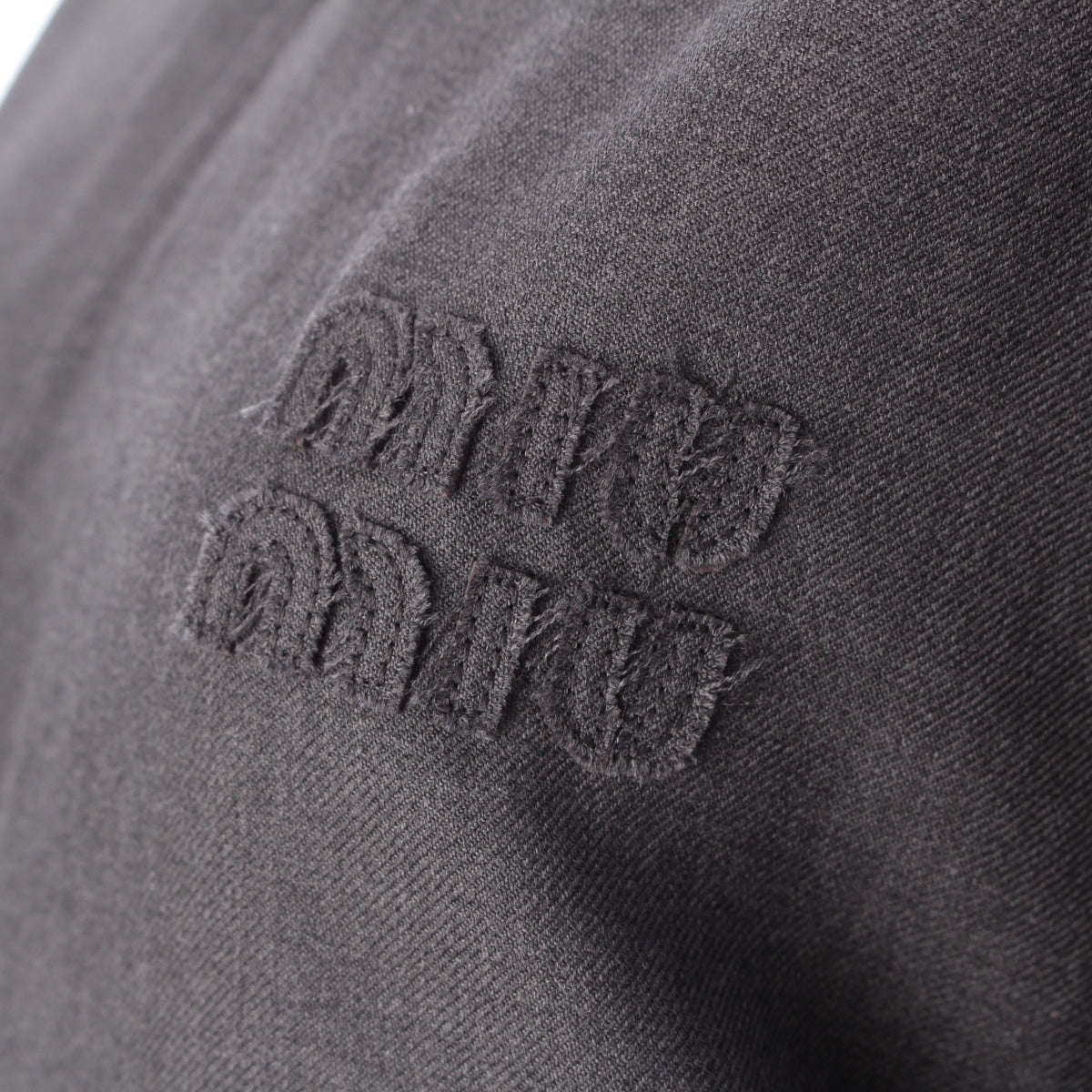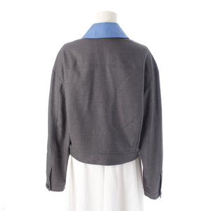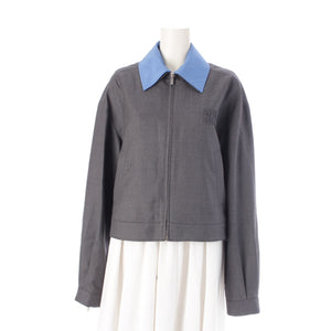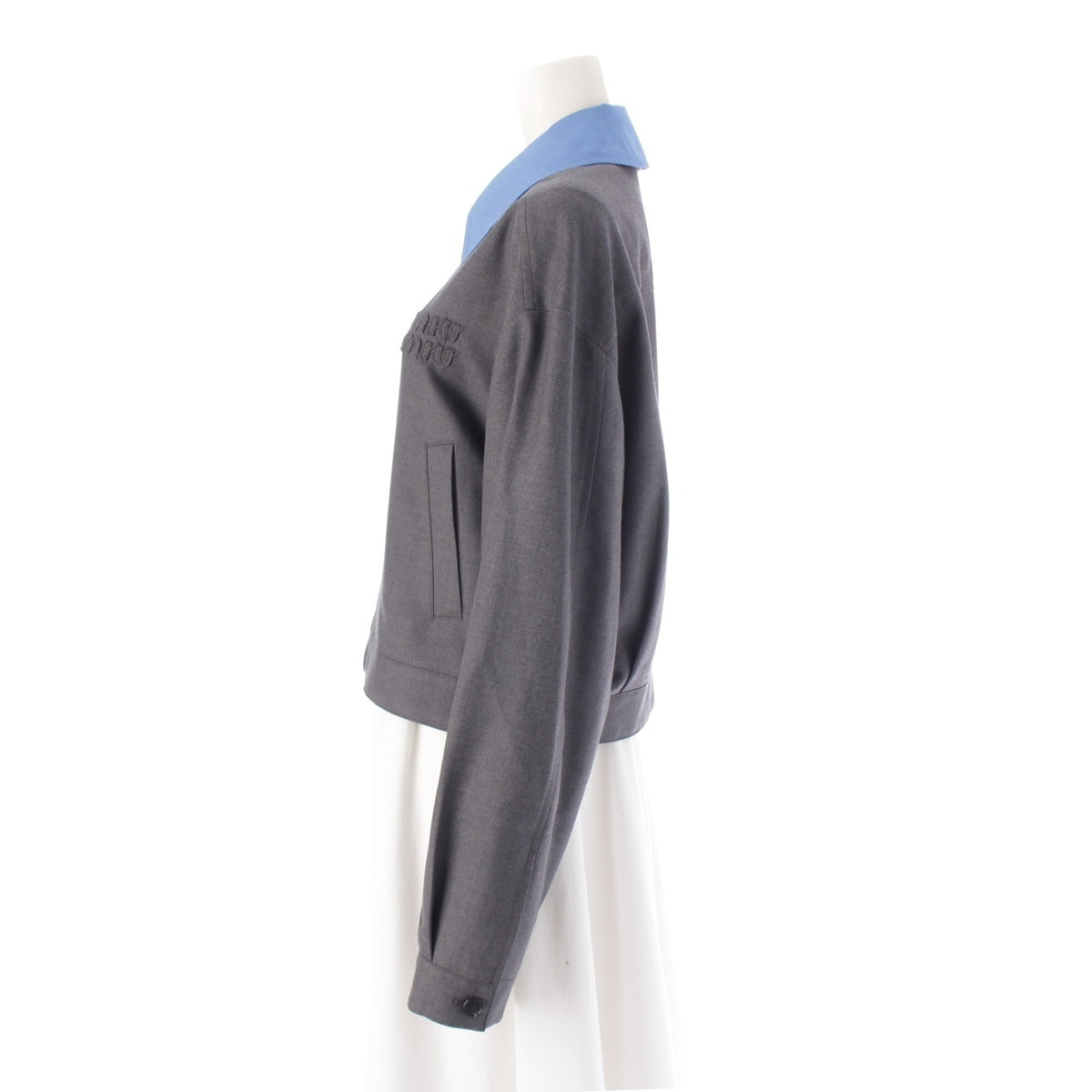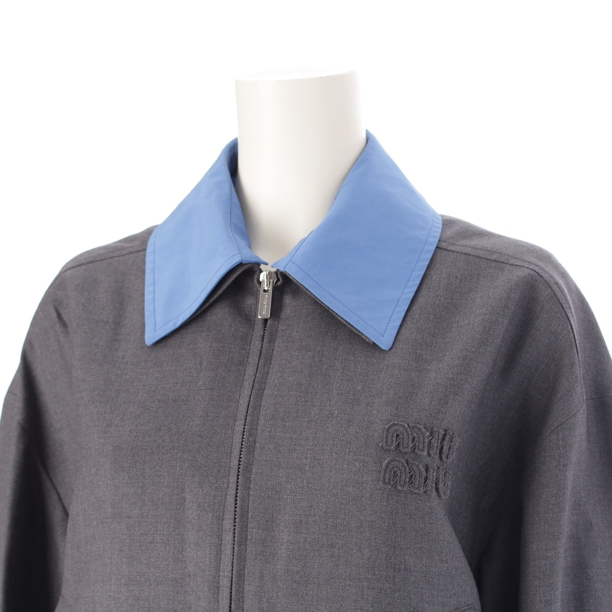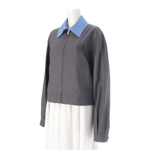 MIUMIU wool Poplin Collar Gabardine Blouson Jacket ML1052 Gray x blue 36