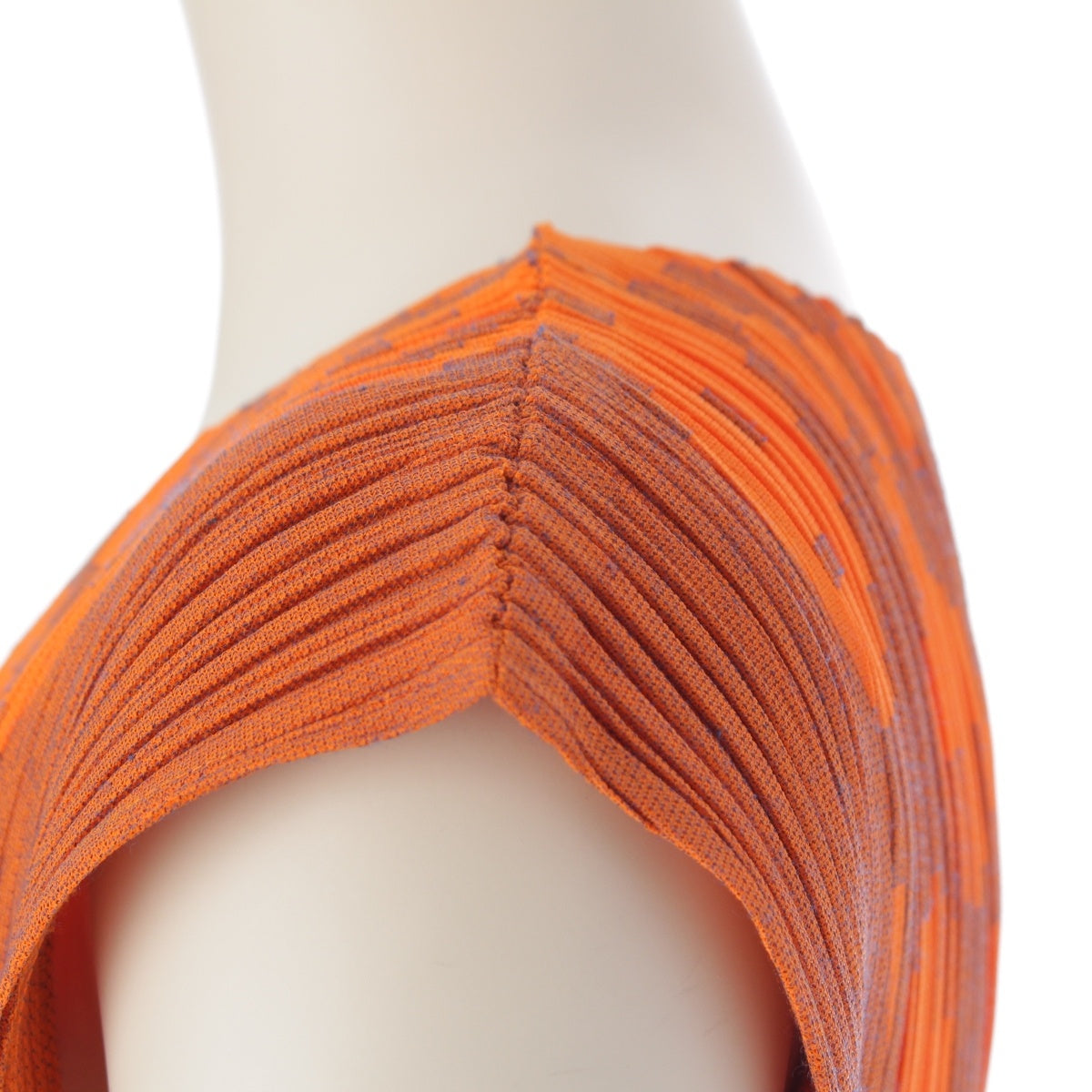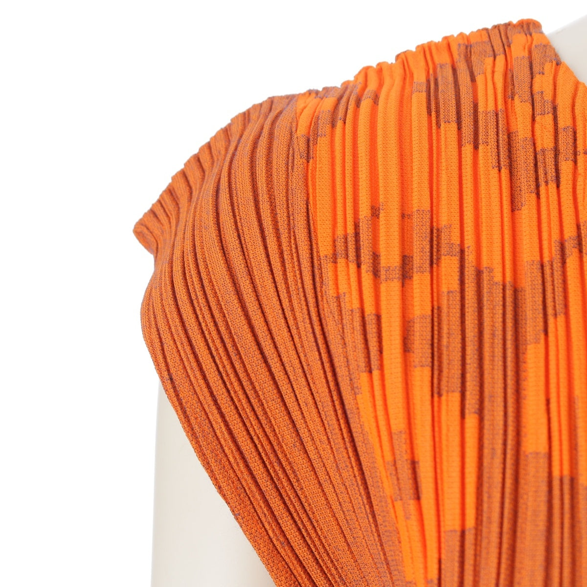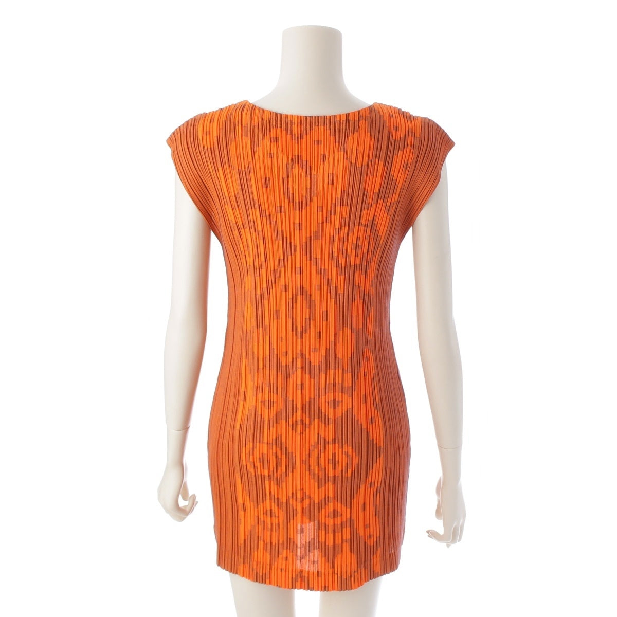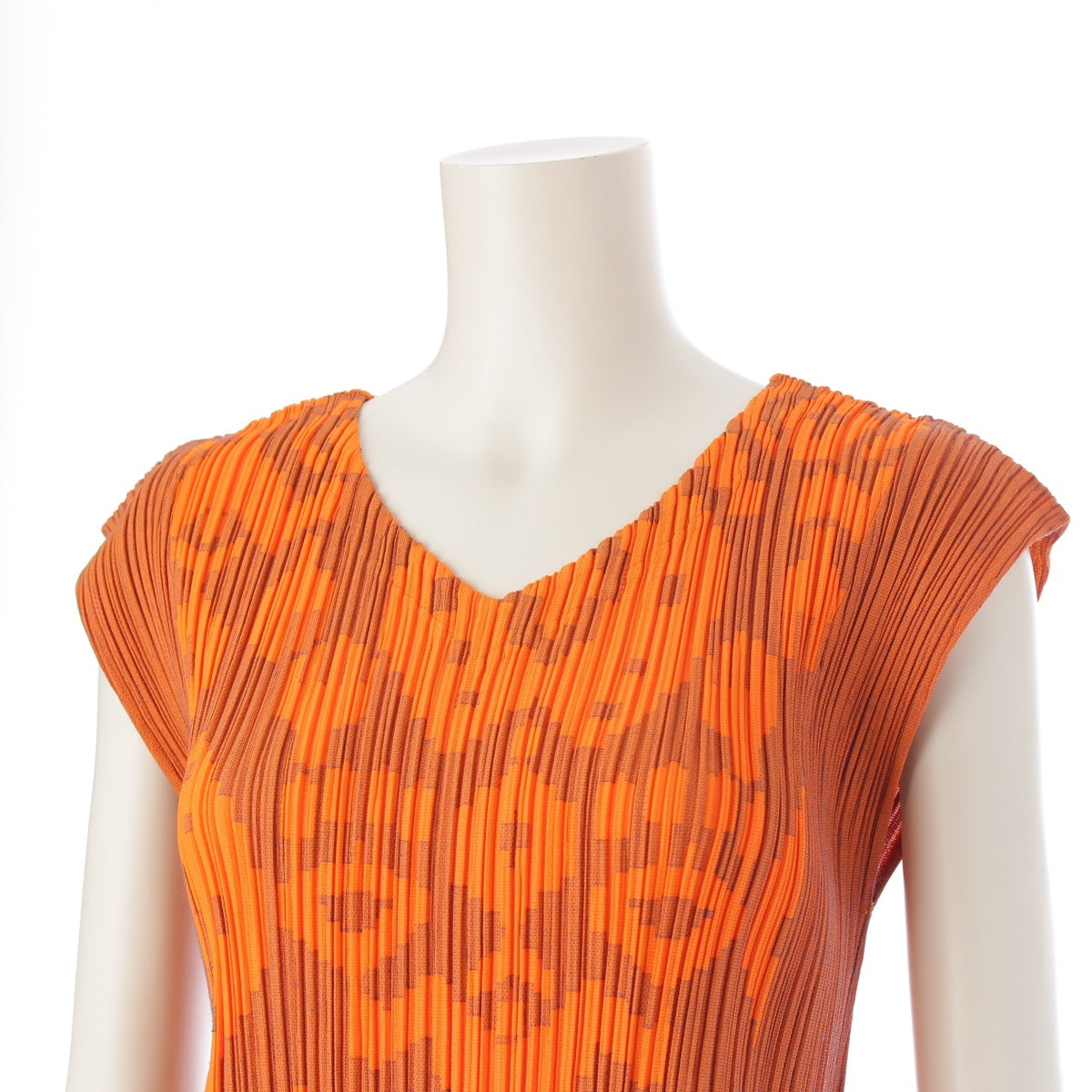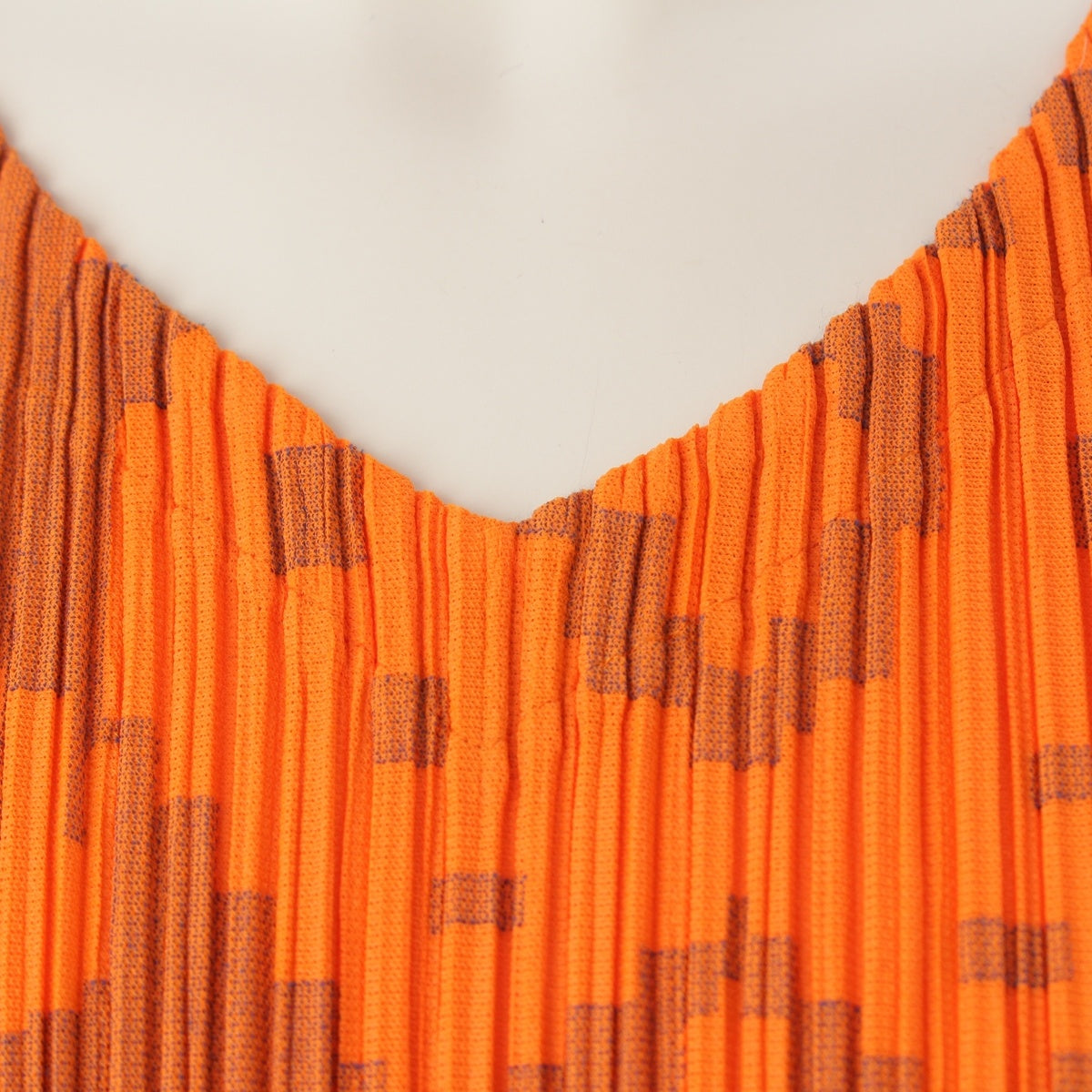 PLEATS PLEASE ISSEY All-over print V-neck sleeveless Tunic dress PP51-JT535 Orange 3