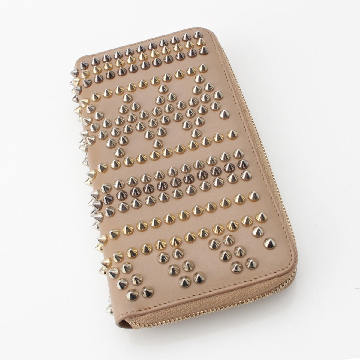 Christian Louboutin Panettone Spike stud round zip wallet Purse beige