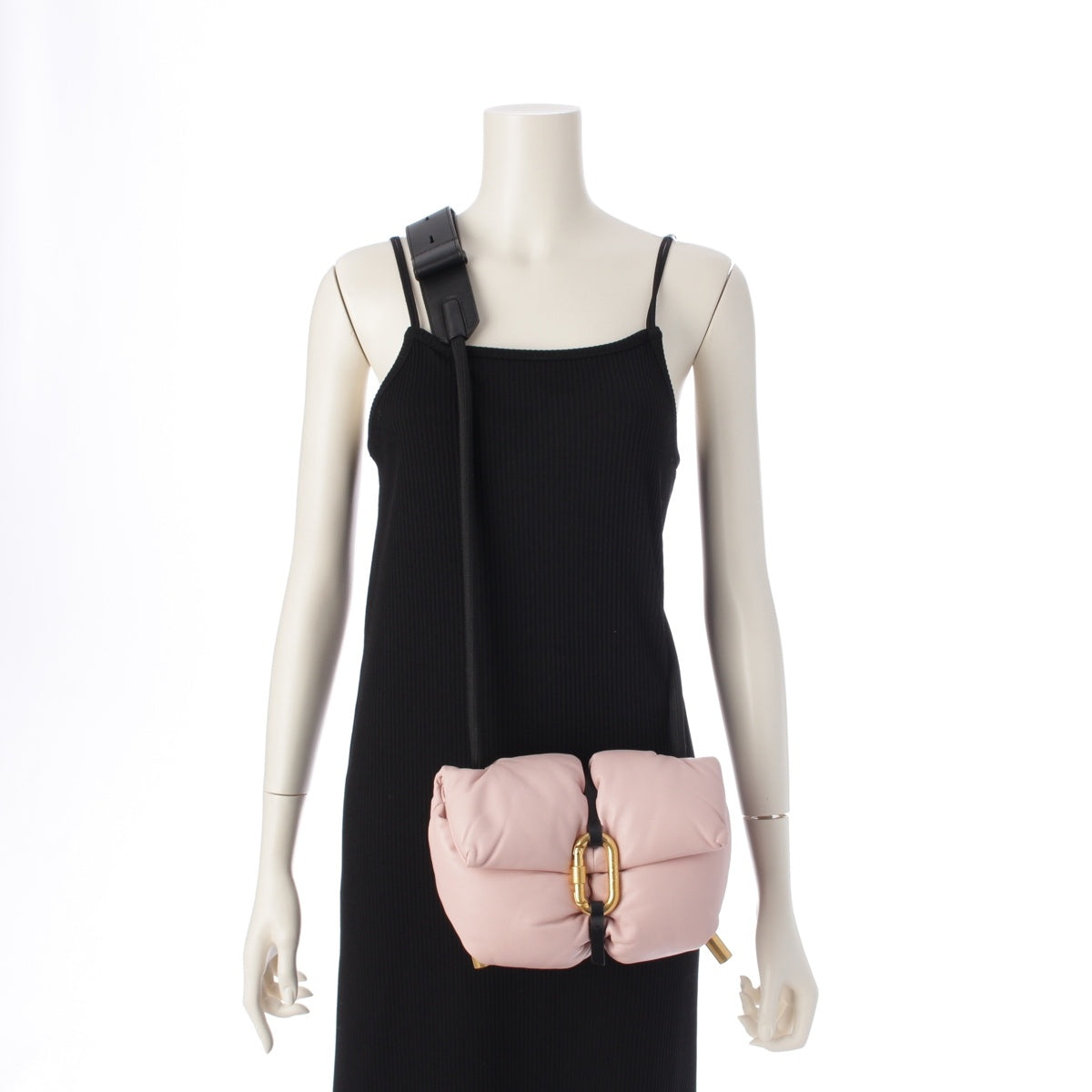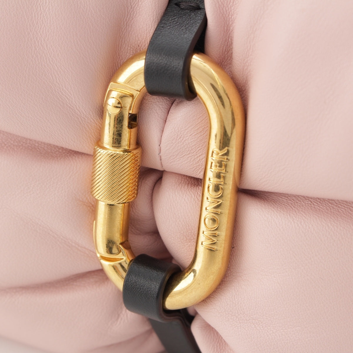MONCLER SNOW Carabiner Leather Down Shoulder Bag Pink black