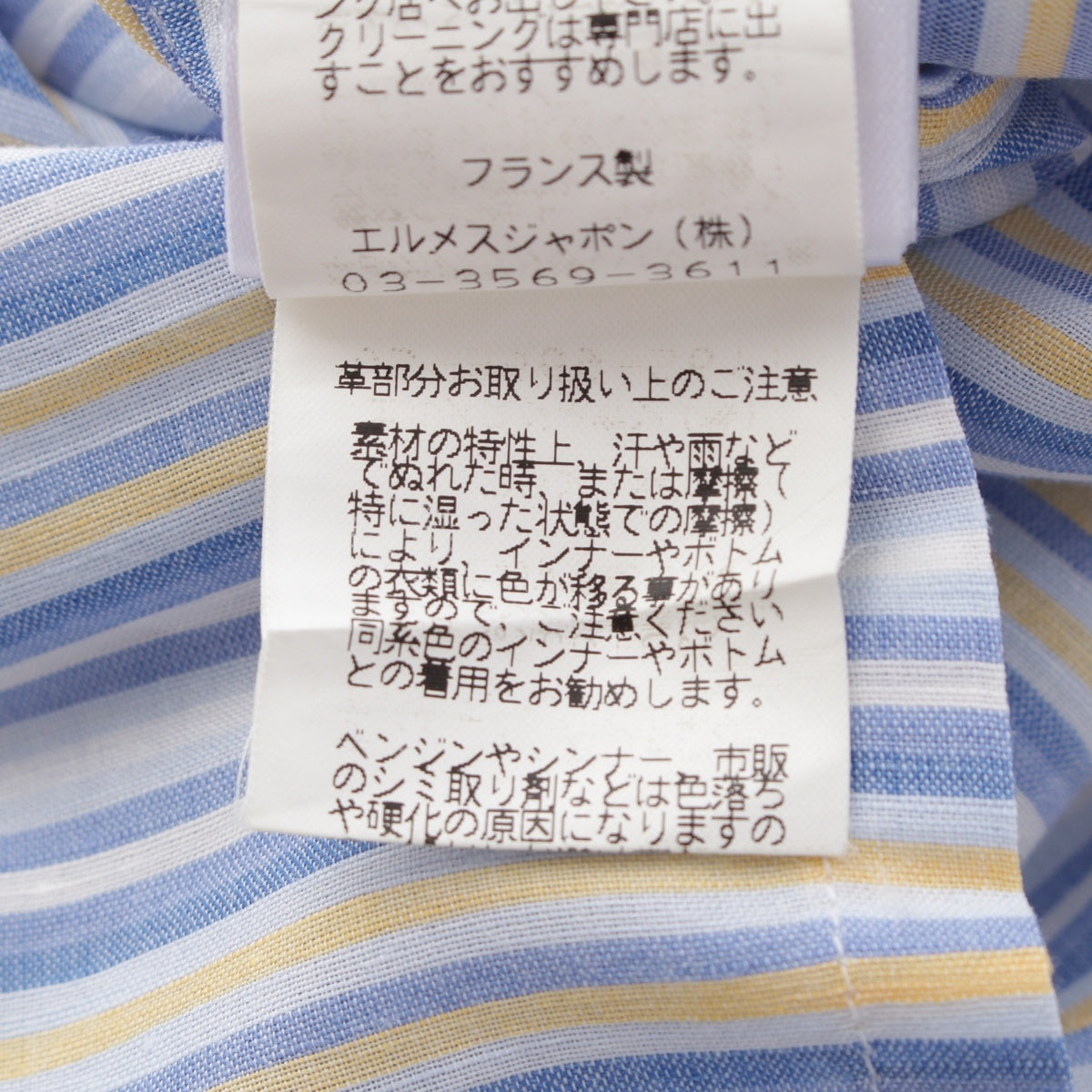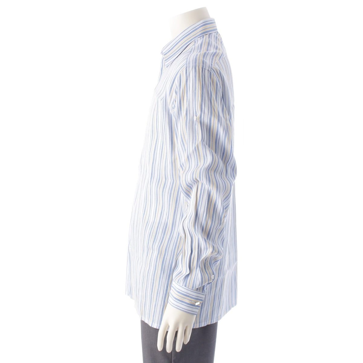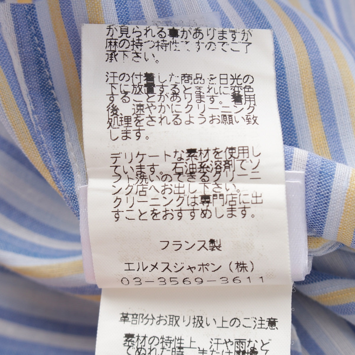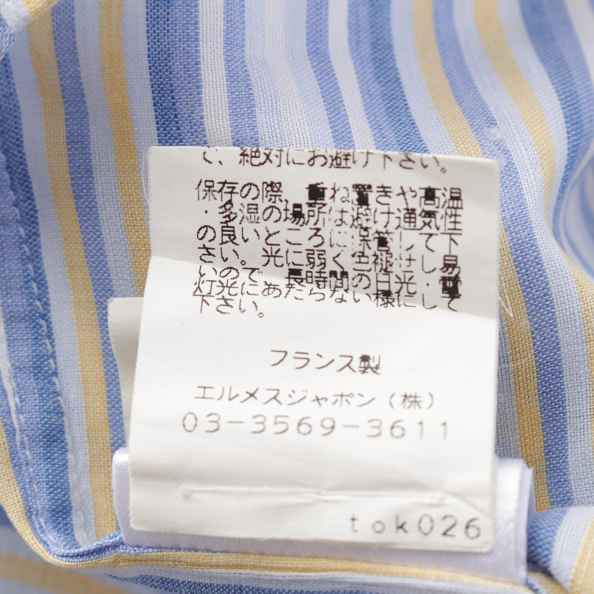 HERMES Cotton linen Serie Button Stripe Long sleeve shirt blue 40 15 3/4