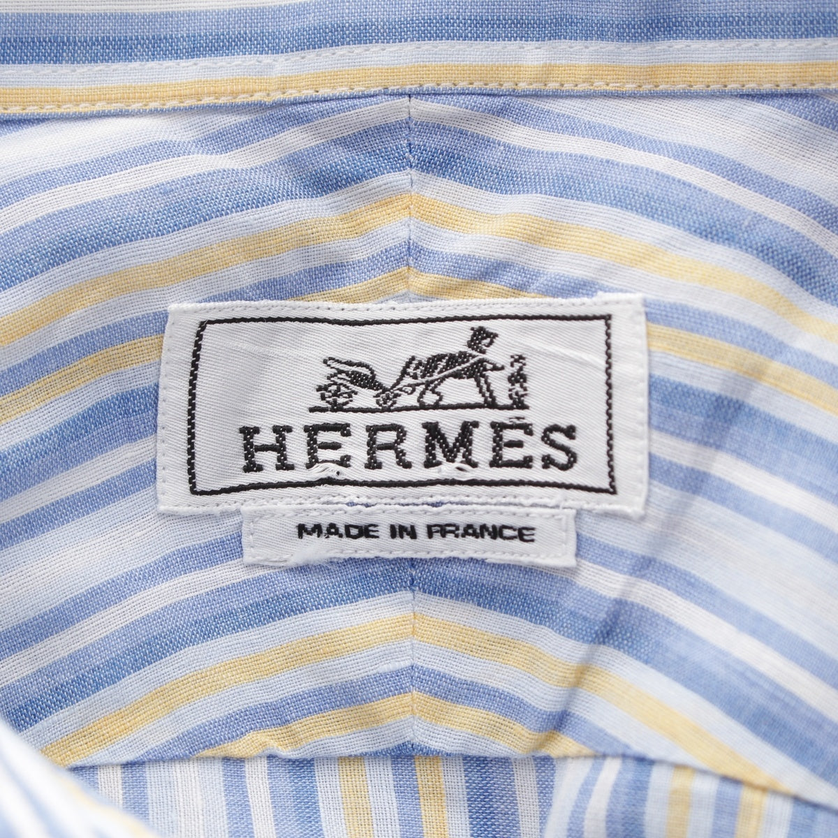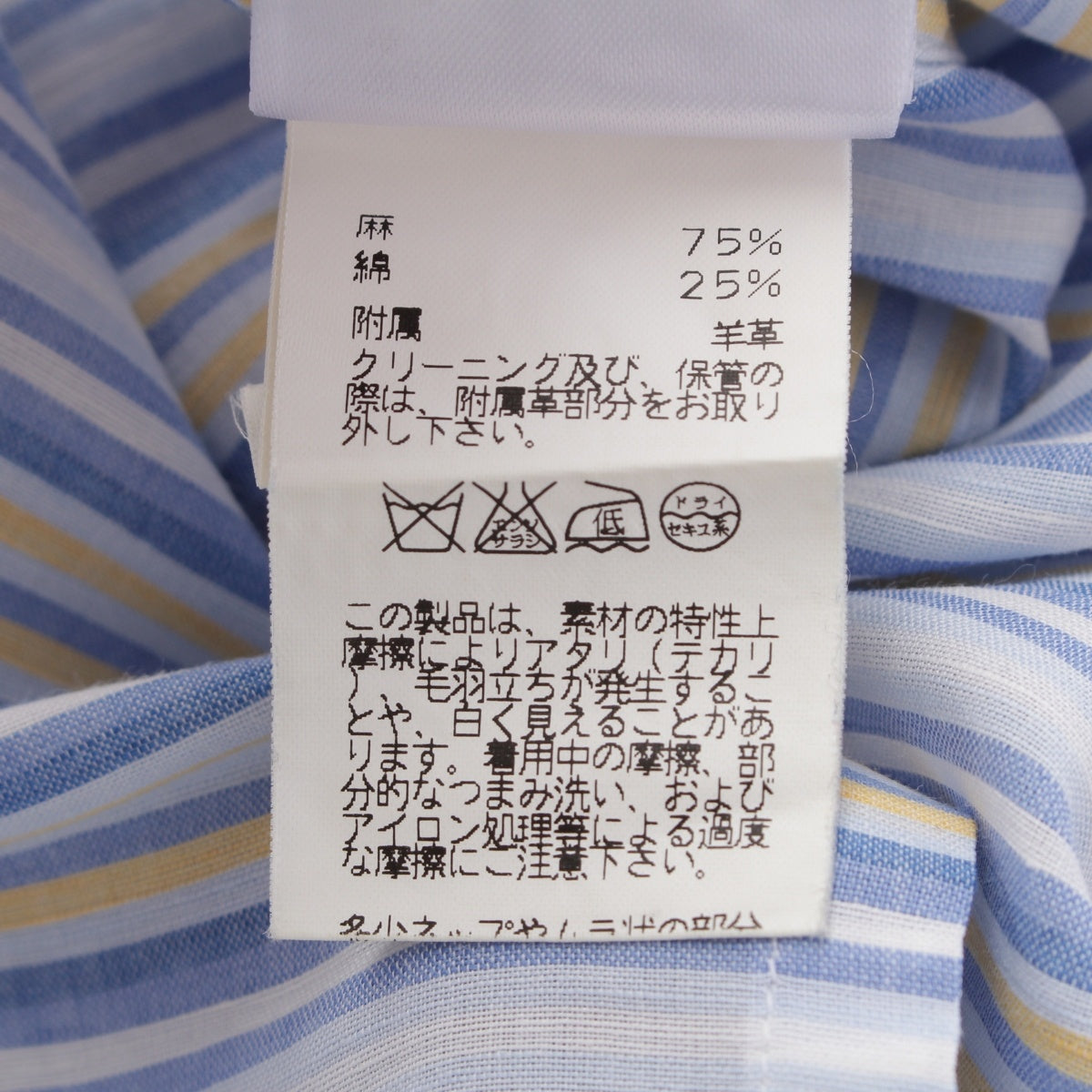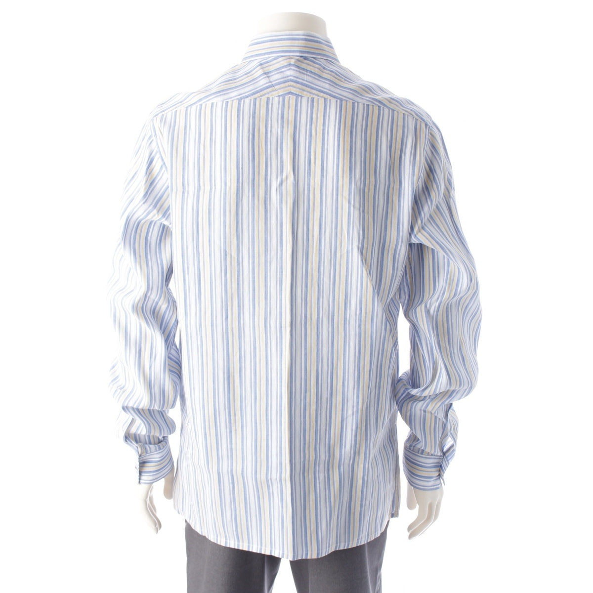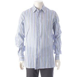 HERMES Cotton linen Serie Button Stripe Long sleeve shirt blue 40 15 3/4