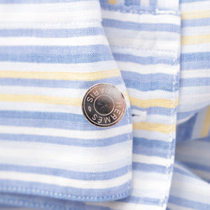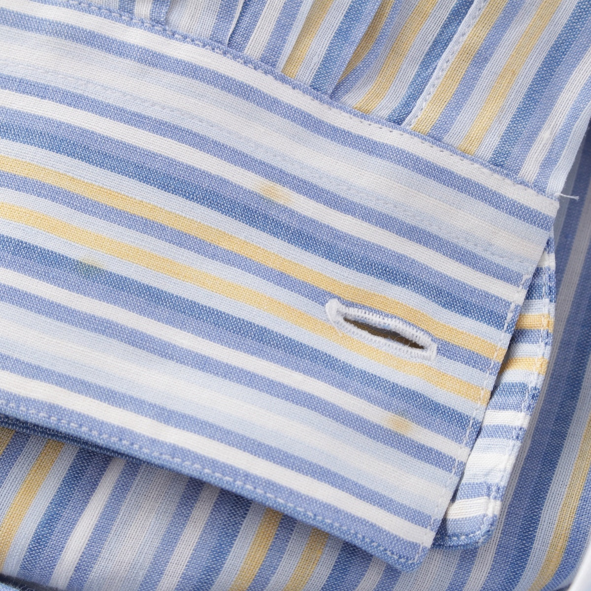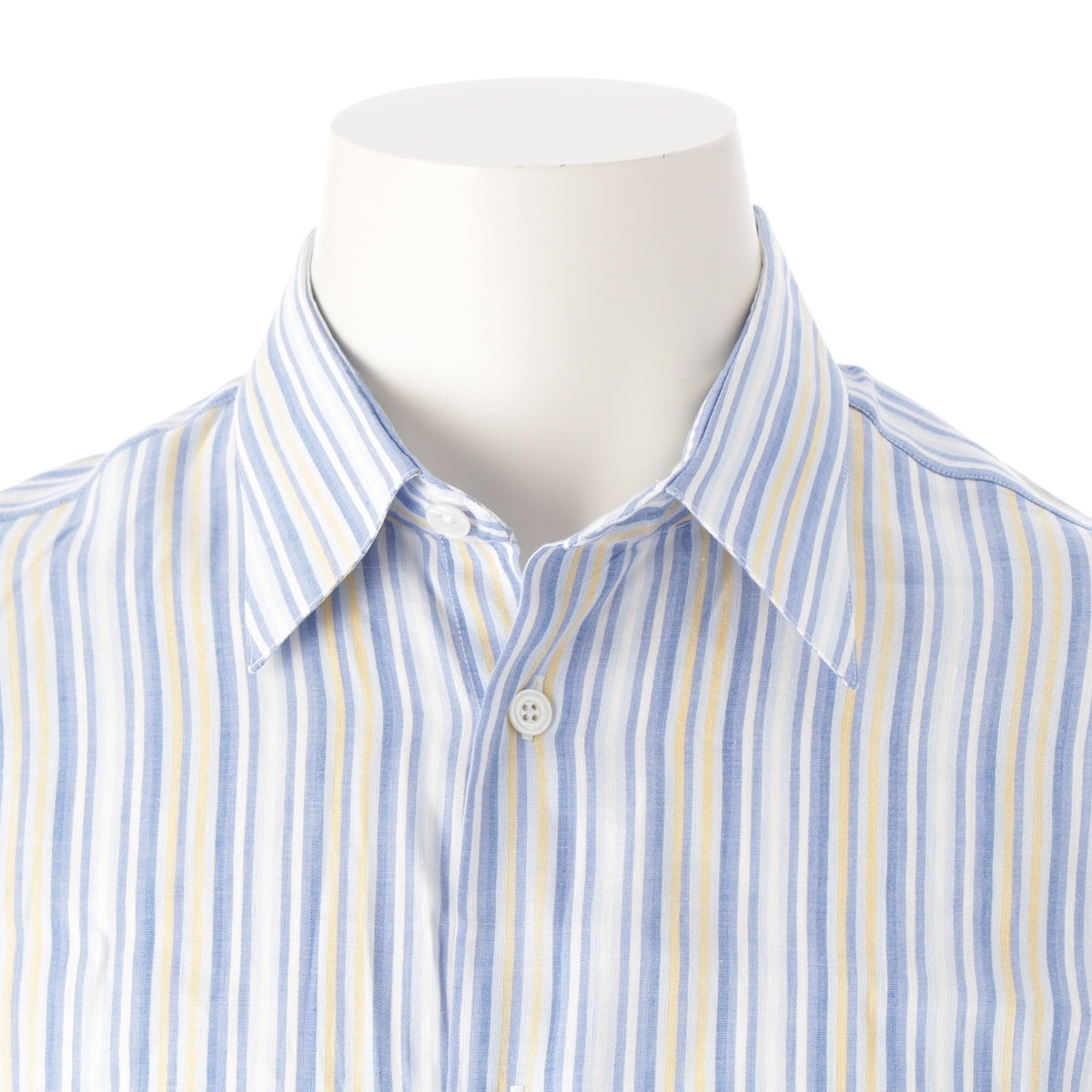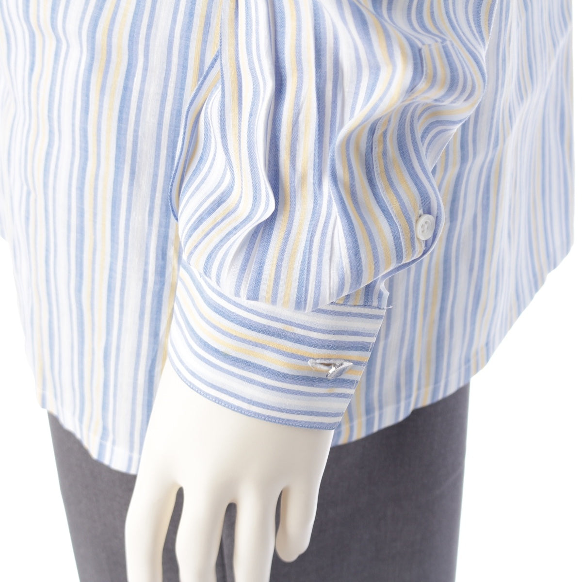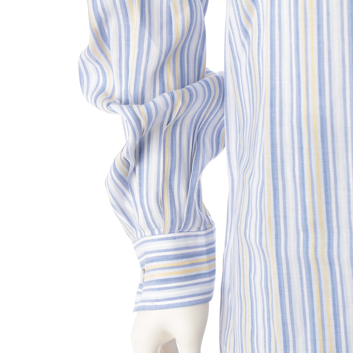 HERMES Cotton linen Serie Button Stripe Long sleeve shirt blue 40 15 3/4