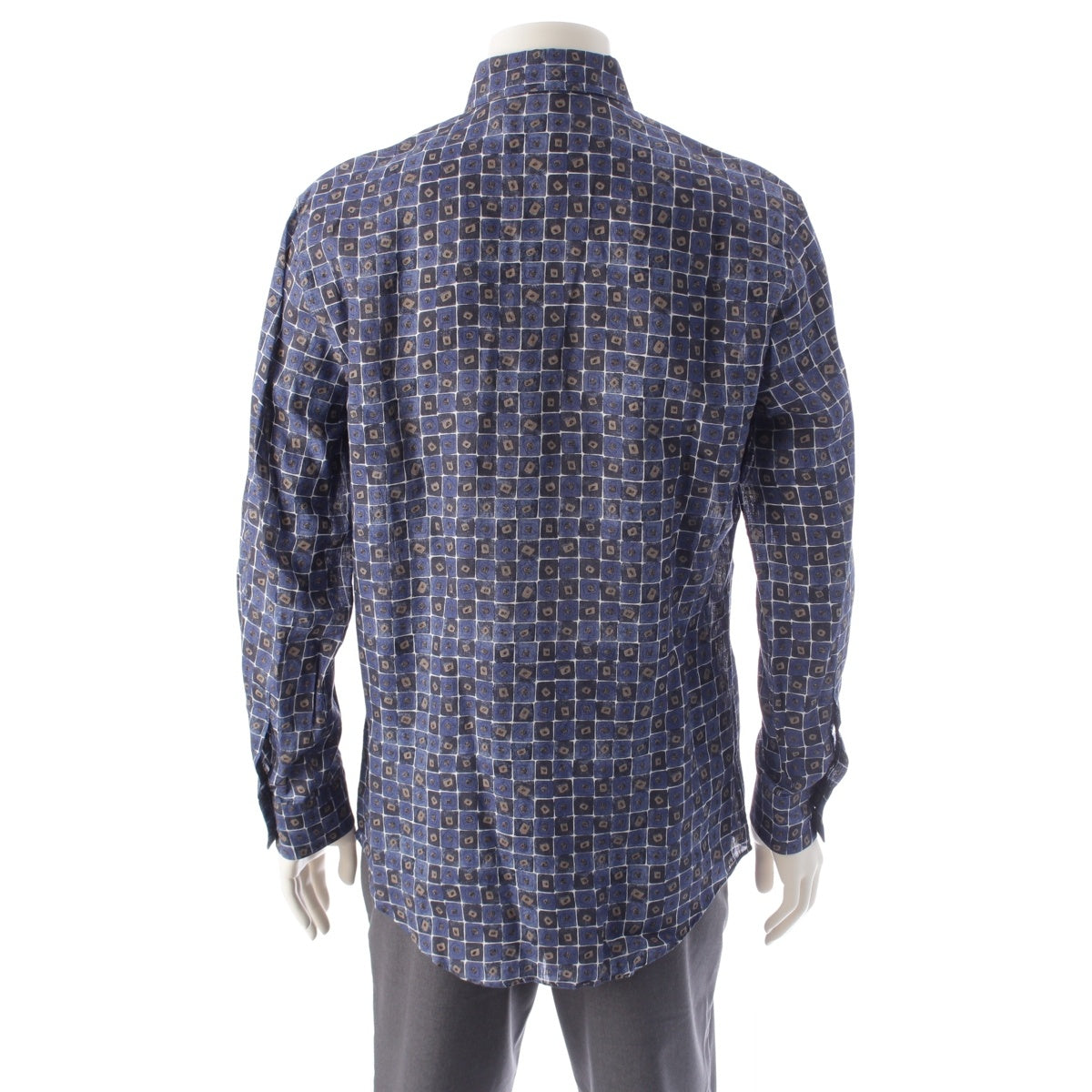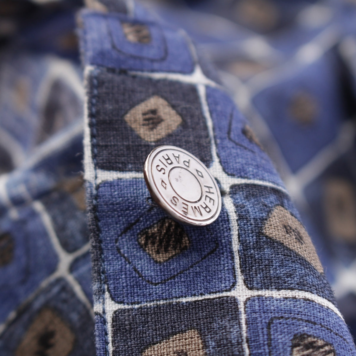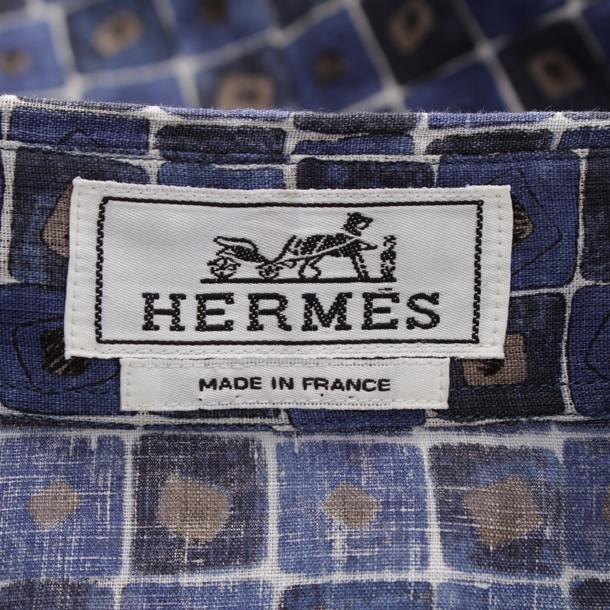 HERMES linen Serie button check all-over pattern Long sleeve shirt blue