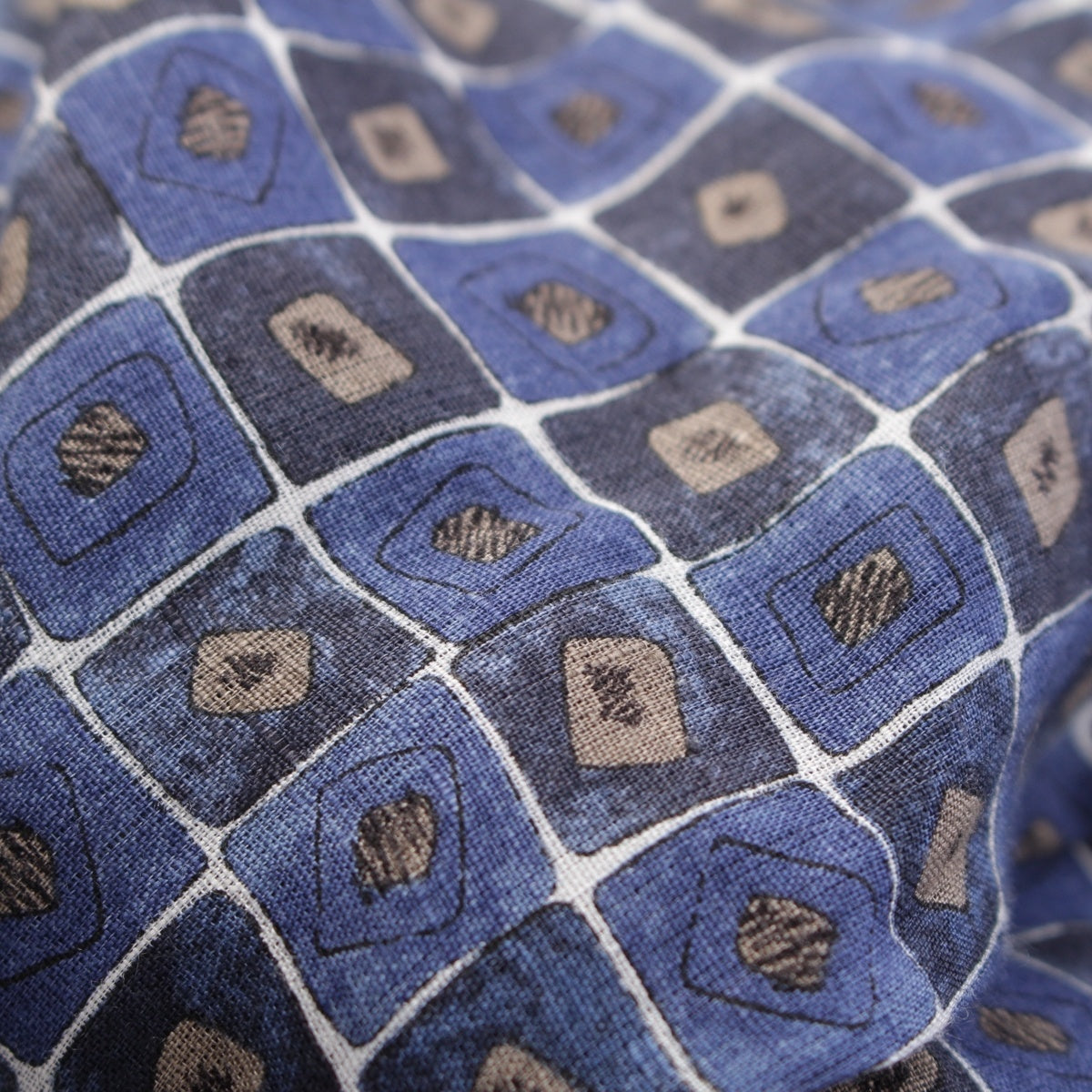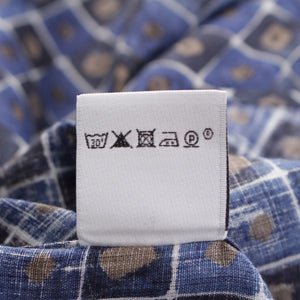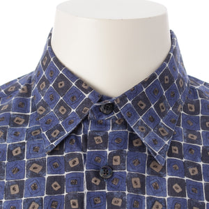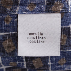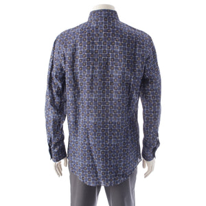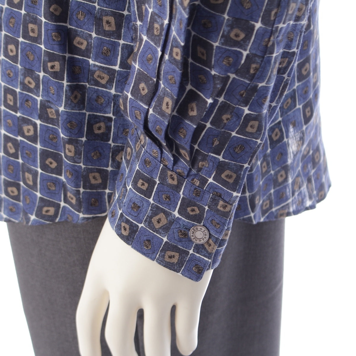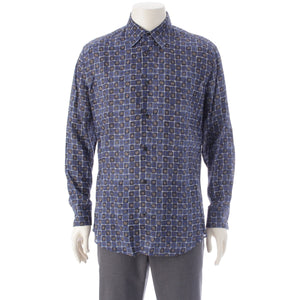 HERMES linen Serie button check all-over pattern Long sleeve shirt blue