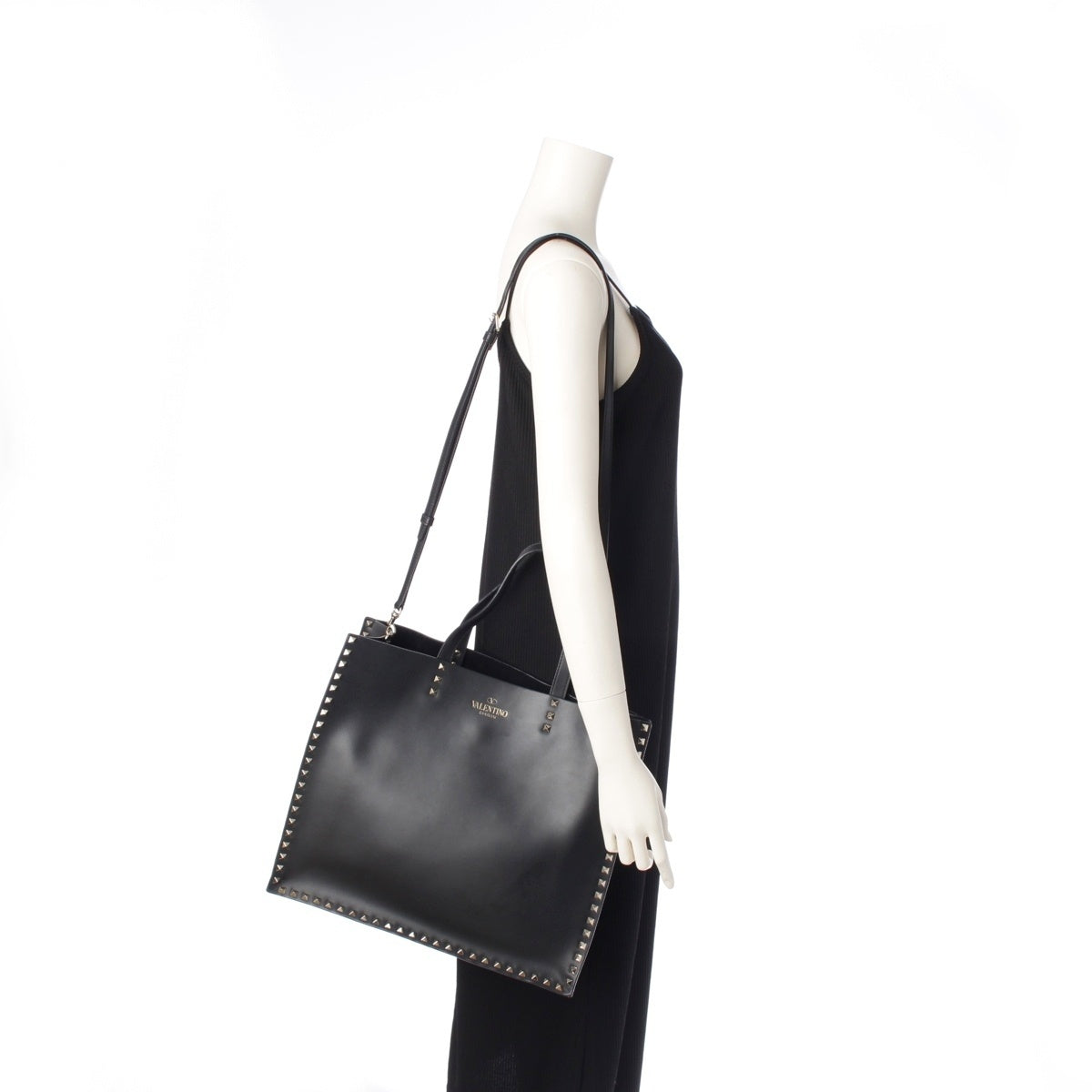 VALENTINO leather Rockstud Logo 2-Way Shoulder Bag Tote Bag black