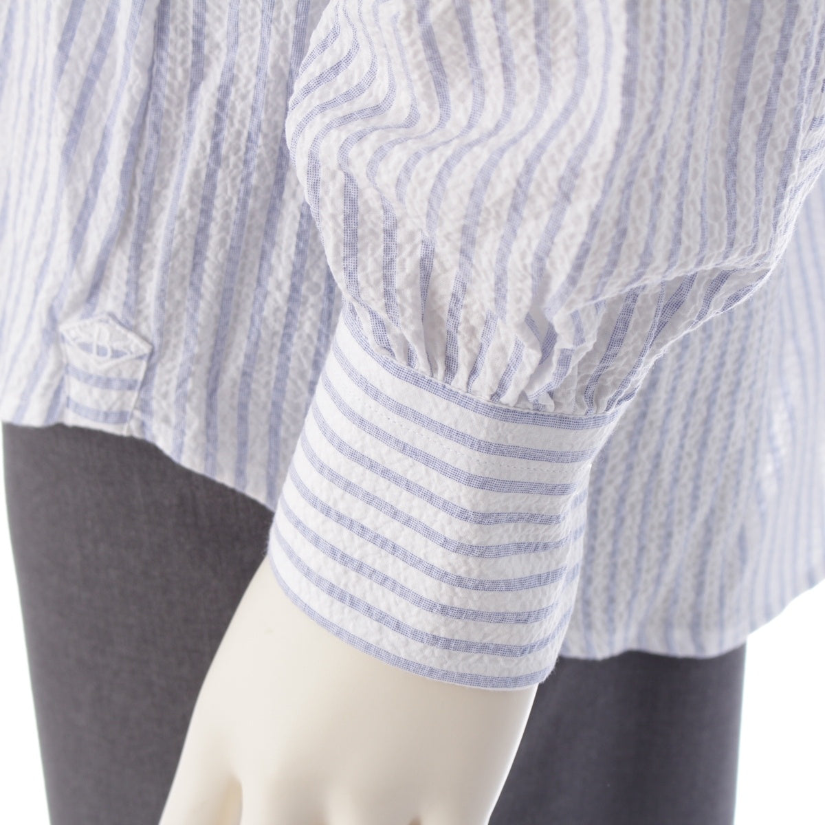 Bourrienne Paris X Brienne Paris Dis SAUVAGE Seersucker Striped Sweater Long sleeve shirt tops SAUSEES25W Blue white 42
