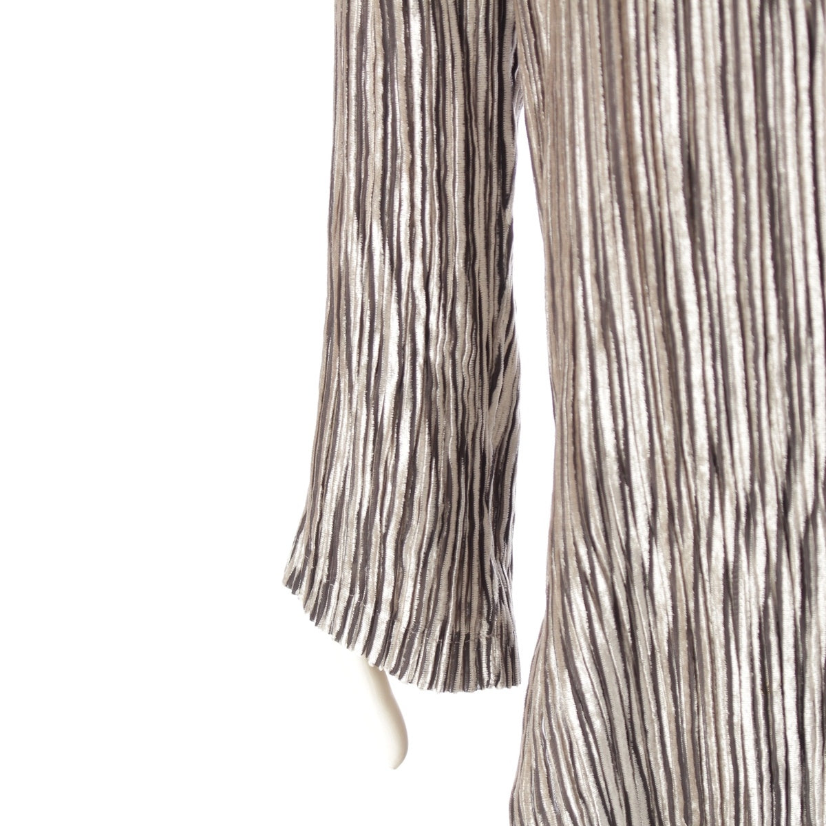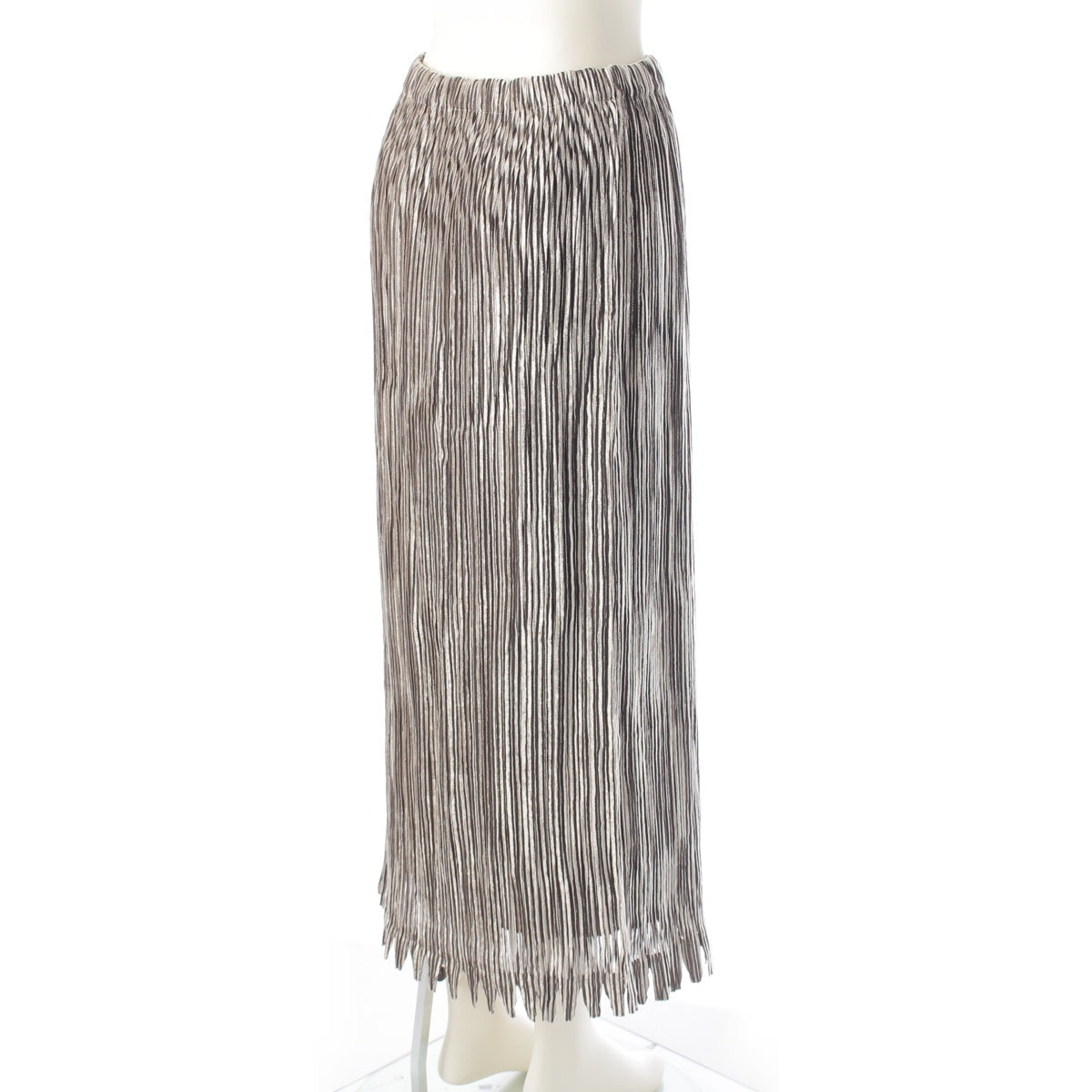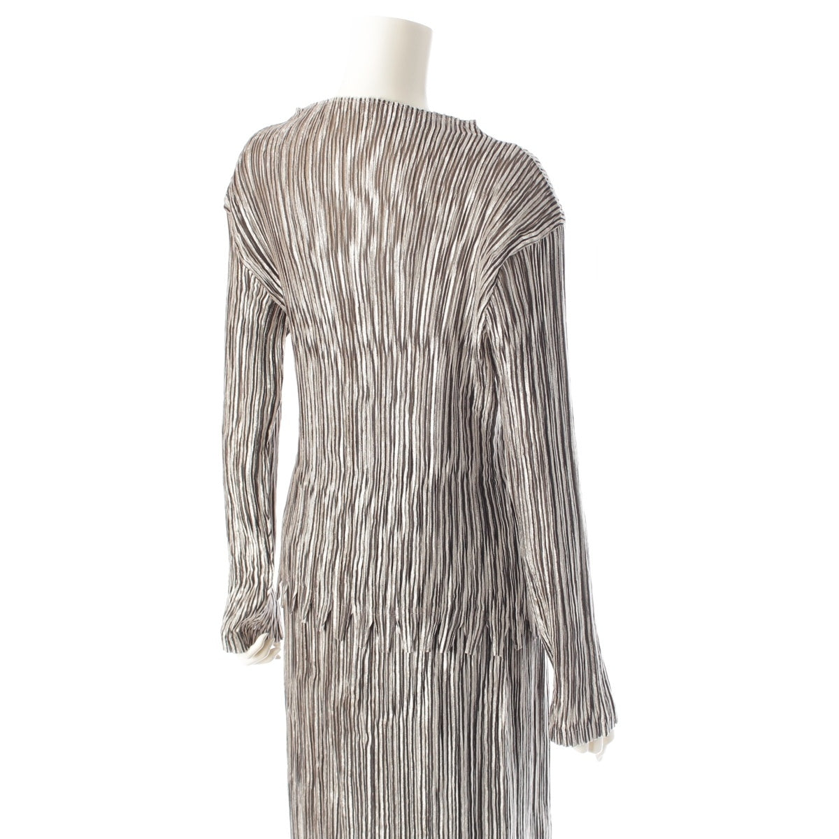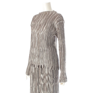 ISSEY MIYAKE Pleated Stripe Collection 3 piece Set: Cardigan, Top, Skirt IM24FA903/IM24J981/IM24FG943 Gray beige 3