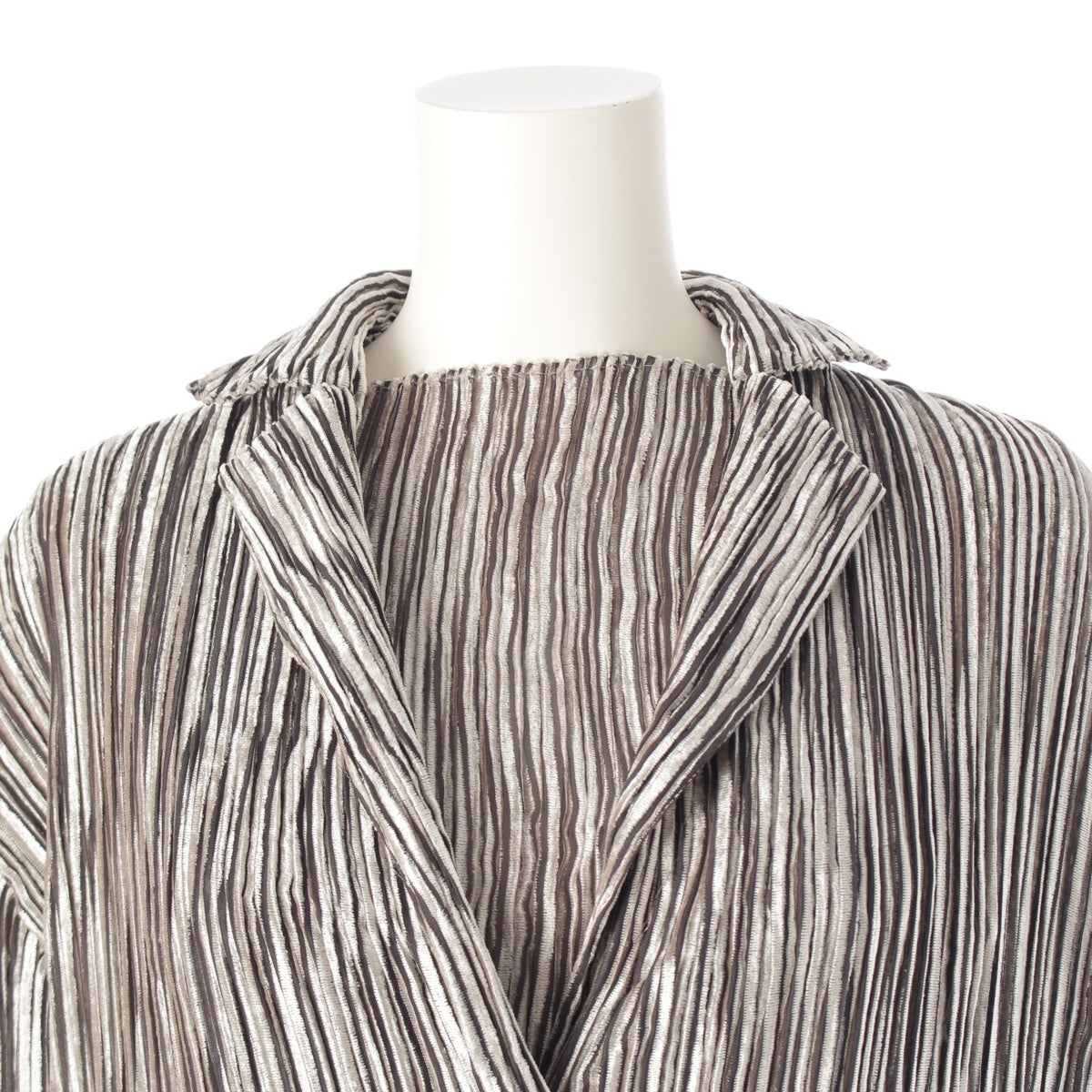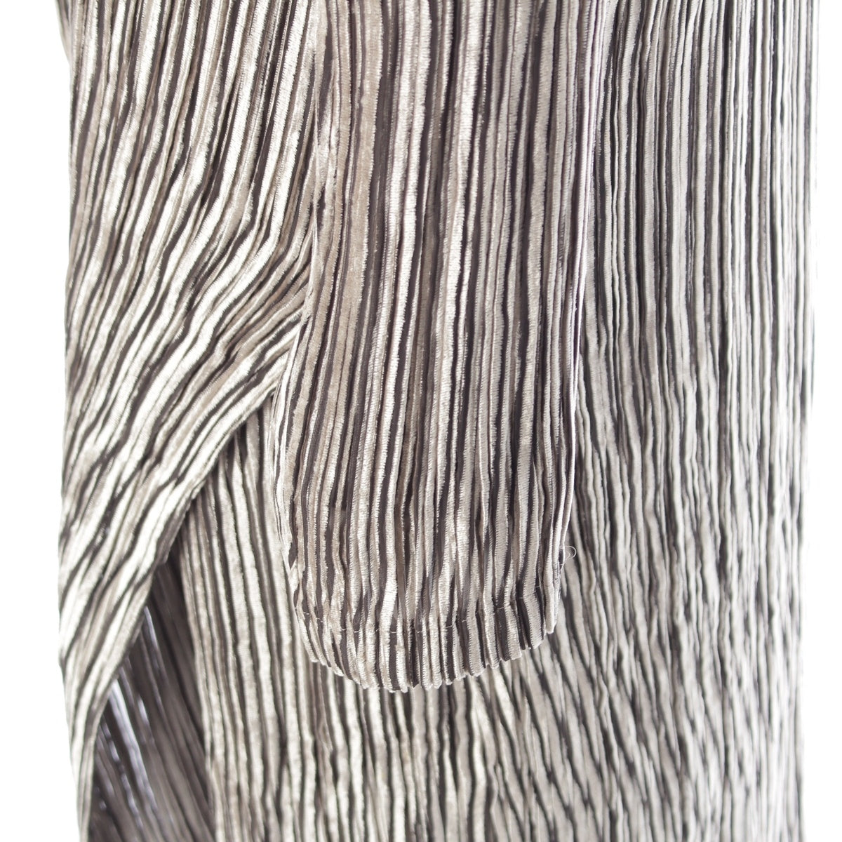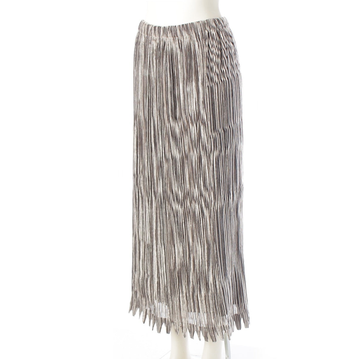 ISSEY MIYAKE Pleated Stripe Collection 3 piece Set: Cardigan, Top, Skirt IM24FA903/IM24J981/IM24FG943 Gray beige 3