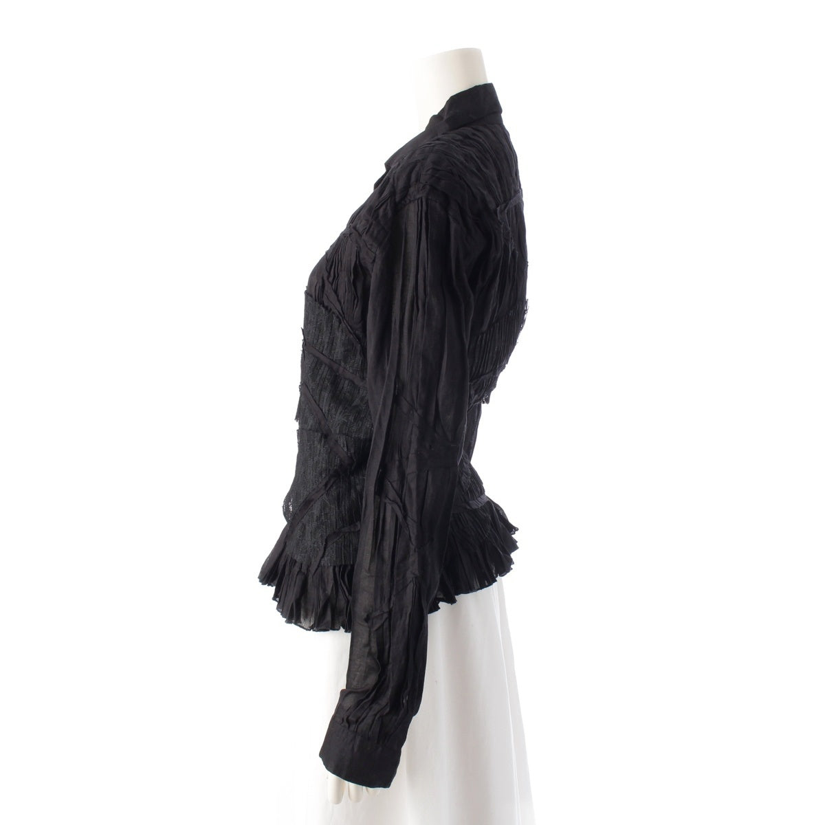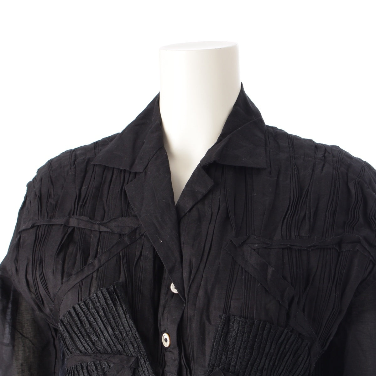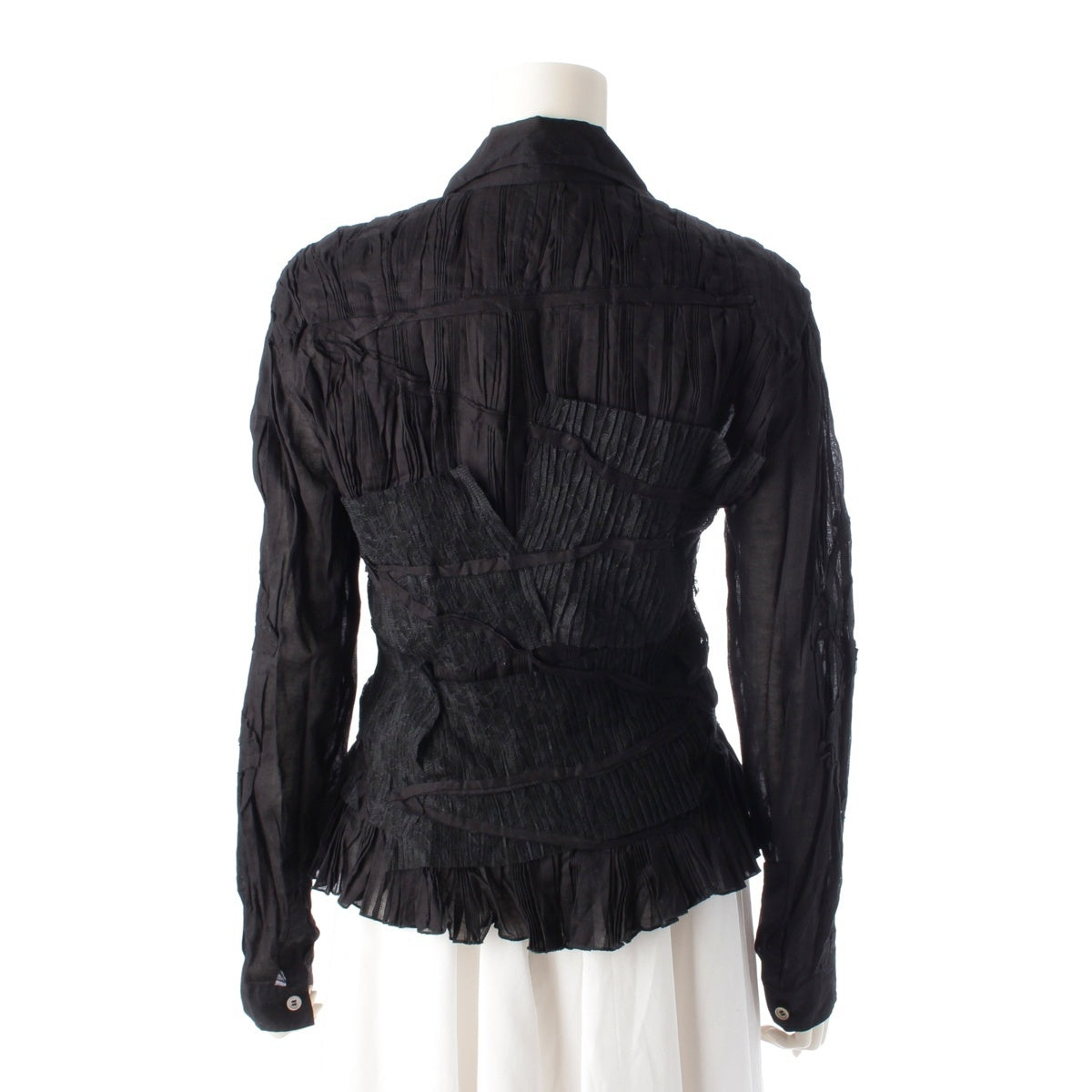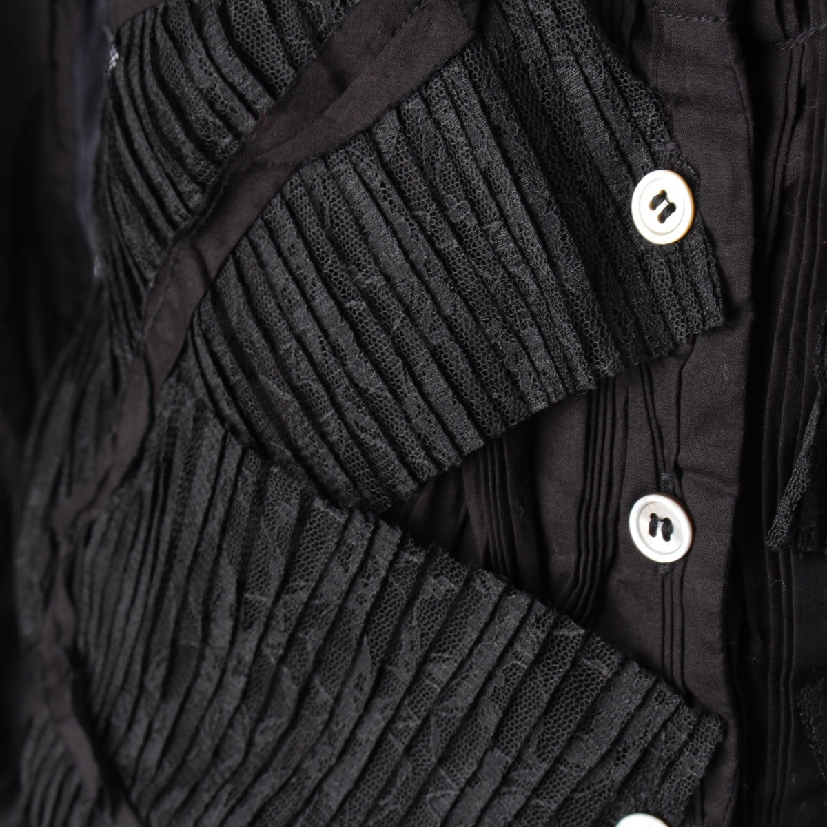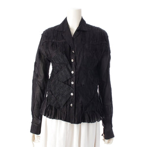 ISSEY MIYAKE Pleated lace switch Long sleeve shirt tops IM31FJ018 black 3
