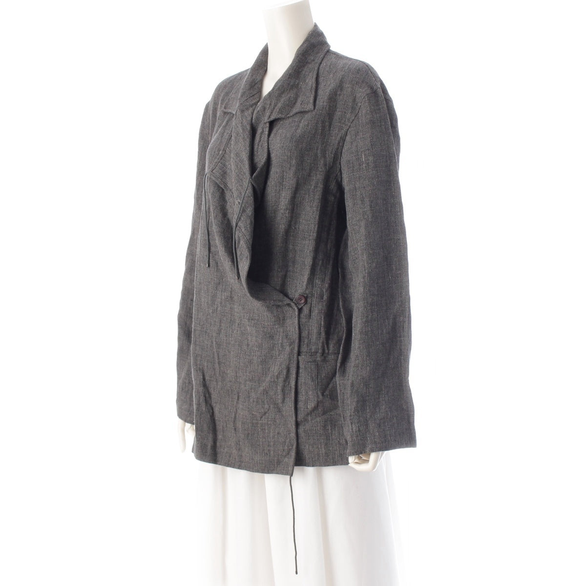 ISSEY MIYAKE linen Samue Drawcord Modified Double-Breasted Jacket outer IM91-FD037 gray L
