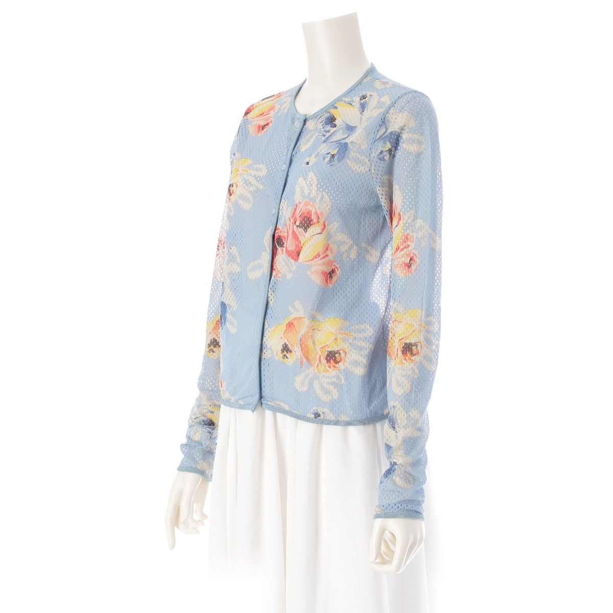 Dior Galliano-era Sky Floral Print Mesh cardigan tops Pale blue, light blue, multicolor