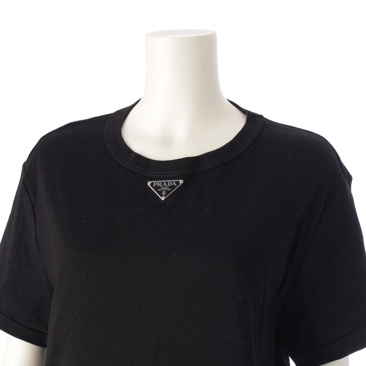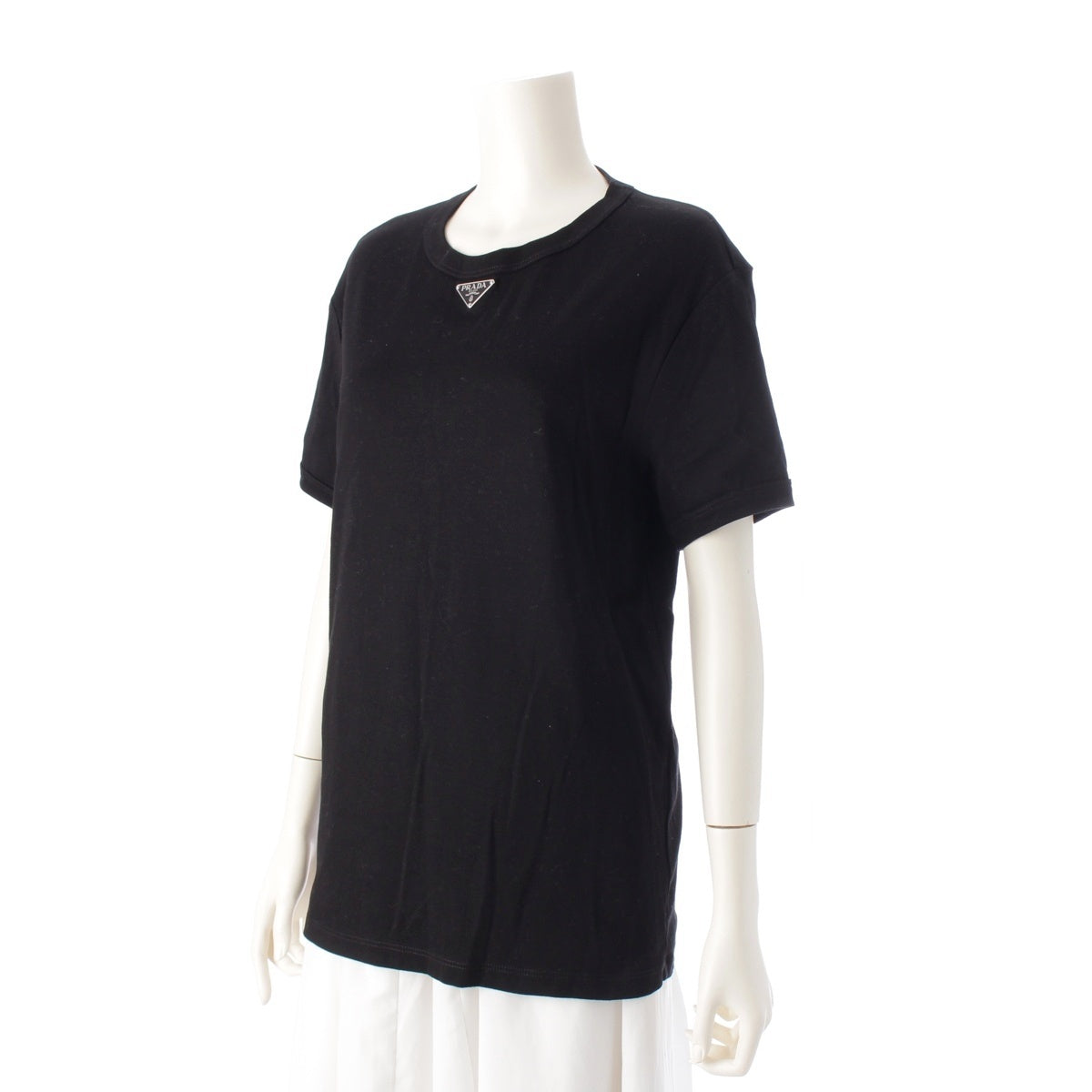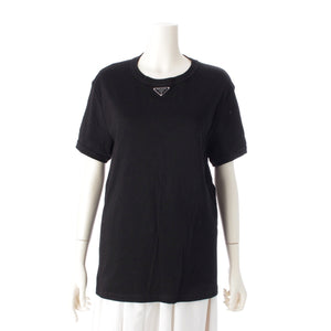 PRADA cotton Triangle logo Short sleeve T-shirt tops UJN824 black M