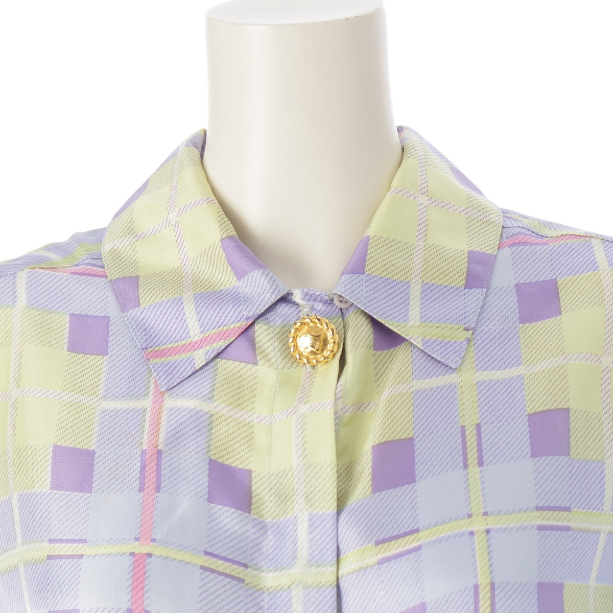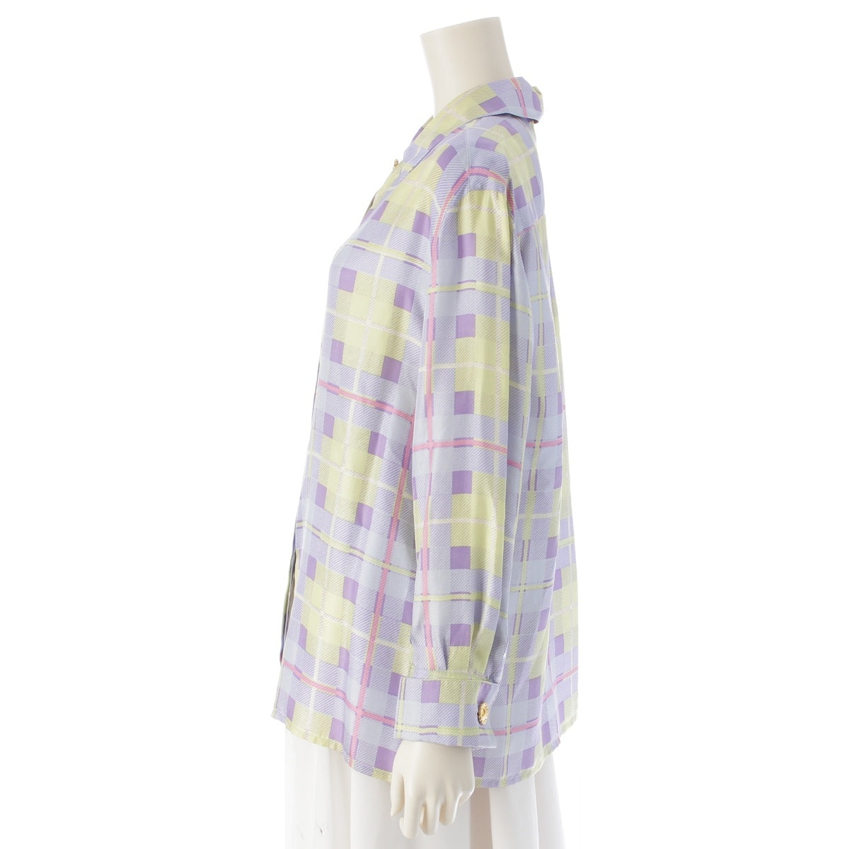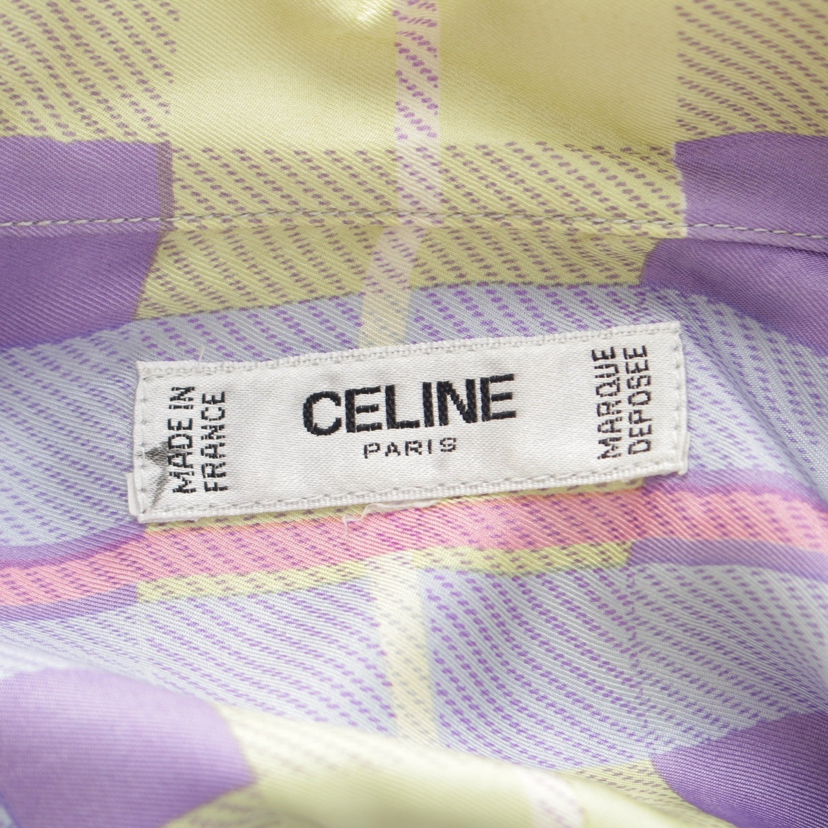 CELINE Triomphe Logo Button Check Long Sleeve blouse shirt multicolor