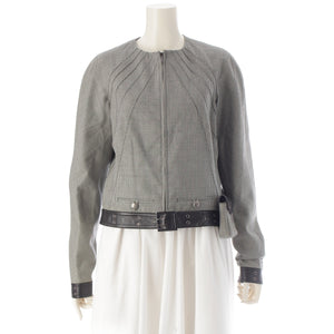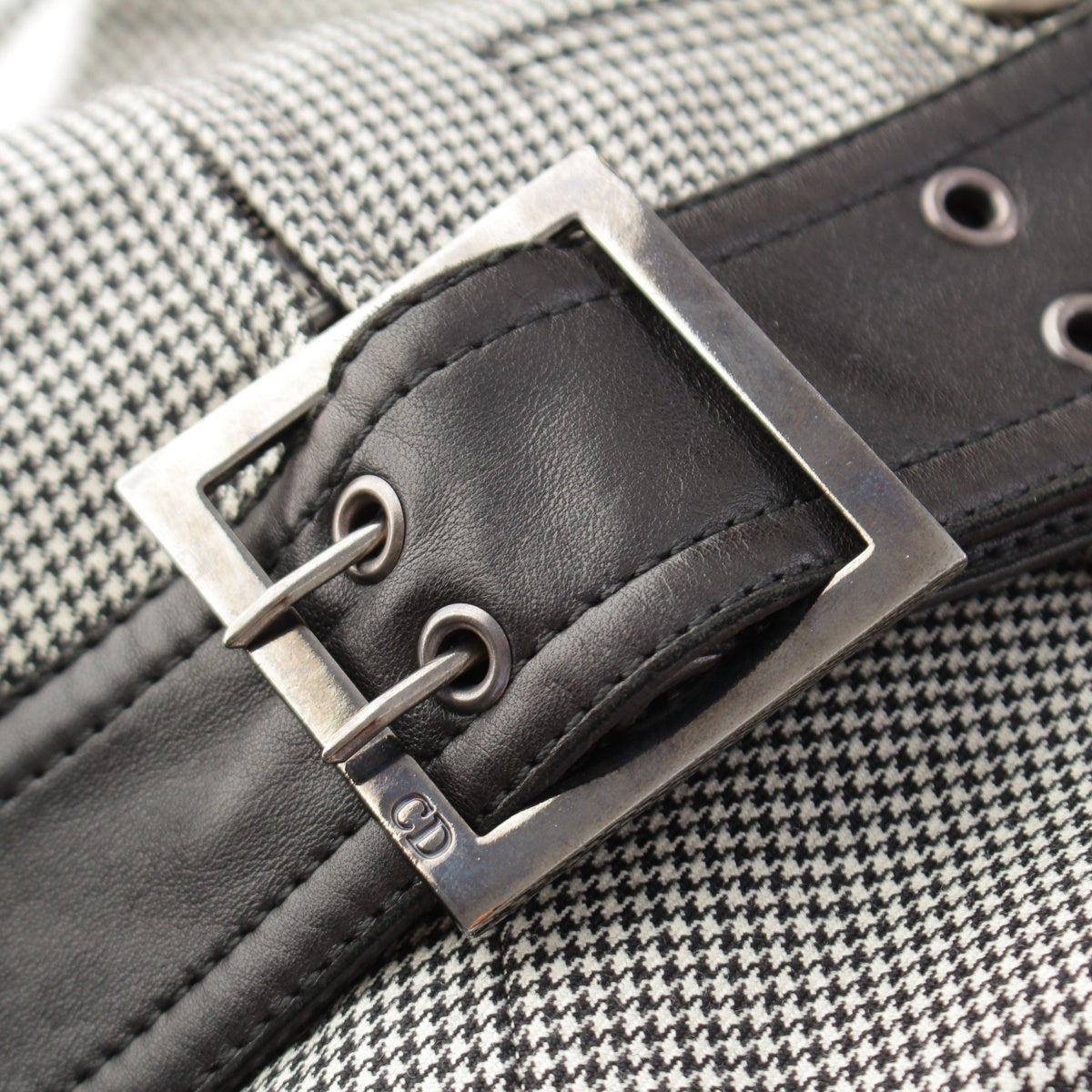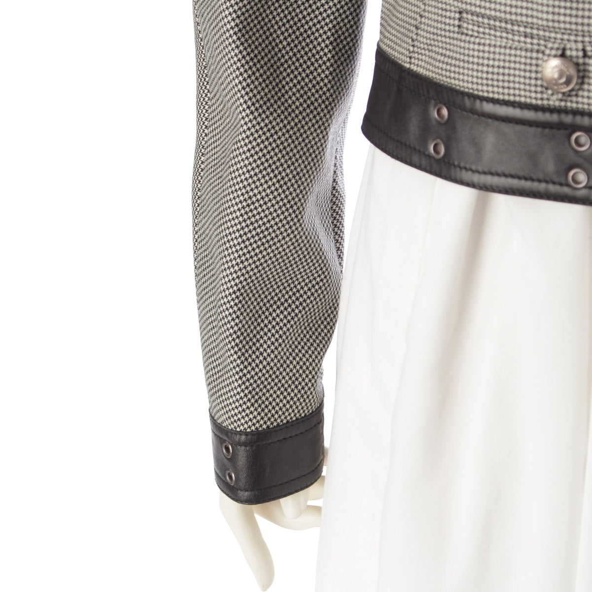 Dior Lamb leather x wool Galliano period no-collar houndstooth tailored jacket 2A12022180 Black series F40