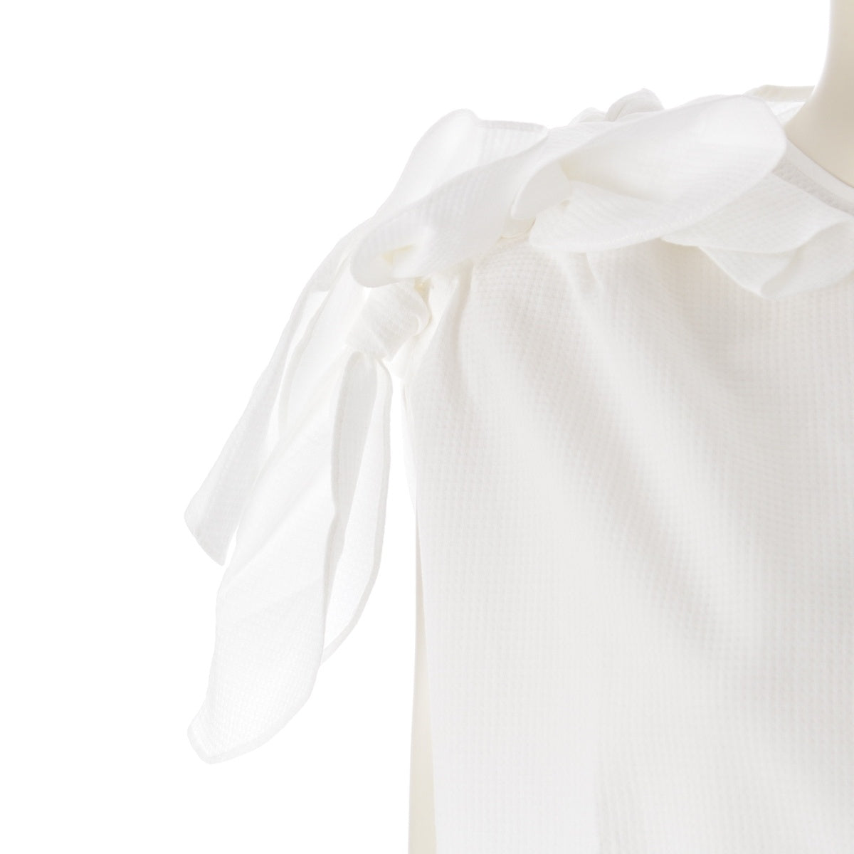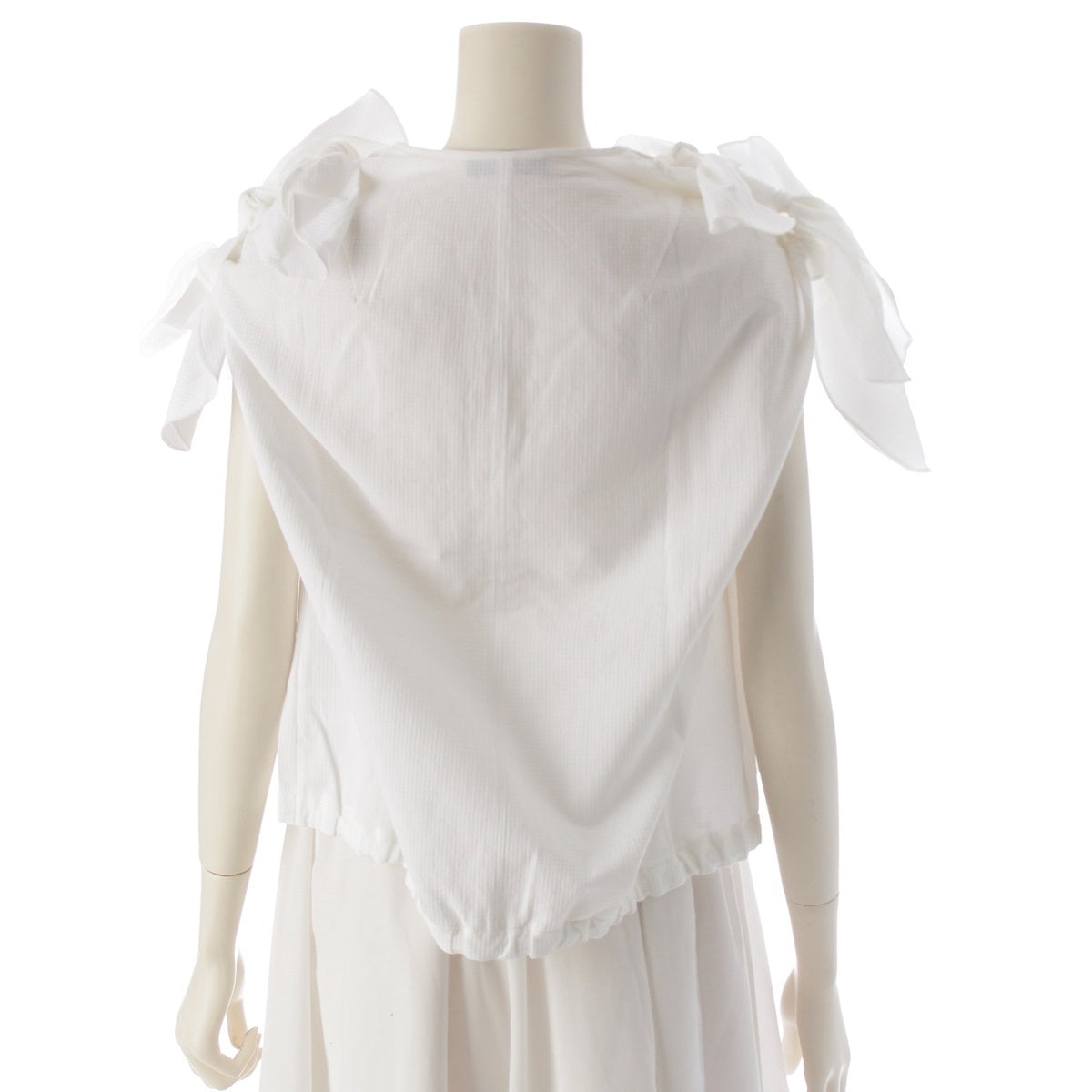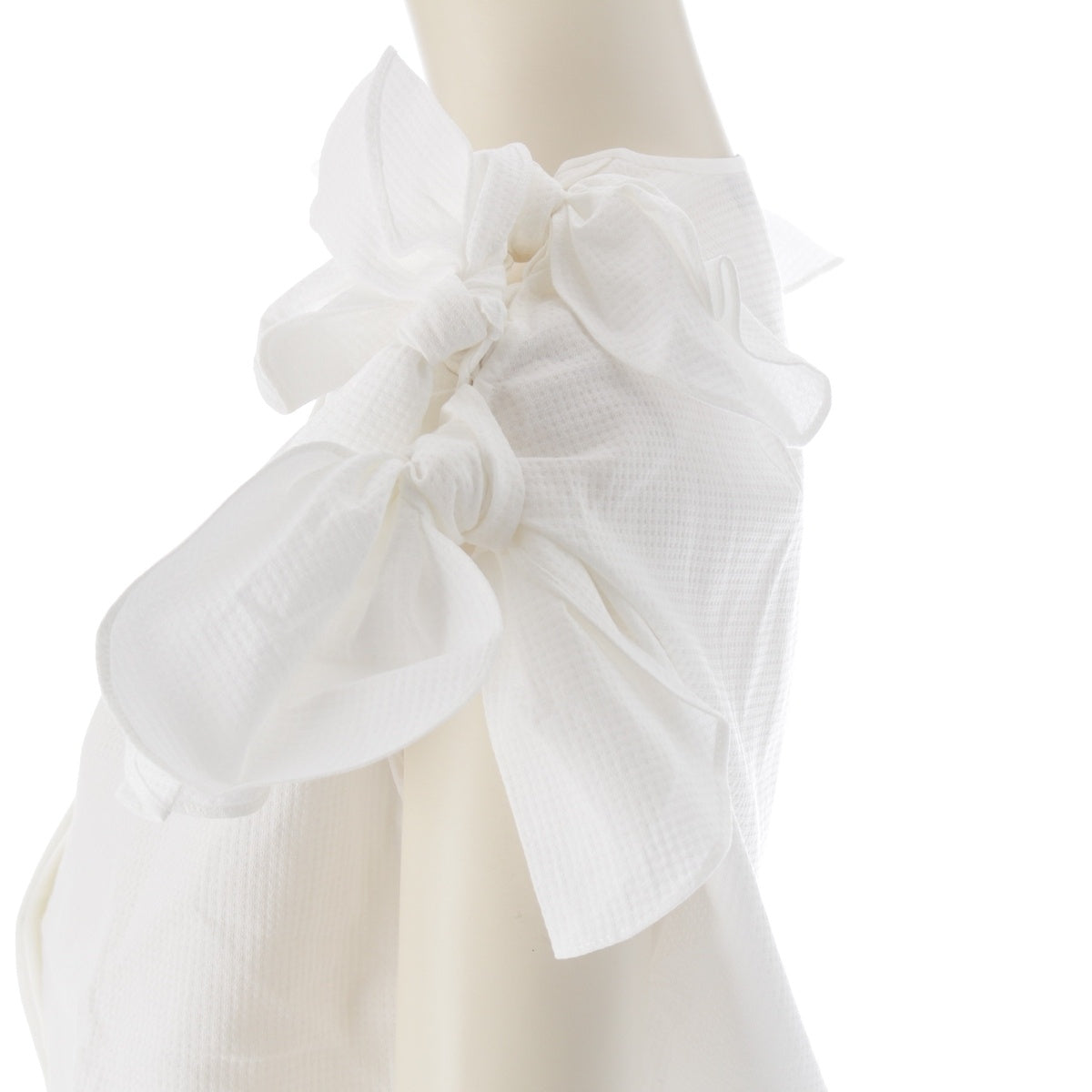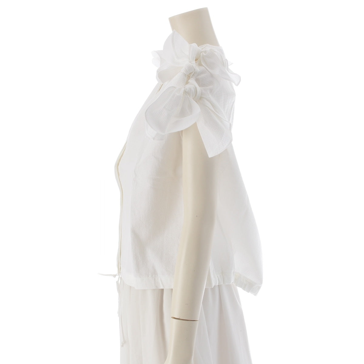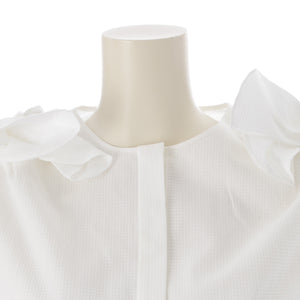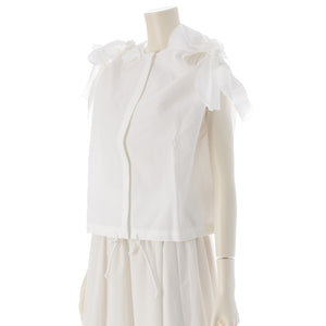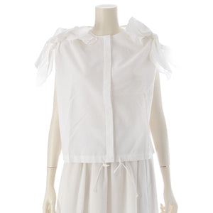 Drawer cotton Shoulder ribbon, no collar, hidden placket blouse tops 6521-299-1198 white