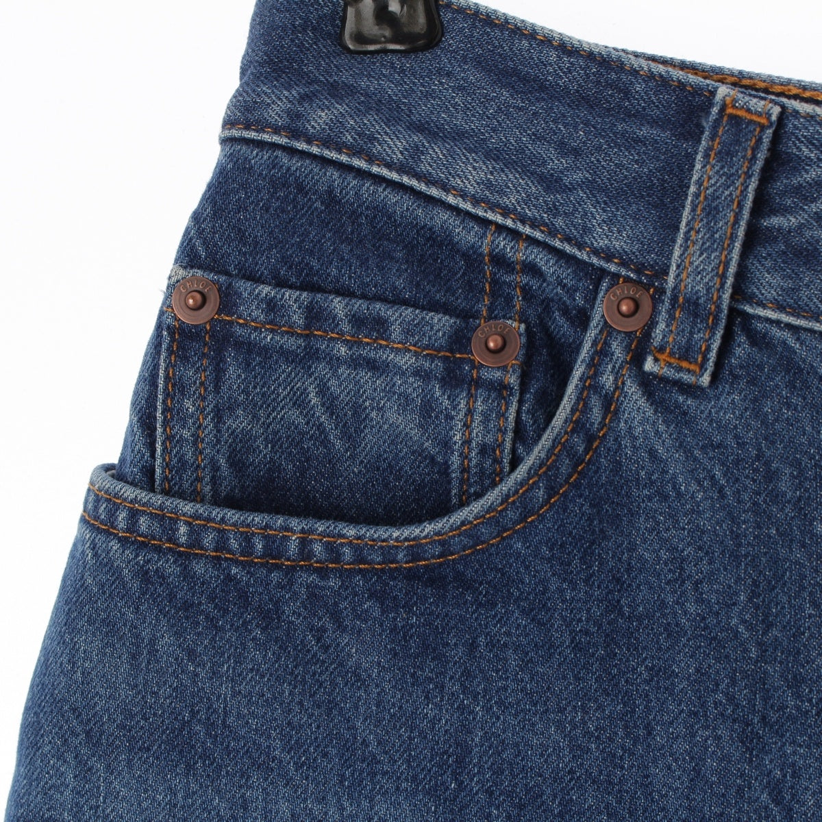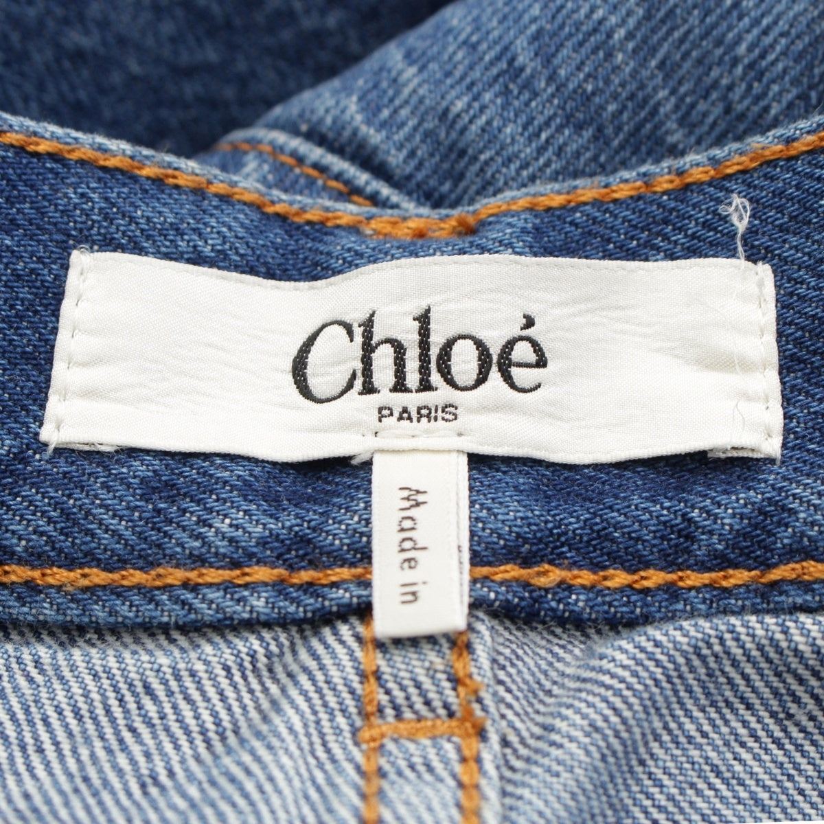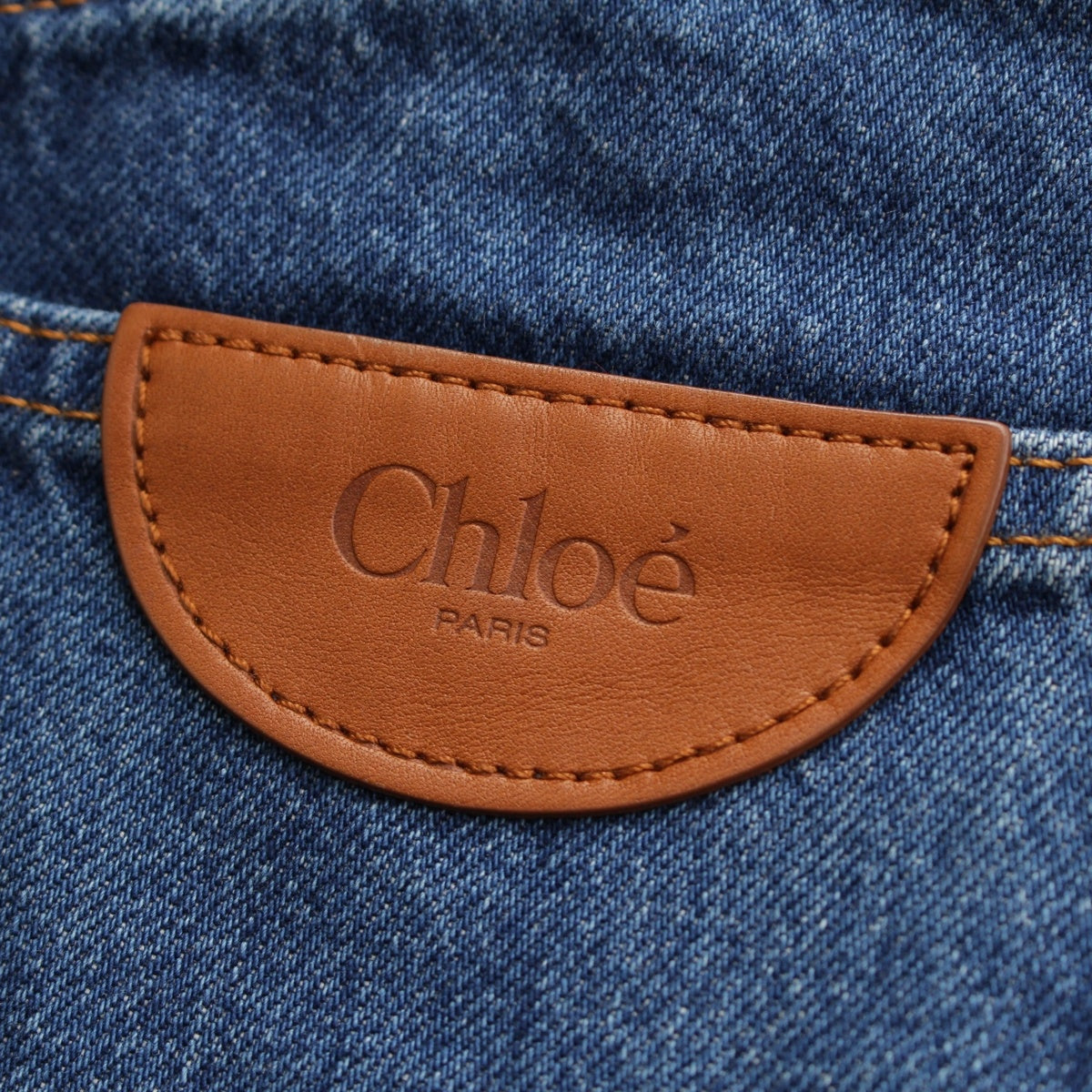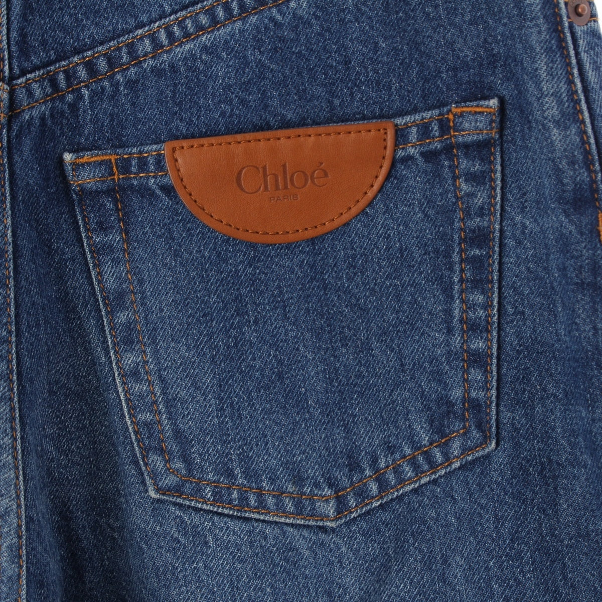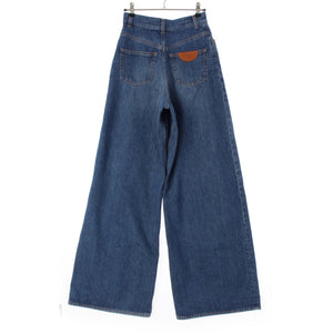Chloe Logo leather patch wide leg jeans Denim pants night blue 24