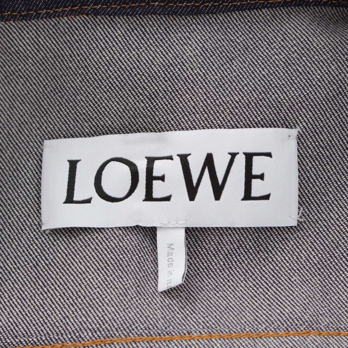 LOEWE Denim Wool Calfskin Work Anagram Leather Patch tailored jacket Light outerwear H526Y50X07 Indigo navy 44