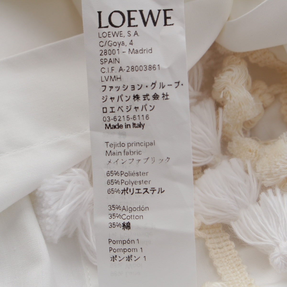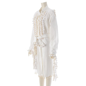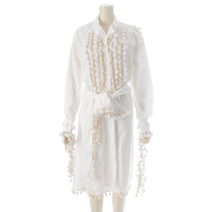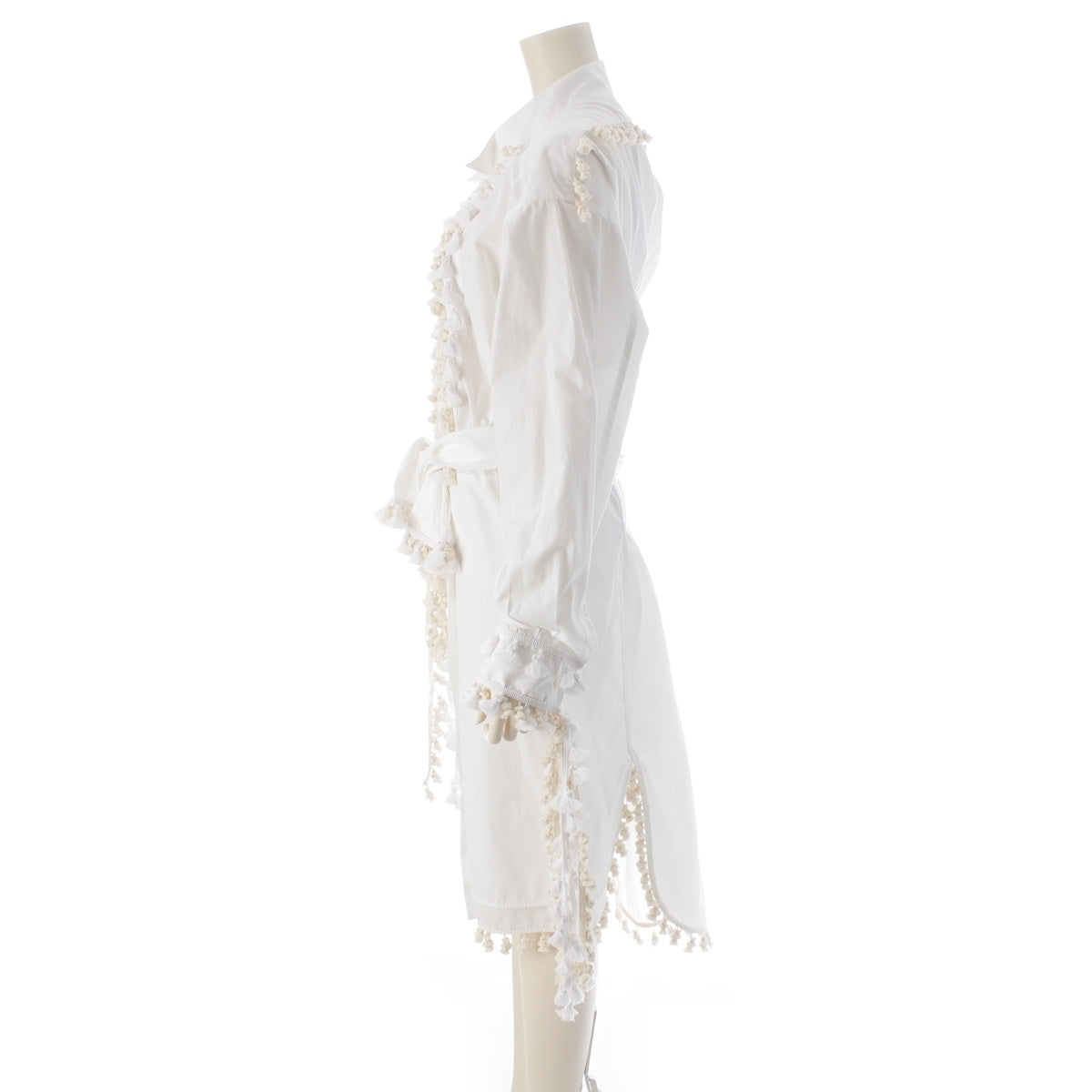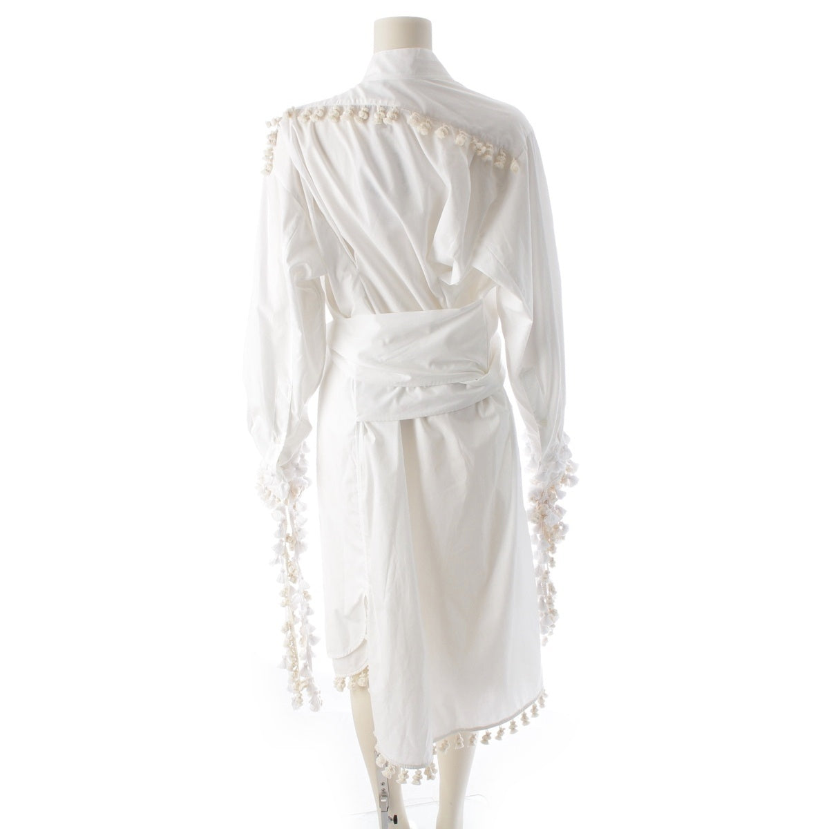 LOEWE Tassel pom-pom waist ribbon long shirt one piece dress white 36