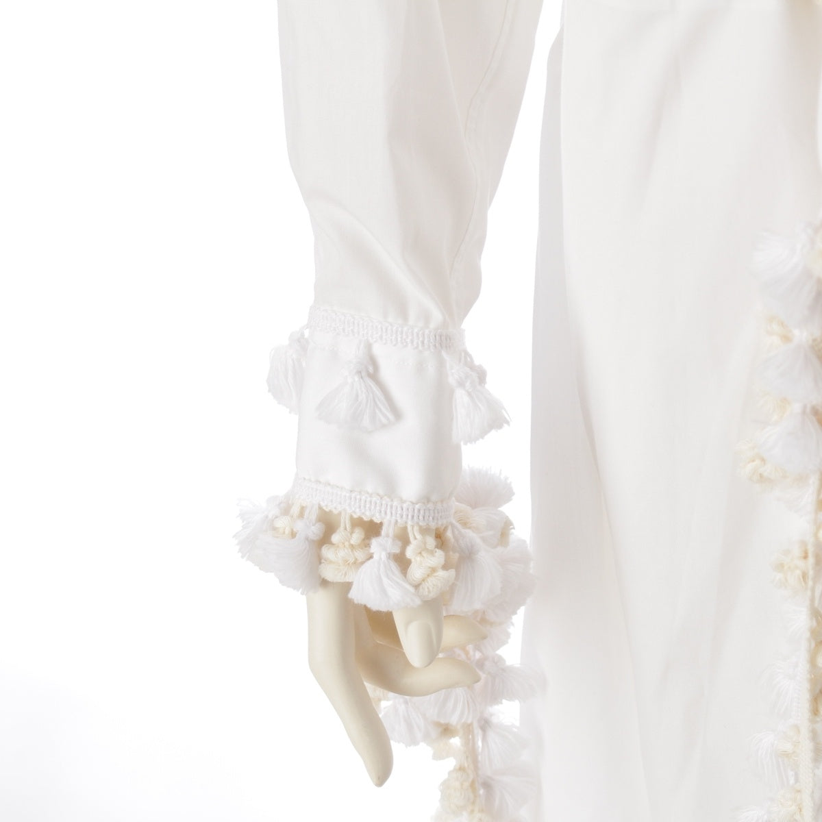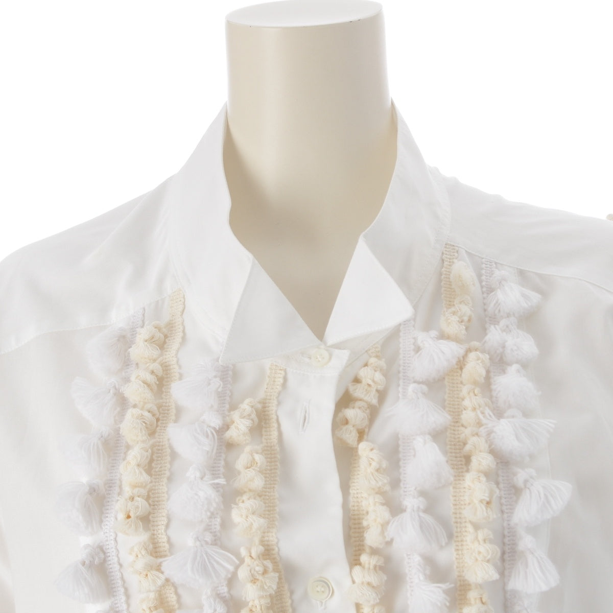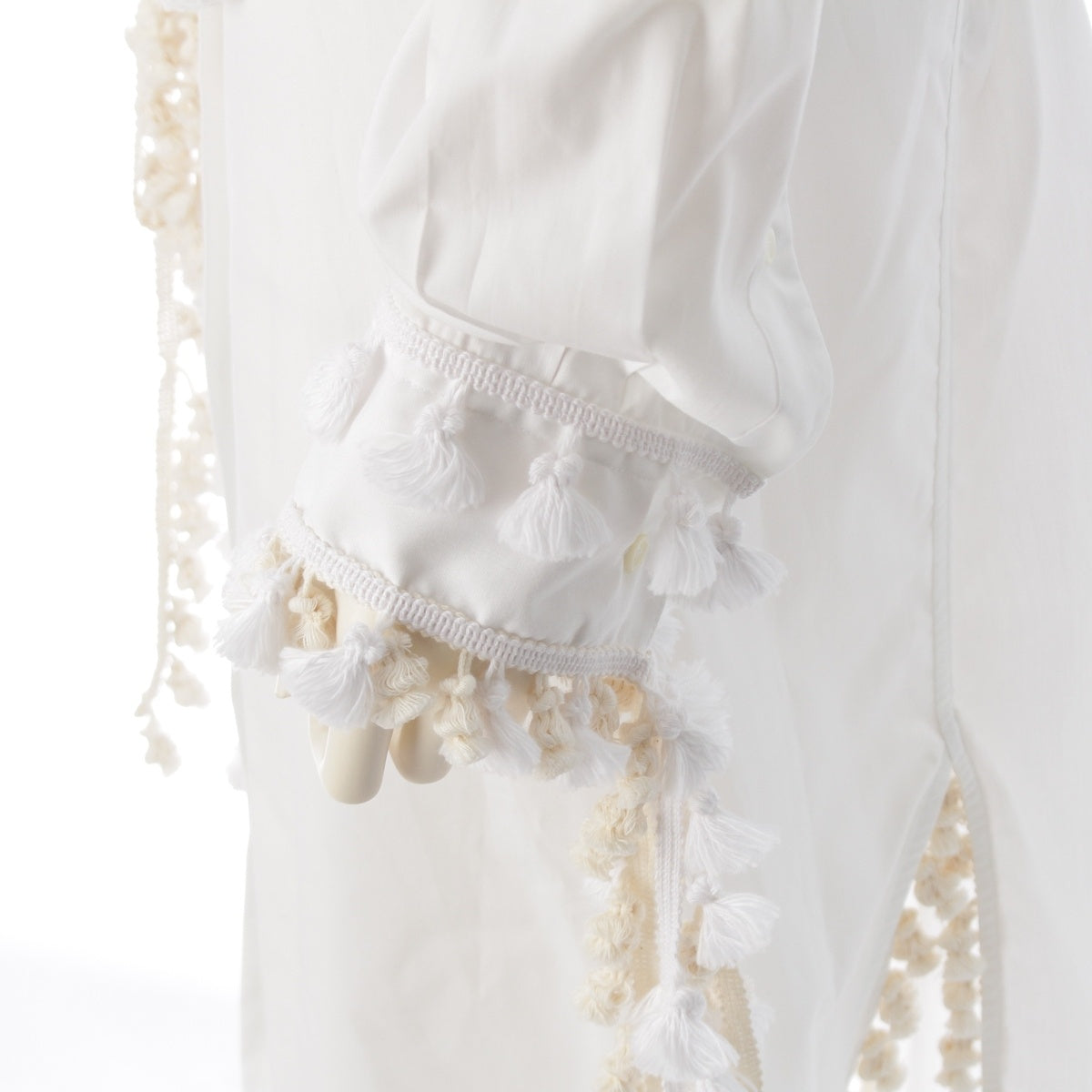 LOEWE Tassel pom-pom waist ribbon long shirt one piece dress white 36